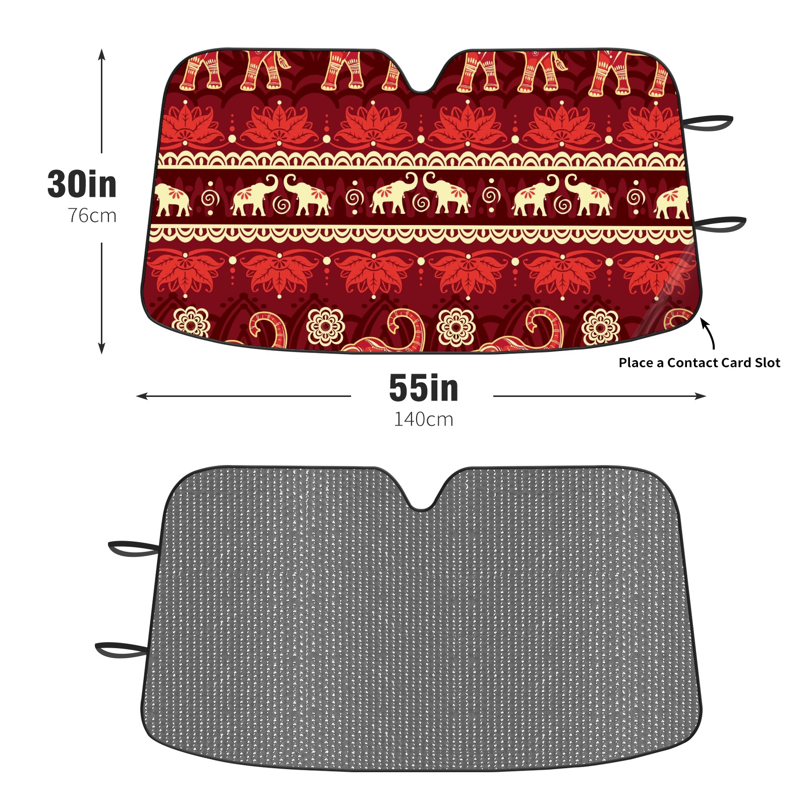 Diameter /Size 63"L x 33.5"W Made from excellent materials which makes it sturdy and protects the car from the sun. Easy to use and pack. Makes the interior of the car cooler.You can easily stash the sunshade in the storage bag or store long term.It open and closes easy. Also the leather storage bag is durable and easy to put the umbrella back into.This windshield sunshade provides complete coverage and keeps your car interior cool under direct sun. It is easy to open and position under the windshield and around the rear-view mirror. Makes Your Car Easy To Identify, Perfect For Finding Your Car In Crowded Parking Lots And Garages.Great Choice: It Is A Great Gift For Dad, Boyfriend, Brother, Brother And Uncle, Friends, Classmates, Family And So On. Notice: Due To Difference Computer Monitors, The Color Maybe Slightly Different From Picture. As Different Measurement Methods, Measurement Data Will Float Within 2%.I Hope You Understand. If You Have Any Question About The Item Please Do Not Hesitate To Contact Us Immediately And We Will Give You A Satisfactory Reply Within 24 Hours.
