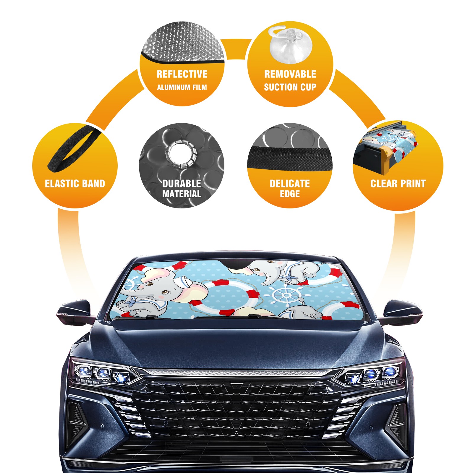 Car Windshield Sun Shade For Front Window Baby Elephant Polka Dot Foldable Vehicle Windshield Car Sun Visor Covers Automotive Window Protector Car Camping Privacy Sun Blocker