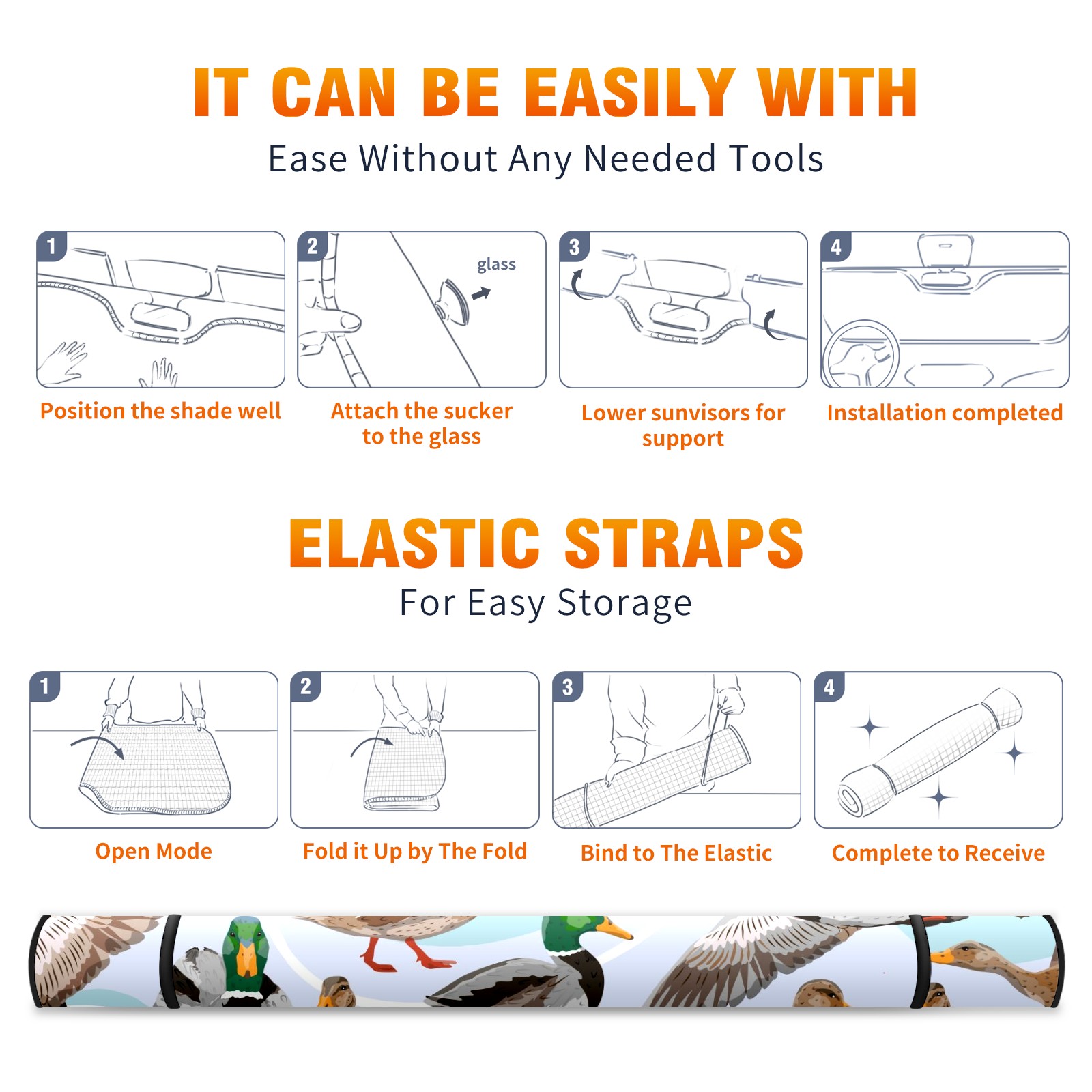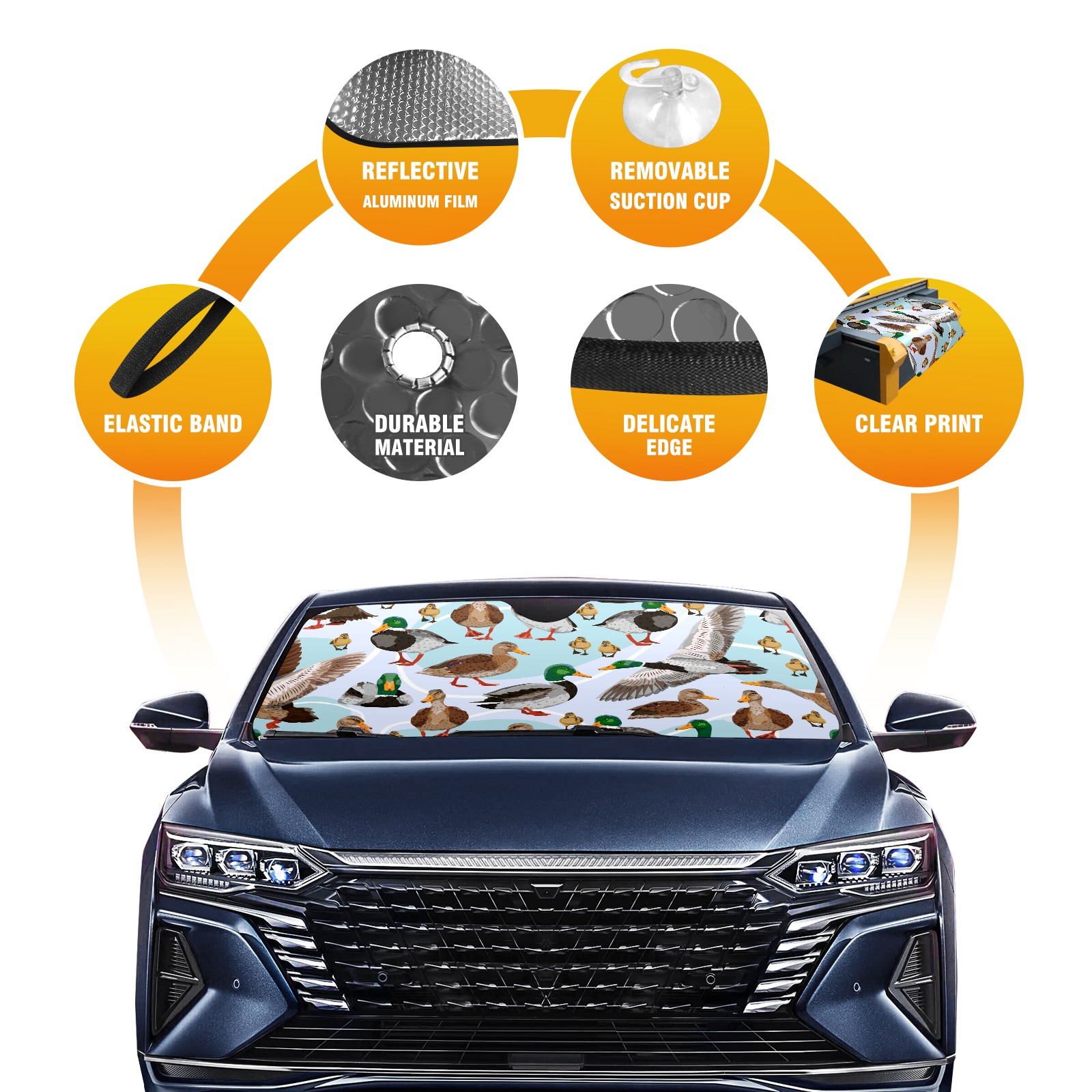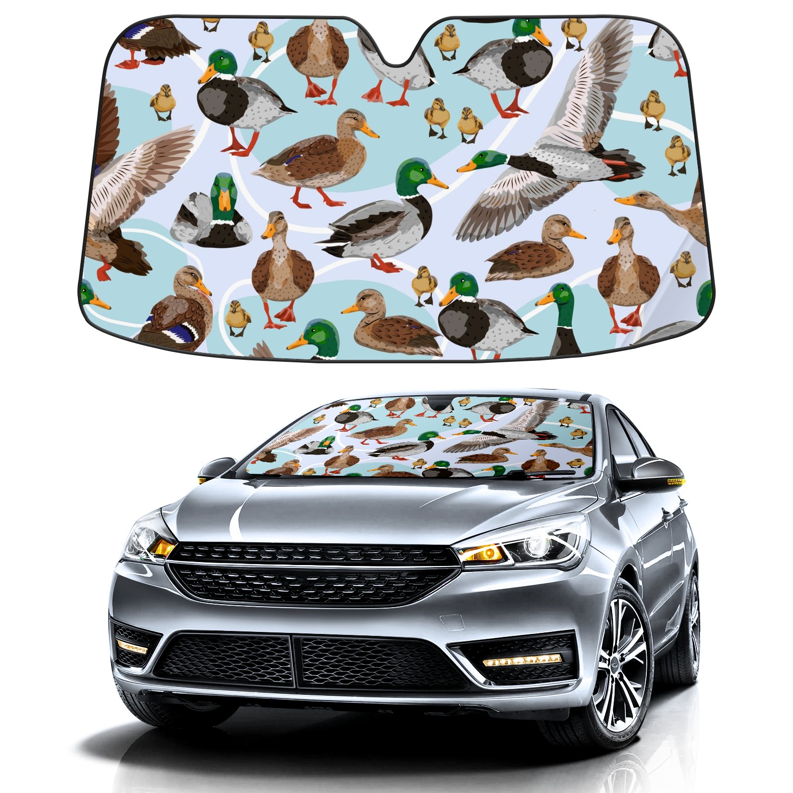 Car Windshield Sun Shade For Front Window Mallard Ducks Pattern Foldable Vehicle Windshield Car Sun Visor Covers Automotive Window Protector Car Camping Privacy Sun Blocker