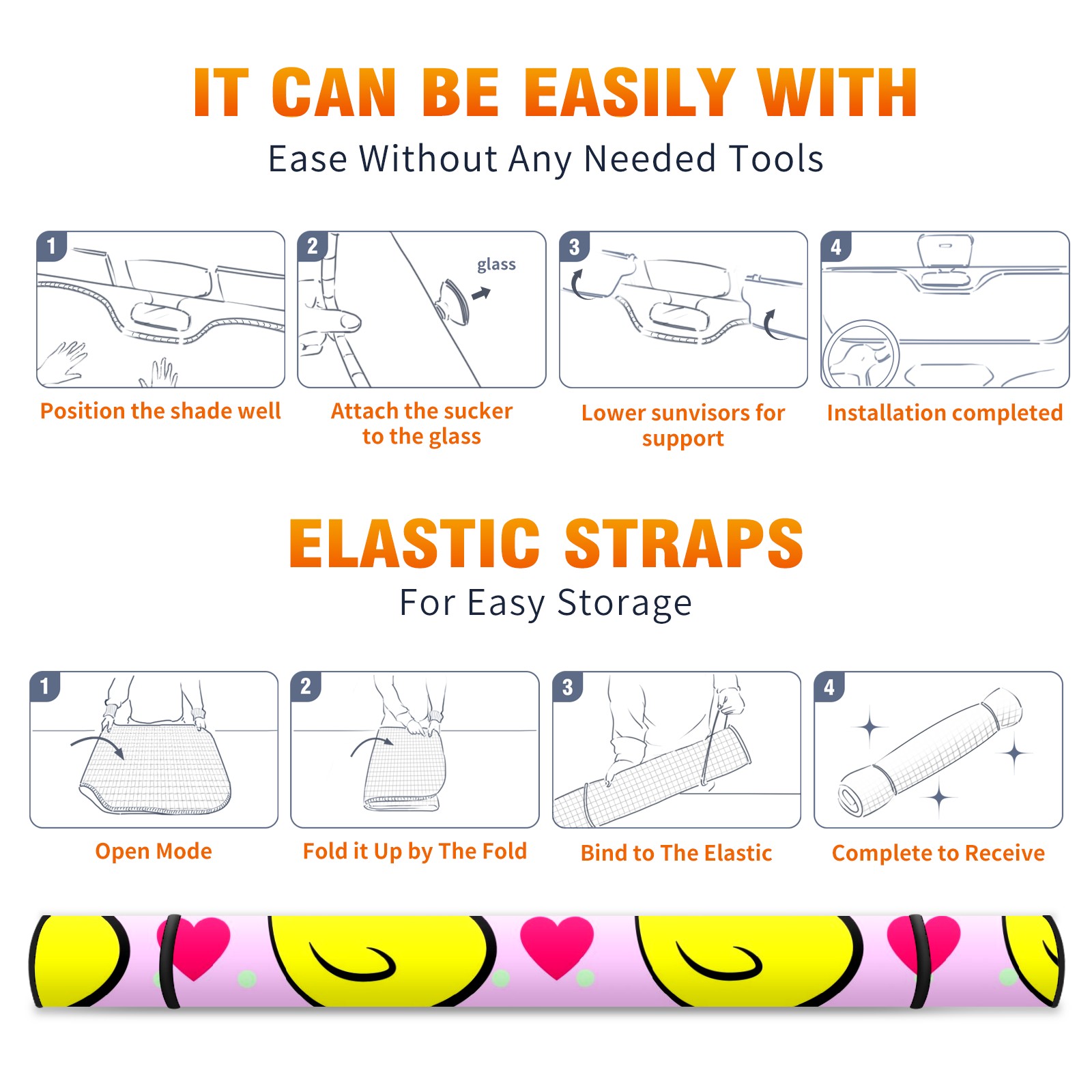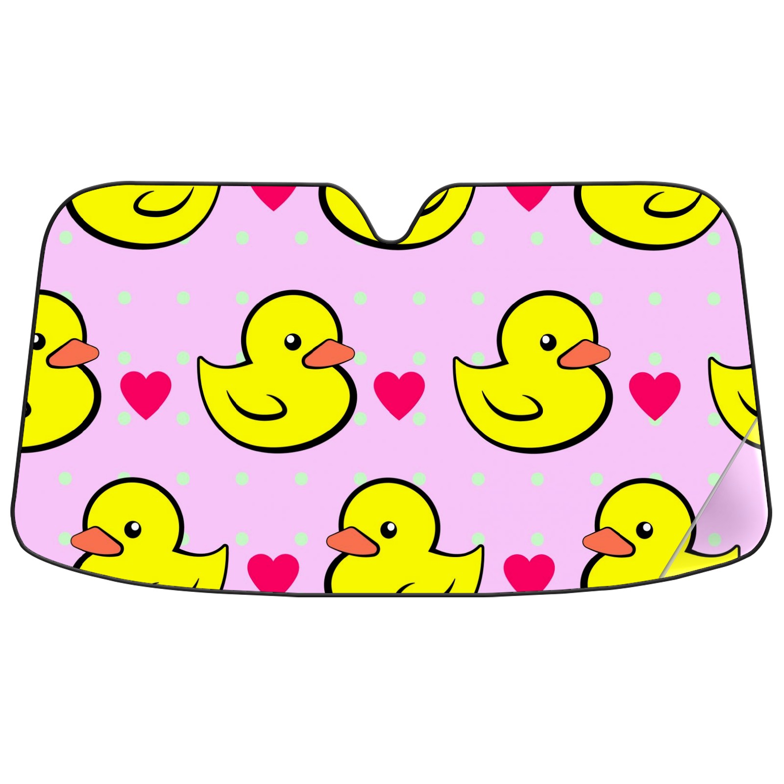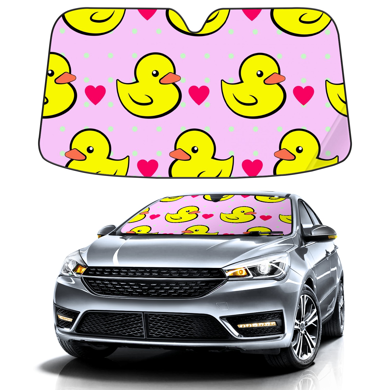 Car Windshield Sun Shade For Front Window Yellow Duck Pink Heart Polka Dots Foldable Vehicle Windshield Car Sun Visor Covers Automotive Window Protector Car Camping Privacy Sun Blocker