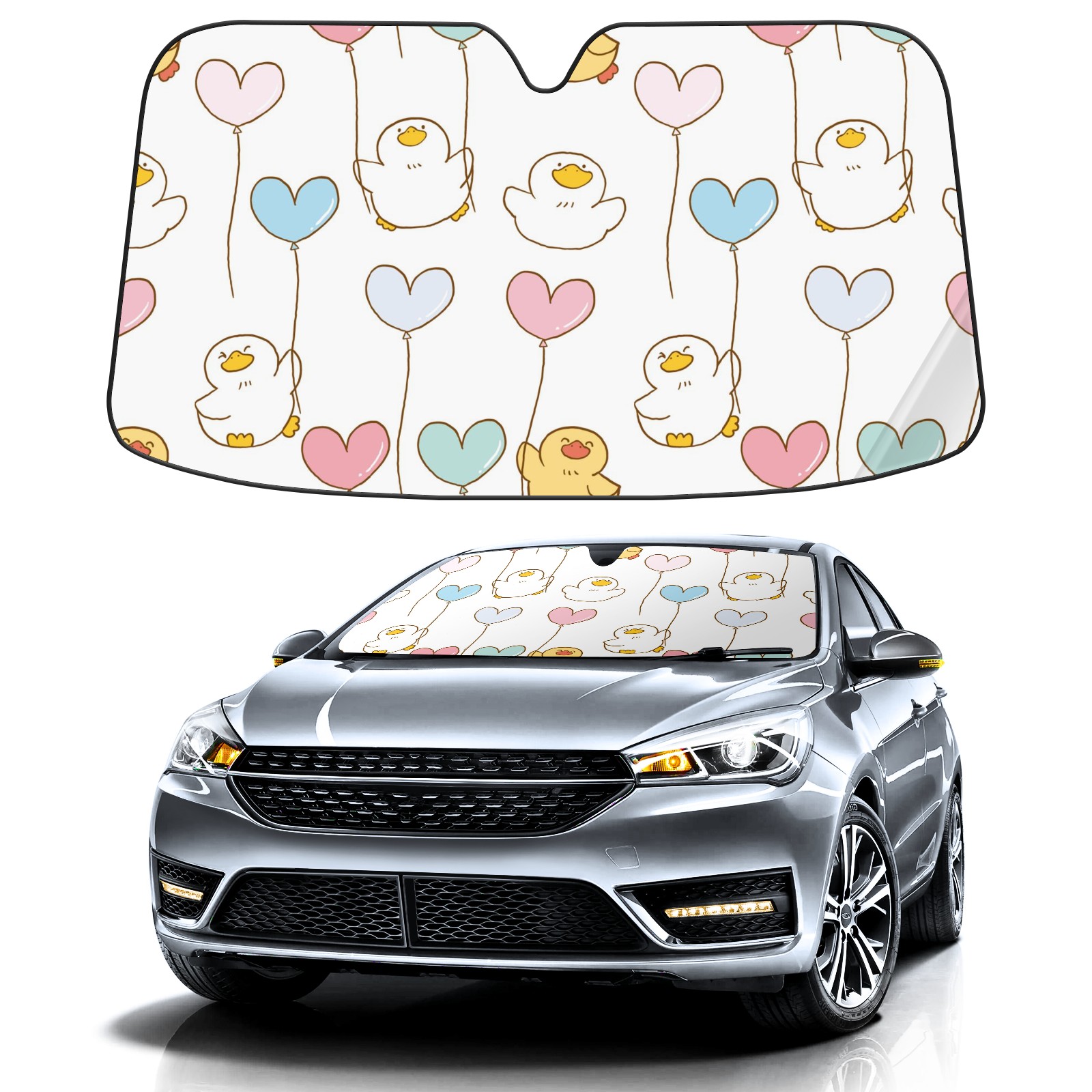 Car Windshield Sun Shade For Front Window Cute Duck And Balloon On White Background Foldable Vehicle Windshield Car Sun Visor Covers Automotive Window Protector Car Camping Privacy Sun Blocker