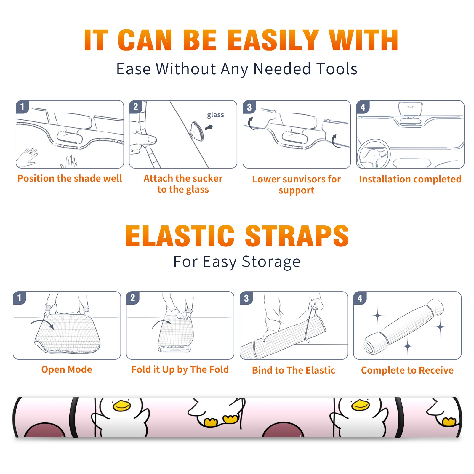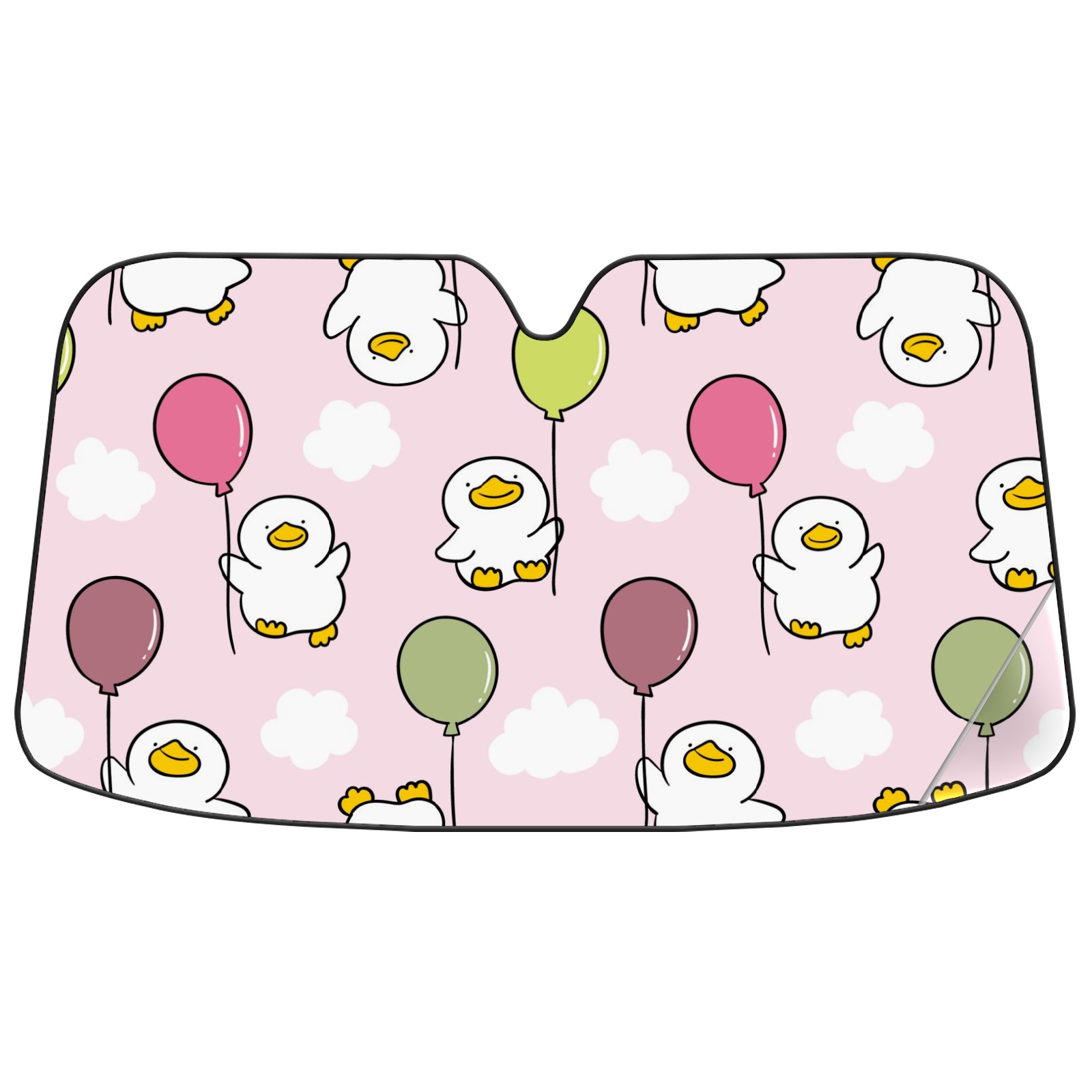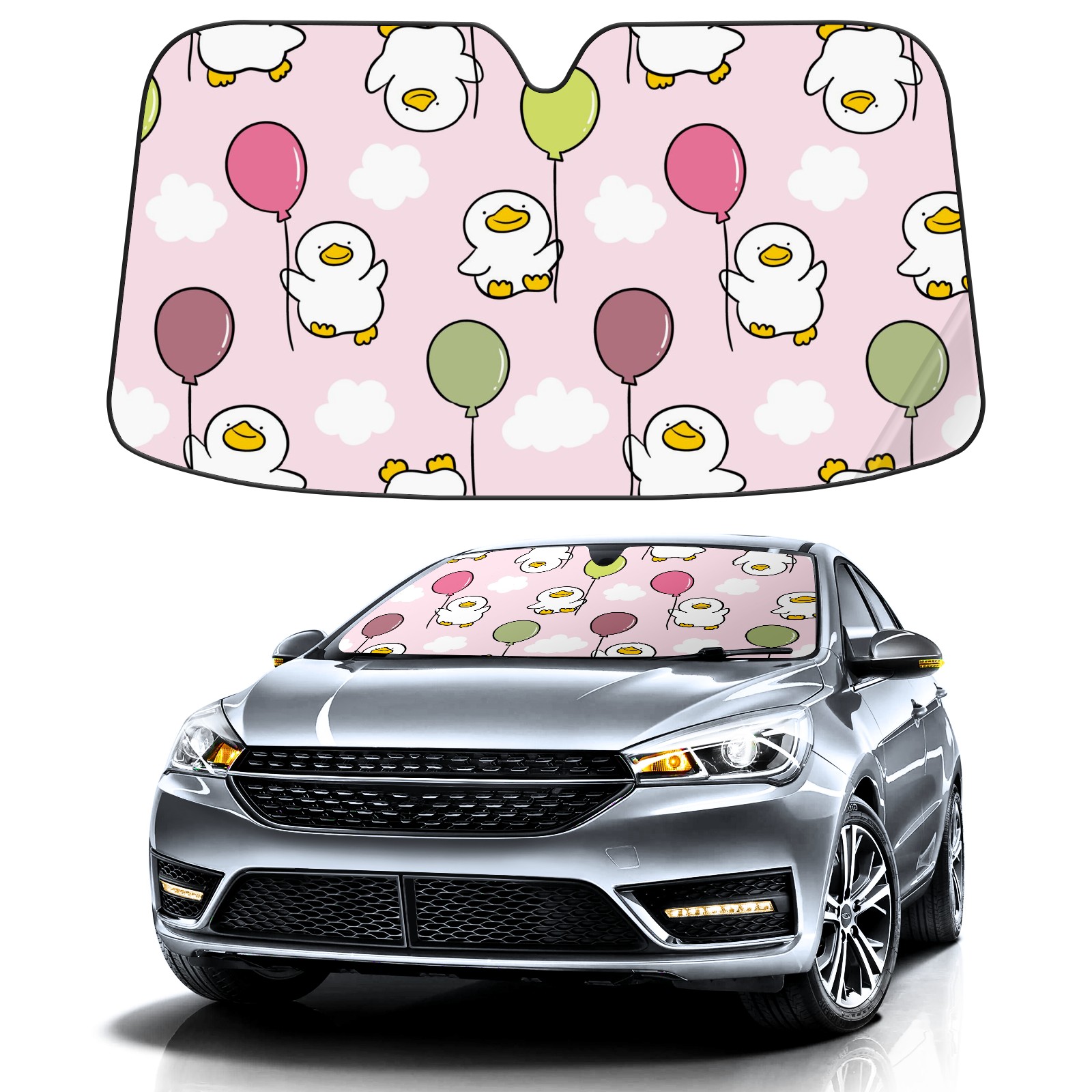 Car Windshield Sun Shade For Front Window Cute Duck And Balloon On Pink Background Foldable Vehicle Windshield Car Sun Visor Covers Automotive Window Protector Car Camping Privacy Sun Blocker
