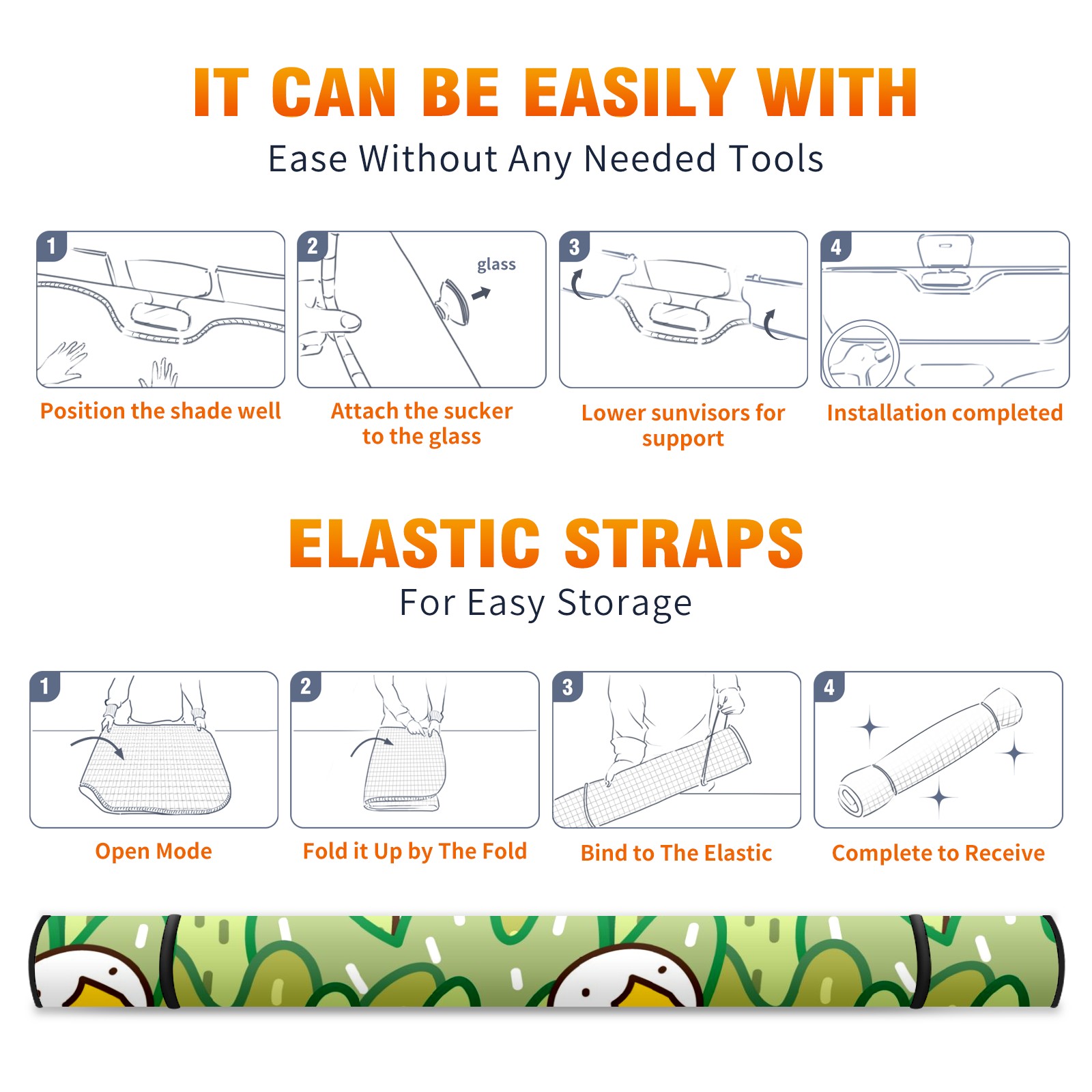 Car Windshield Sun Shade For Front Window Cute Cartoon Duck Pattern Foldable Vehicle Windshield Car Sun Visor Covers Automotive Window Protector Car Camping Privacy Sun Blocker