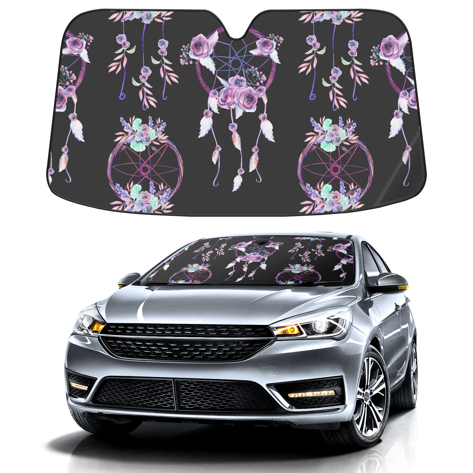 Car Windshield Sun Shade For Front Window Pink Dreamcatcher Floral Foldable Vehicle Windshield Car Sun Visor Covers Automotive Window Protector Car Camping Privacy Sun Blocker