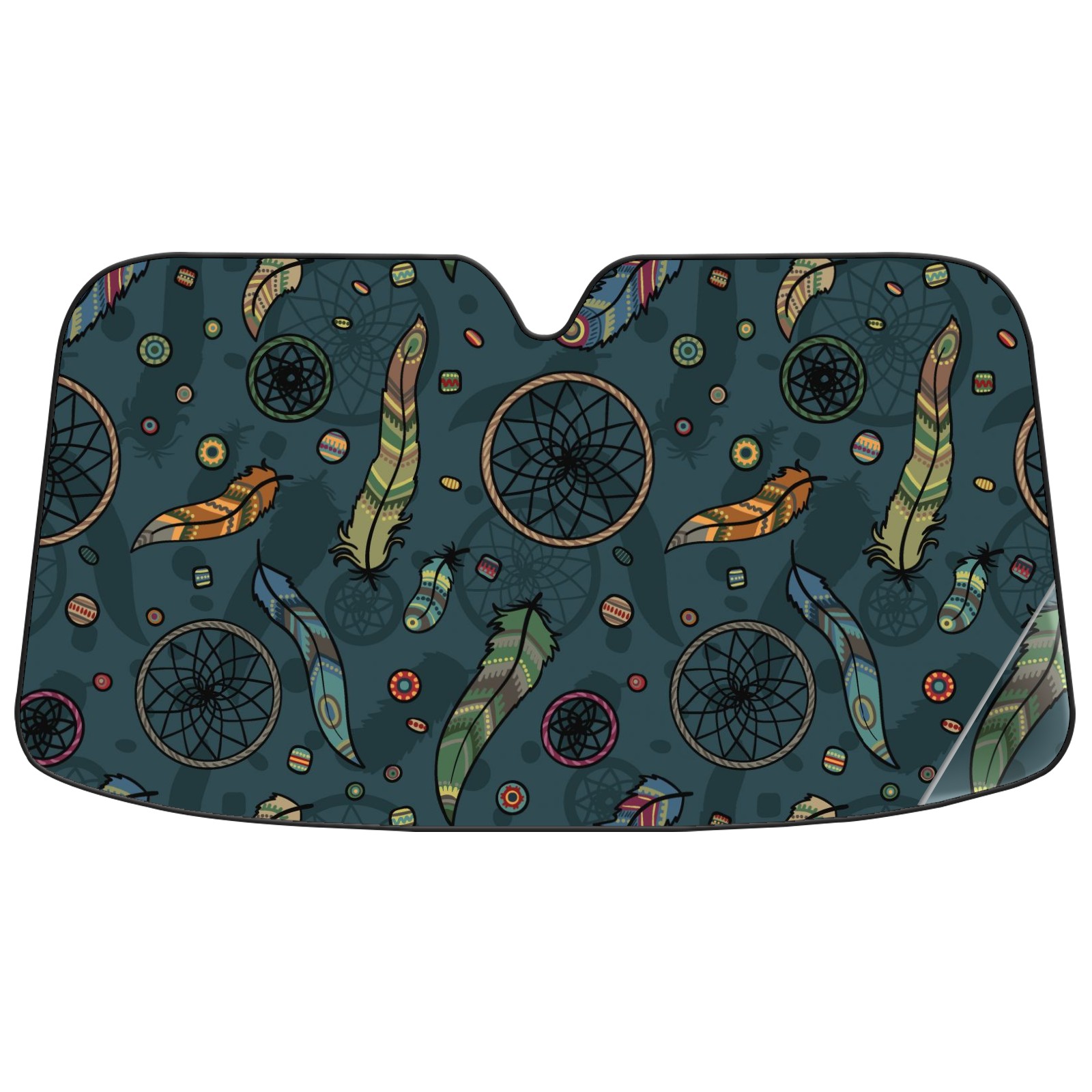 Car Windshield Sun Shade For Front Window Dreamcatcher Bead Feather On Green Background Foldable Vehicle Windshield Car Sun Visor Covers Automotive Window Protector Car Camping Privacy Sun Blocker