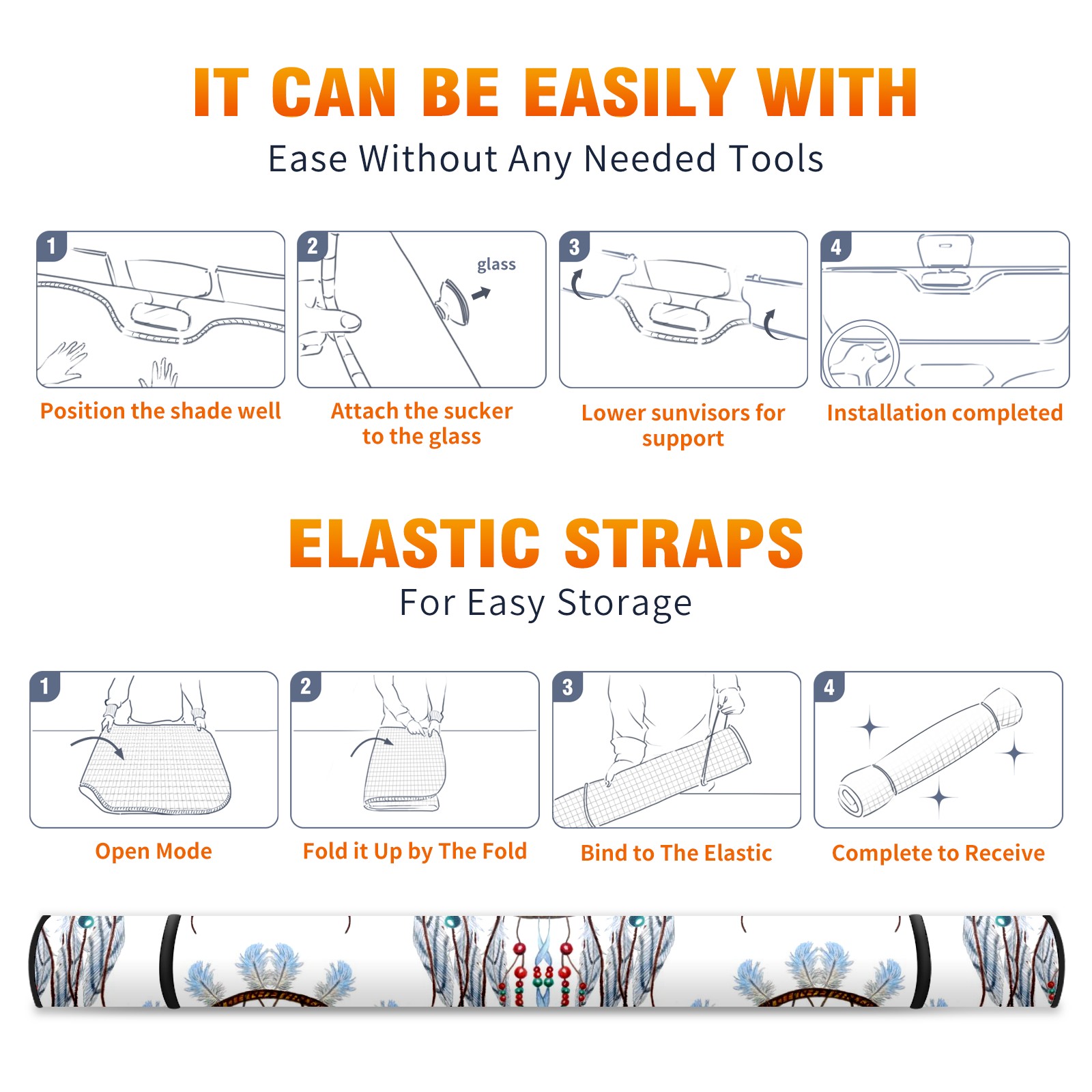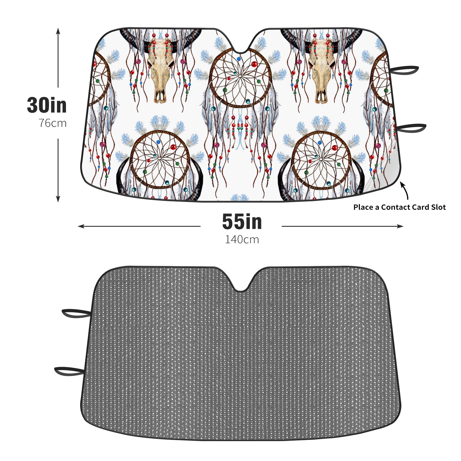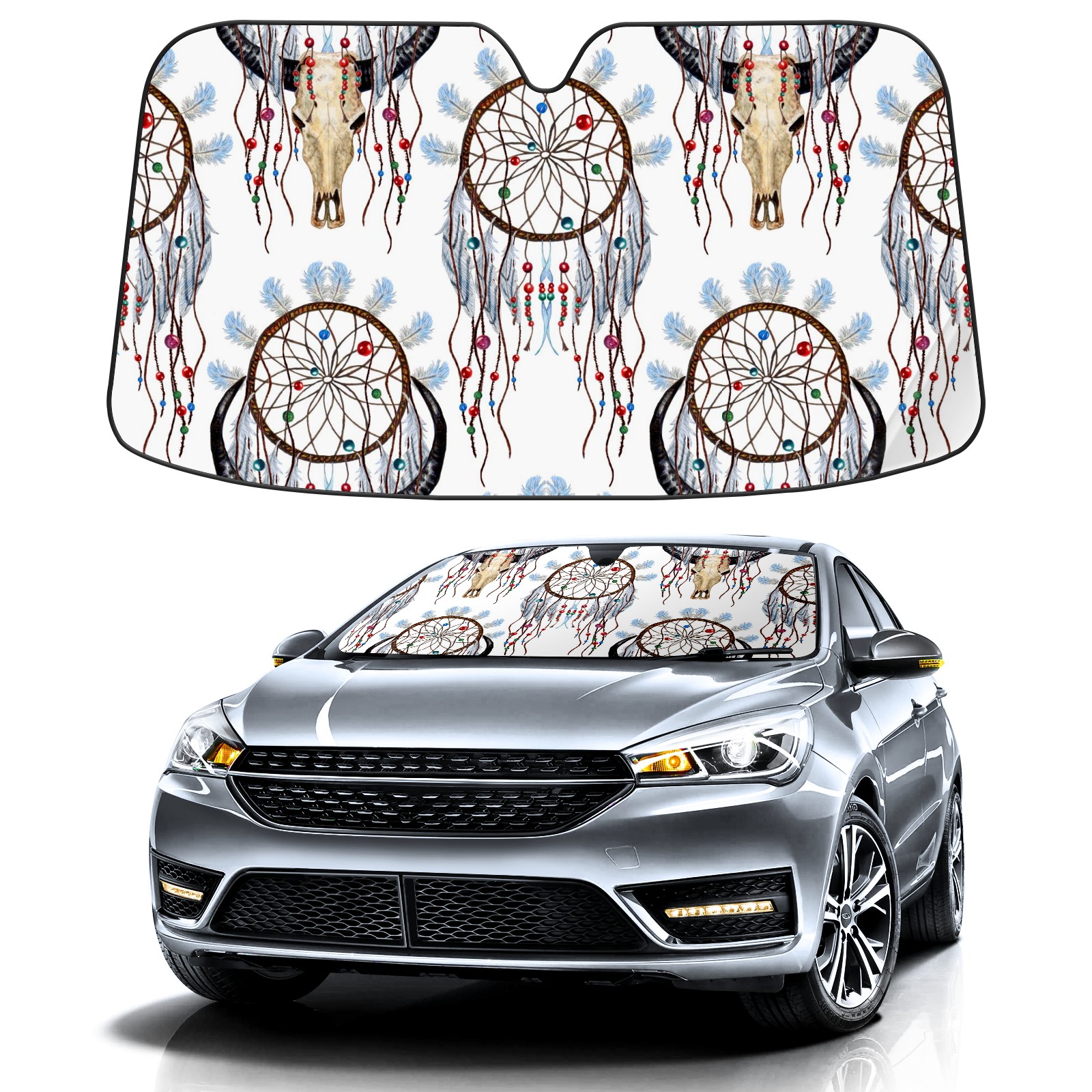 Car Windshield Sun Shade For Front Window Buffalo Skull Dreamcatcher Feather Foldable Vehicle Windshield Car Sun Visor Covers Automotive Window Protector Car Camping Privacy Sun Blocker