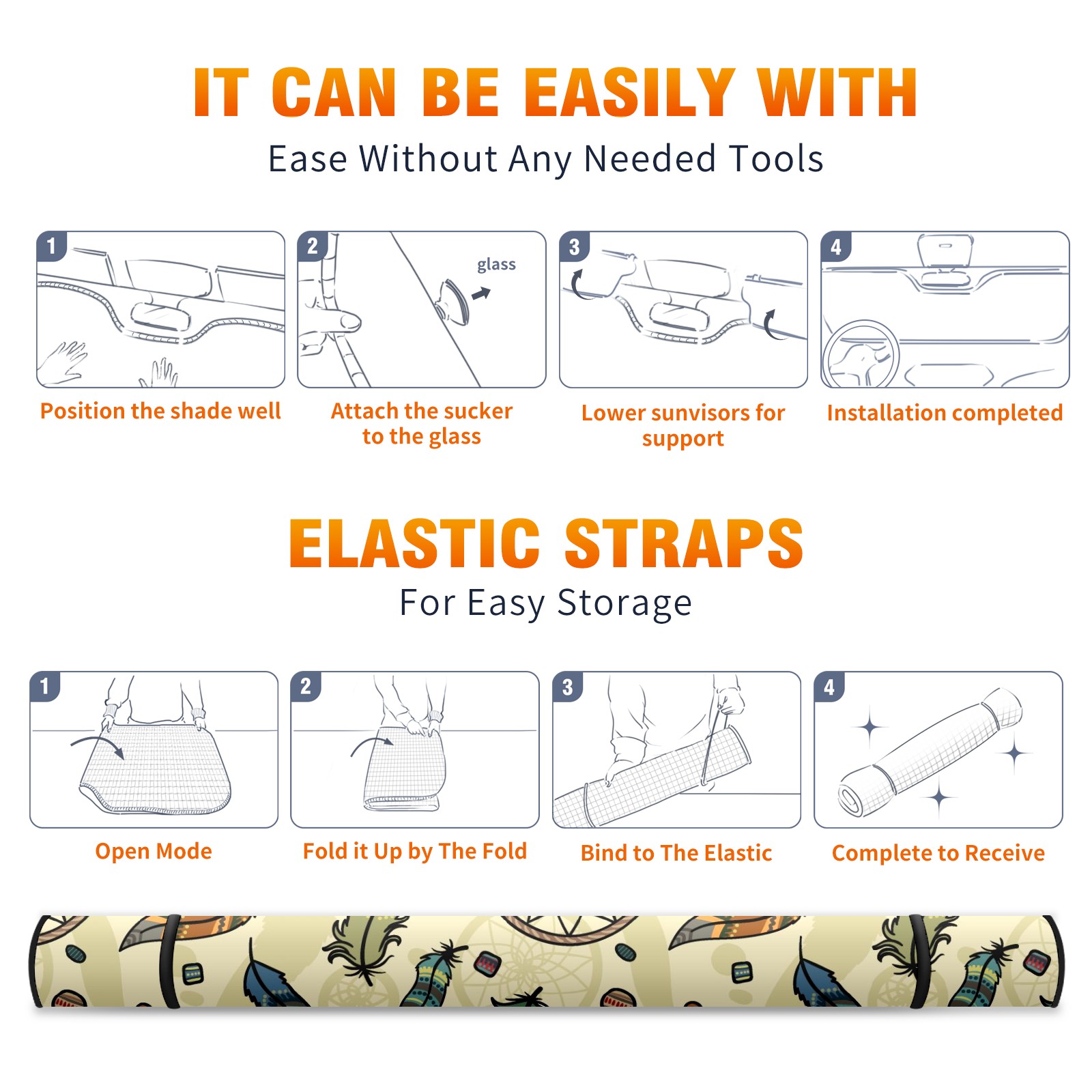 • Diameter /Size 63"L x 33.5"W Made from excellent materials which makes it sturdy and protects the car from the sun. Easy to use and pack. Makes the interior of the car cooler.You can easily stash the sunshade in the storage bag or store long term.It open and closes easy. Also the leather storage bag is durable and easy to put the umbrella back into.This windshield sunshade provides complete coverage and keeps your car interior cool under direct sun. It is easy to open and position under the windshield and around the rear-view mirror. Makes Your Car Easy To Identify, Perfect For Finding Your Car In Crowded Parking Lots And Garages.Great Choice: It Is A Great Gift For Dad, Boyfriend, Brother, Brother And Uncle, Friends, Classmates, Family And So On. Notice: Due To Difference Computer Monitors, The Color Maybe Slightly Different From Picture. As Different Measurement Methods, Measurement Data Will Float Within 2%.I Hope You Understand. If You Have Any Question About The Item Please Do Not Hesitate To Contact Us Immediately And We Will Give You A Satisfactory Reply Within 24 Hours.