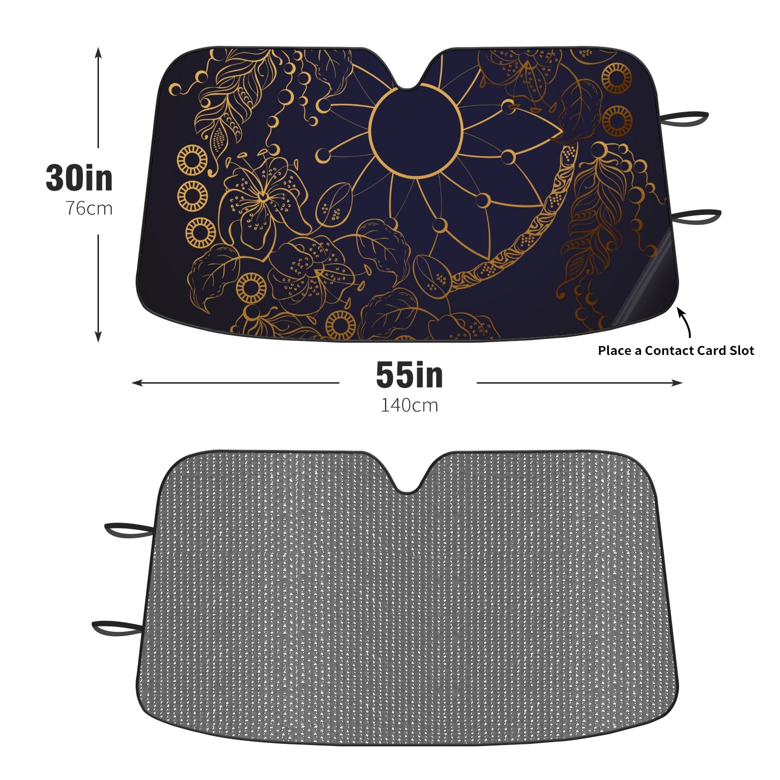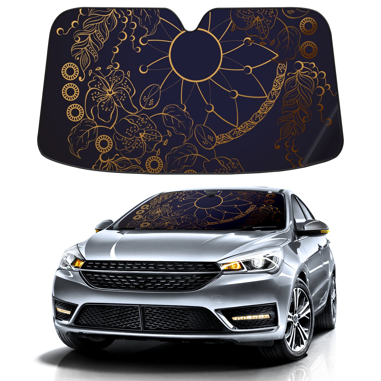 Car Windshield Sun Shade For Front Window Boho Golden Dreamcatcher Foldable Vehicle Windshield Car Sun Visor Covers Automotive Window Protector Car Camping Privacy Sun Blocker