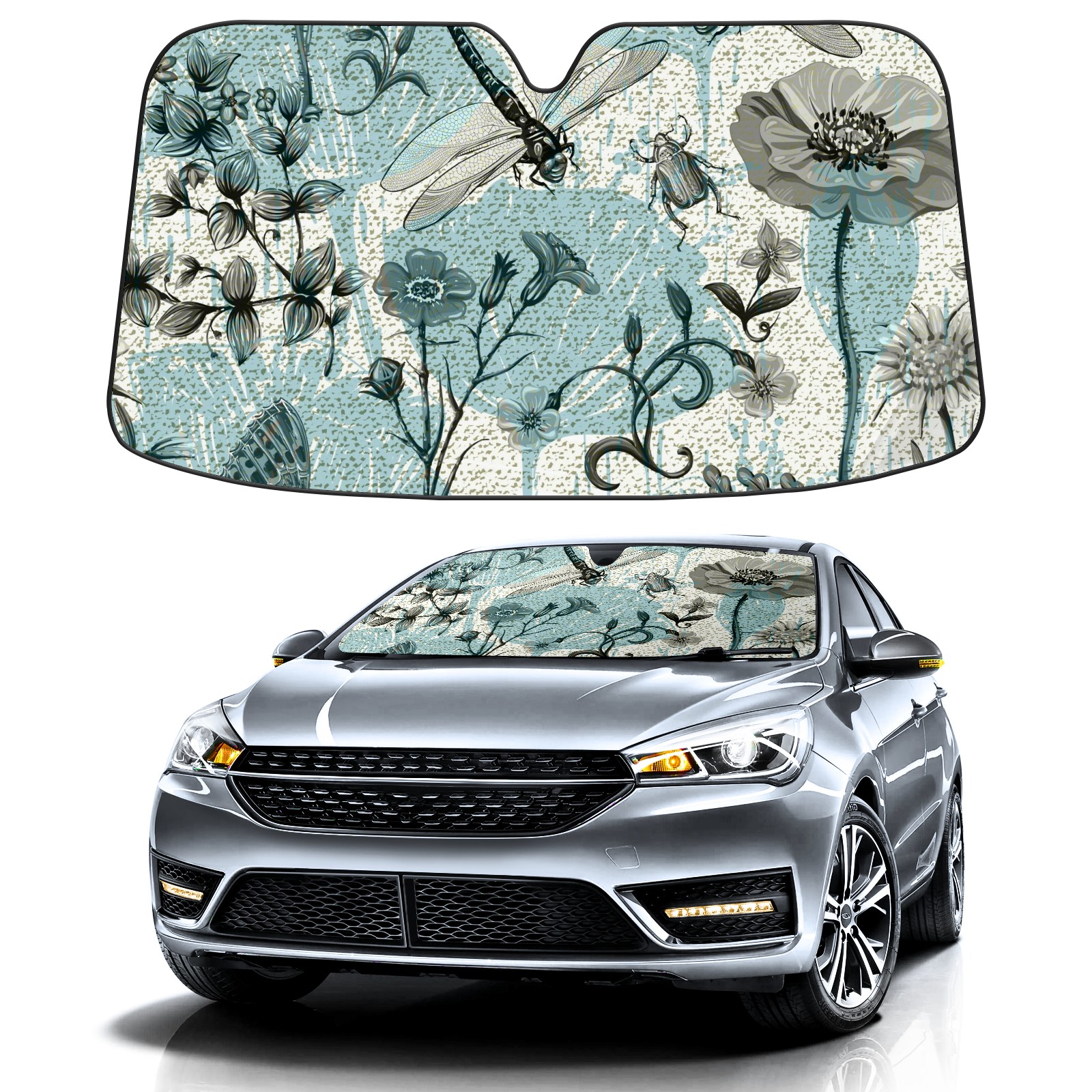 Car Windshield Sun Shade For Front Window Summer Vintage Butterfly Dragonfly Beetle And Plant Foldable Vehicle Windshield Car Sun Visor Covers Automotive Window Protector Car Camping Privacy Sun Blocker