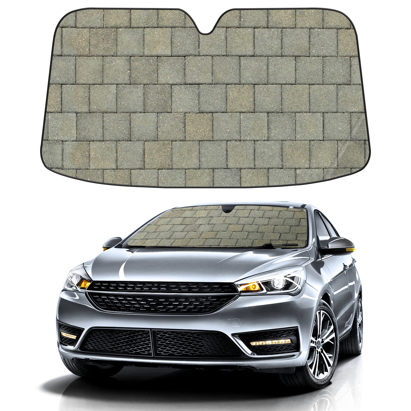 Car Windshield Sun Shade For Front Window Brick Printing Foldable Vehicle Windshield Car Sun Visor Covers Automotive Window Protector Car Camping Privacy Sun Blocker