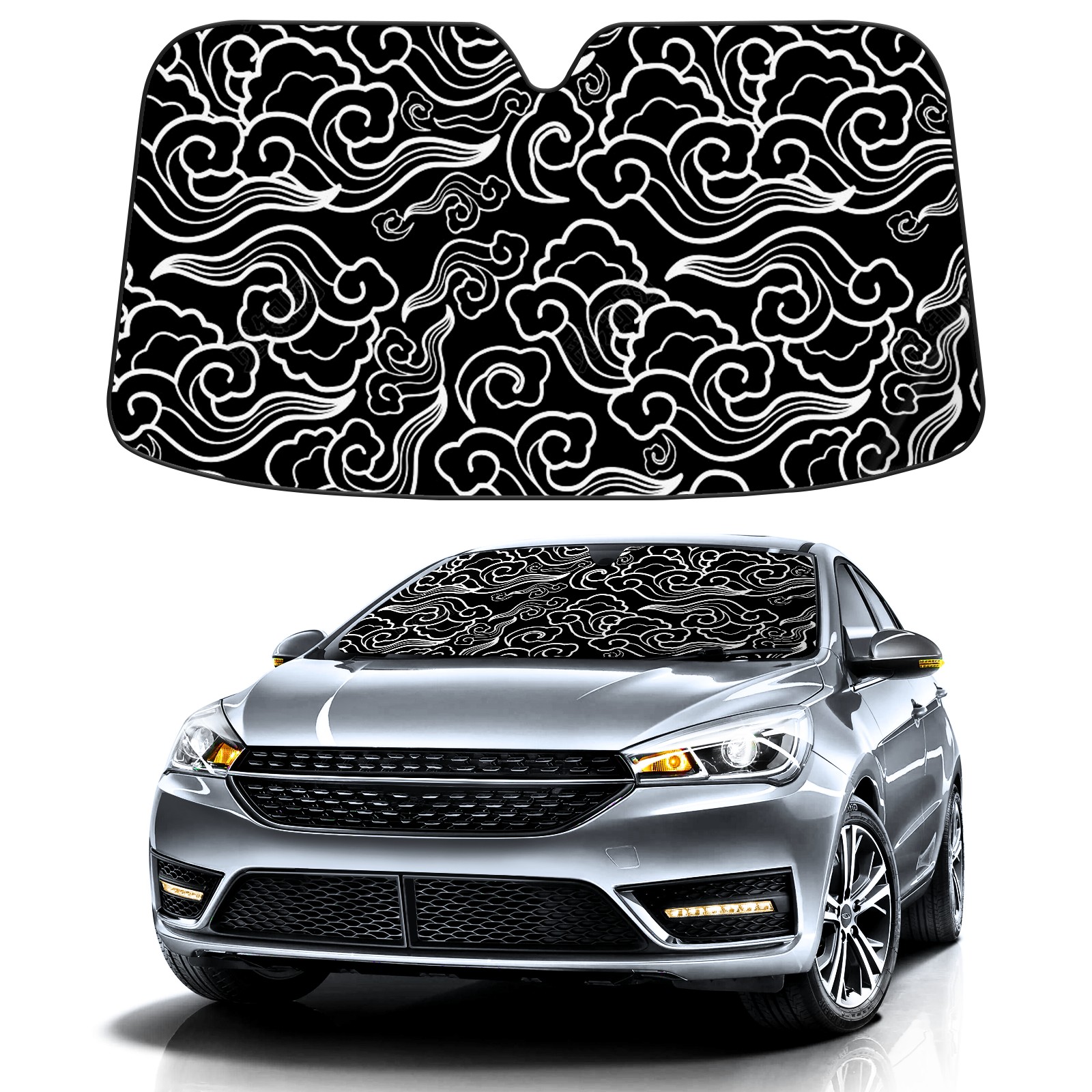 Car Windshield Sun Shade For Front Window Wave Print Foldable Vehicle Windshield Car Sun Visor Covers Automotive Window Protector Car Camping Privacy Sun Blocker