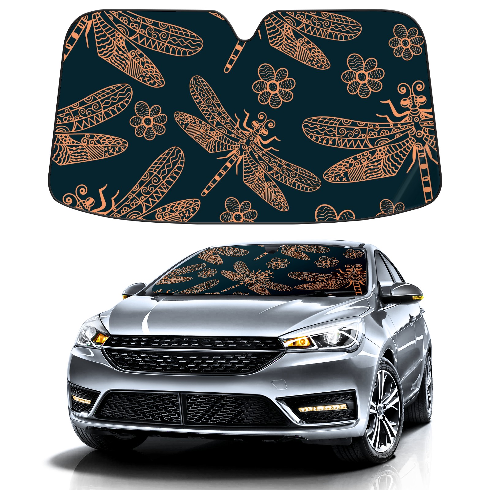 Car Windshield Sun Shade For Front Window Dragonfly On Blue Background Foldable Vehicle Windshield Car Sun Visor Covers Automotive Window Protector Car Camping Privacy Sun Blocker