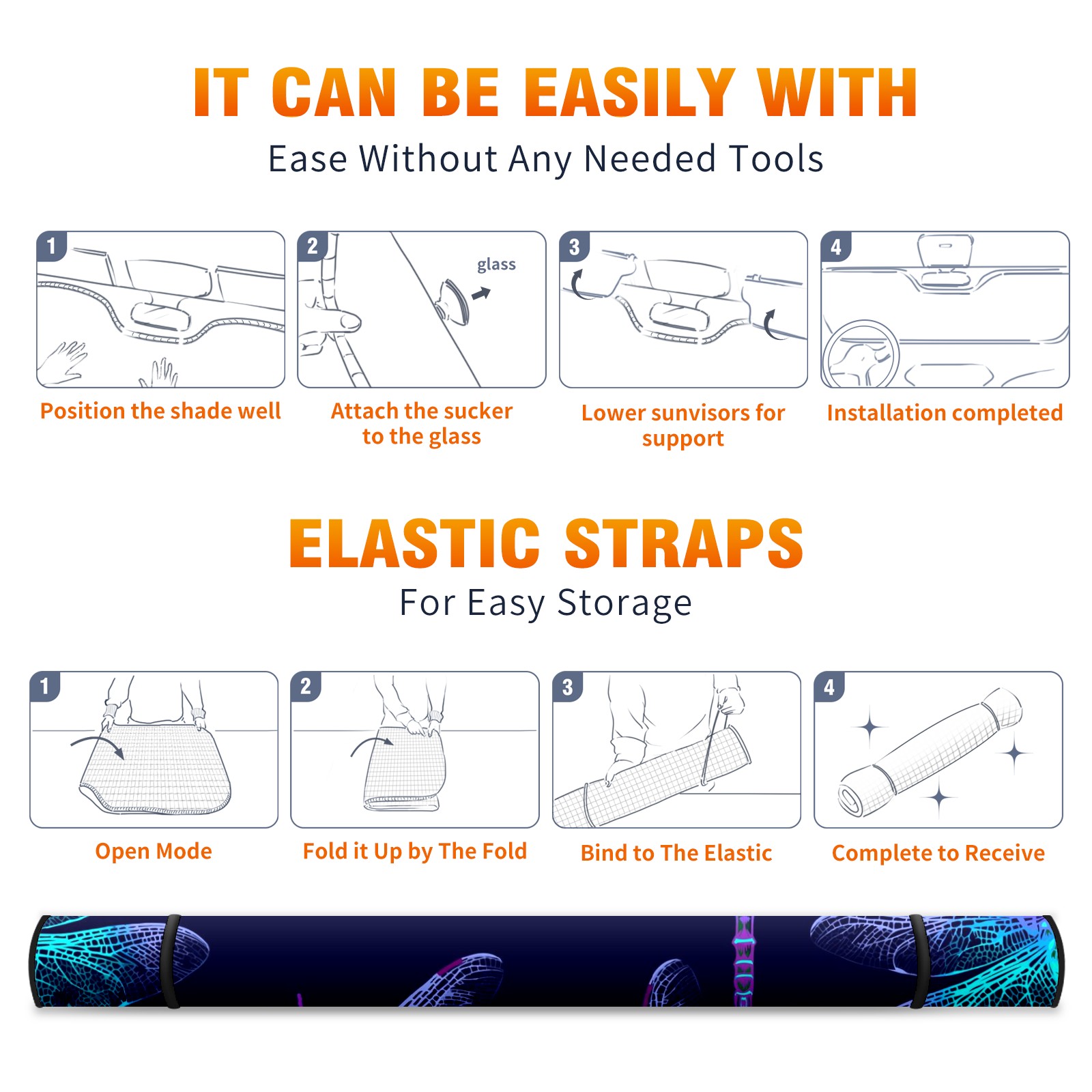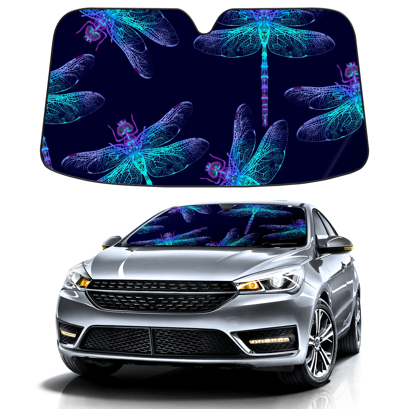 Car Windshield Sun Shade For Front Window Dragonfly On Dark Blue Background Foldable Vehicle Windshield Car Sun Visor Covers Automotive Window Protector Car Camping Privacy Sun Blocker