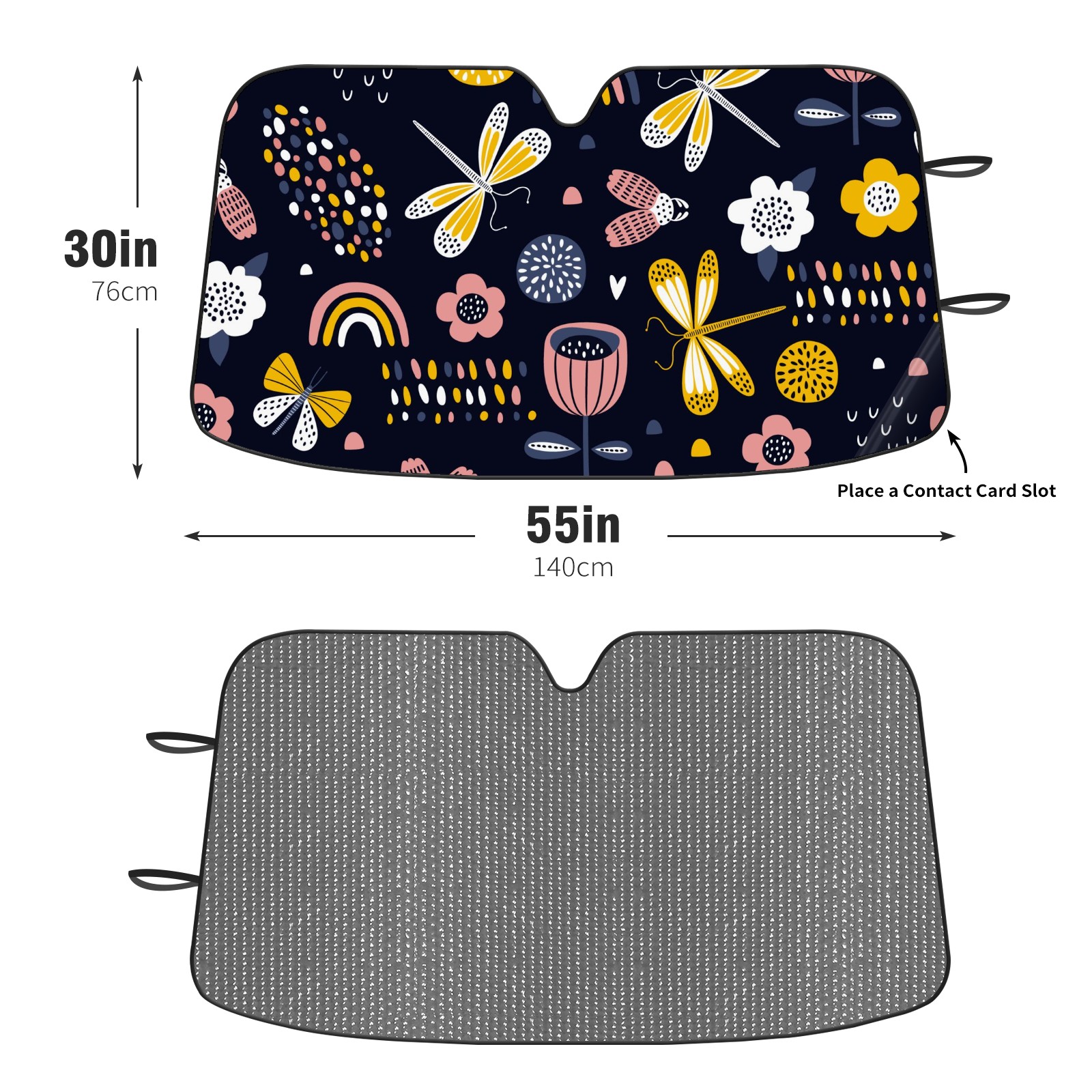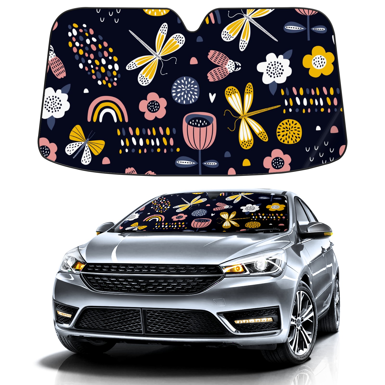Car Windshield Sun Shade For Front Window Dragonfly Flower Rainbow Scandinavian Style Foldable Vehicle Windshield Car Sun Visor Covers Automotive Window Protector Car Camping Privacy Sun Blocker