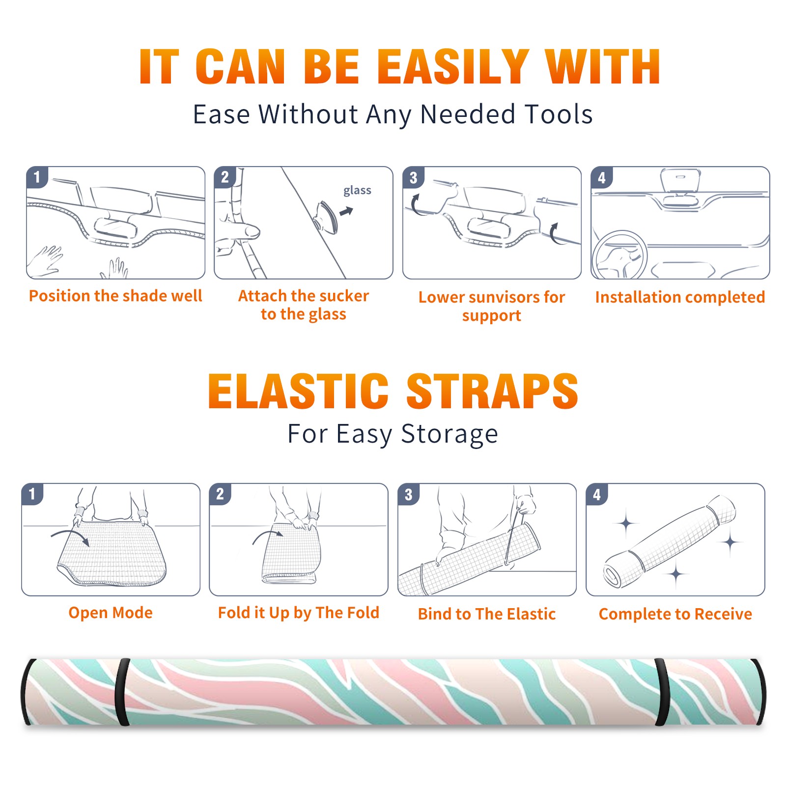 Car Windshield Sun Shade For Front Window Stripe Foldable Vehicle Windshield Car Sun Visor Covers Automotive Window Protector Car Camping Privacy Sun Blocker