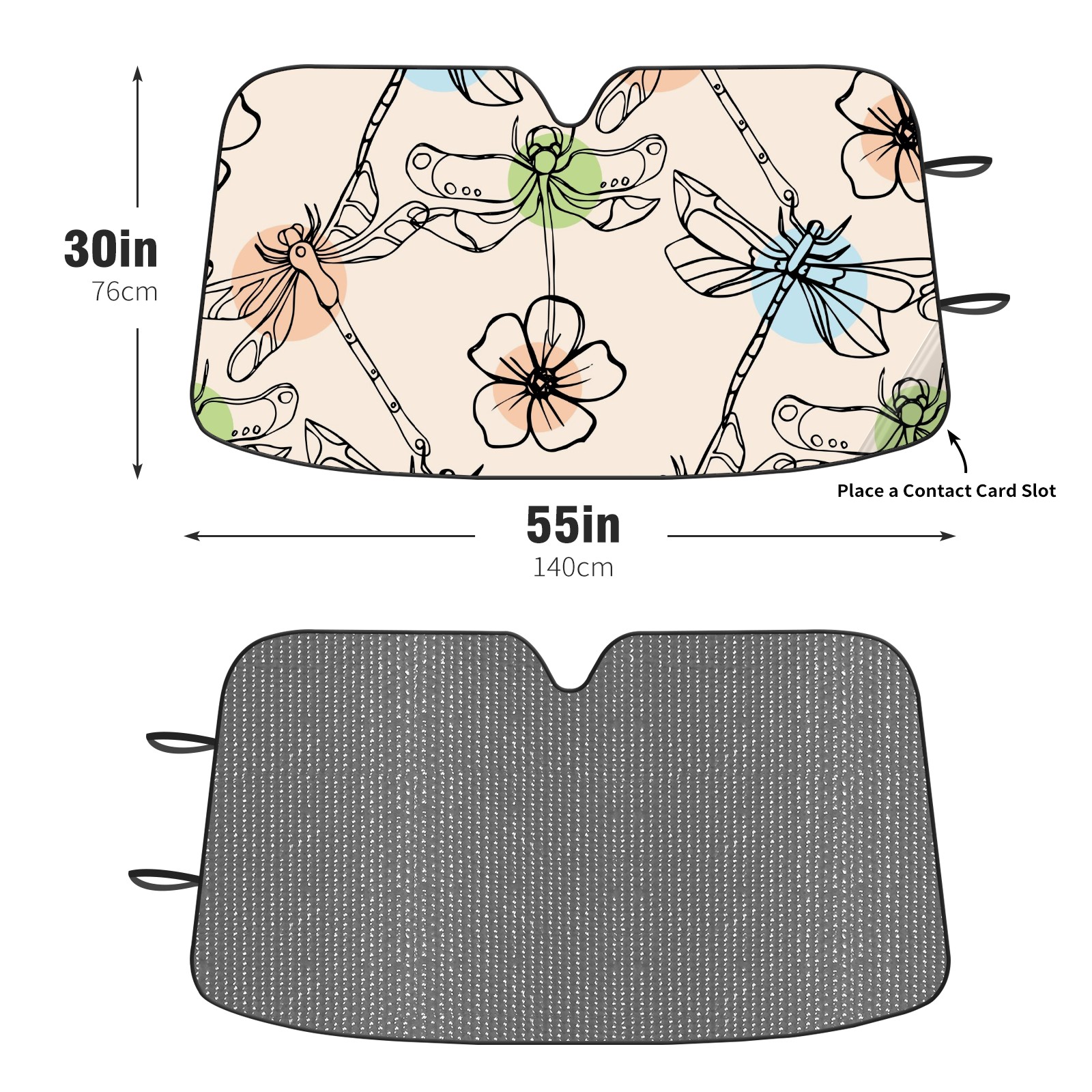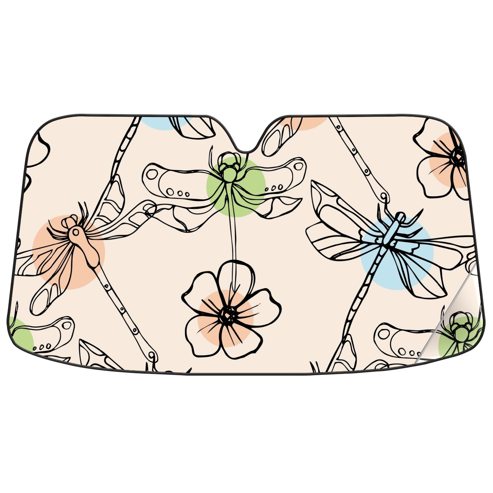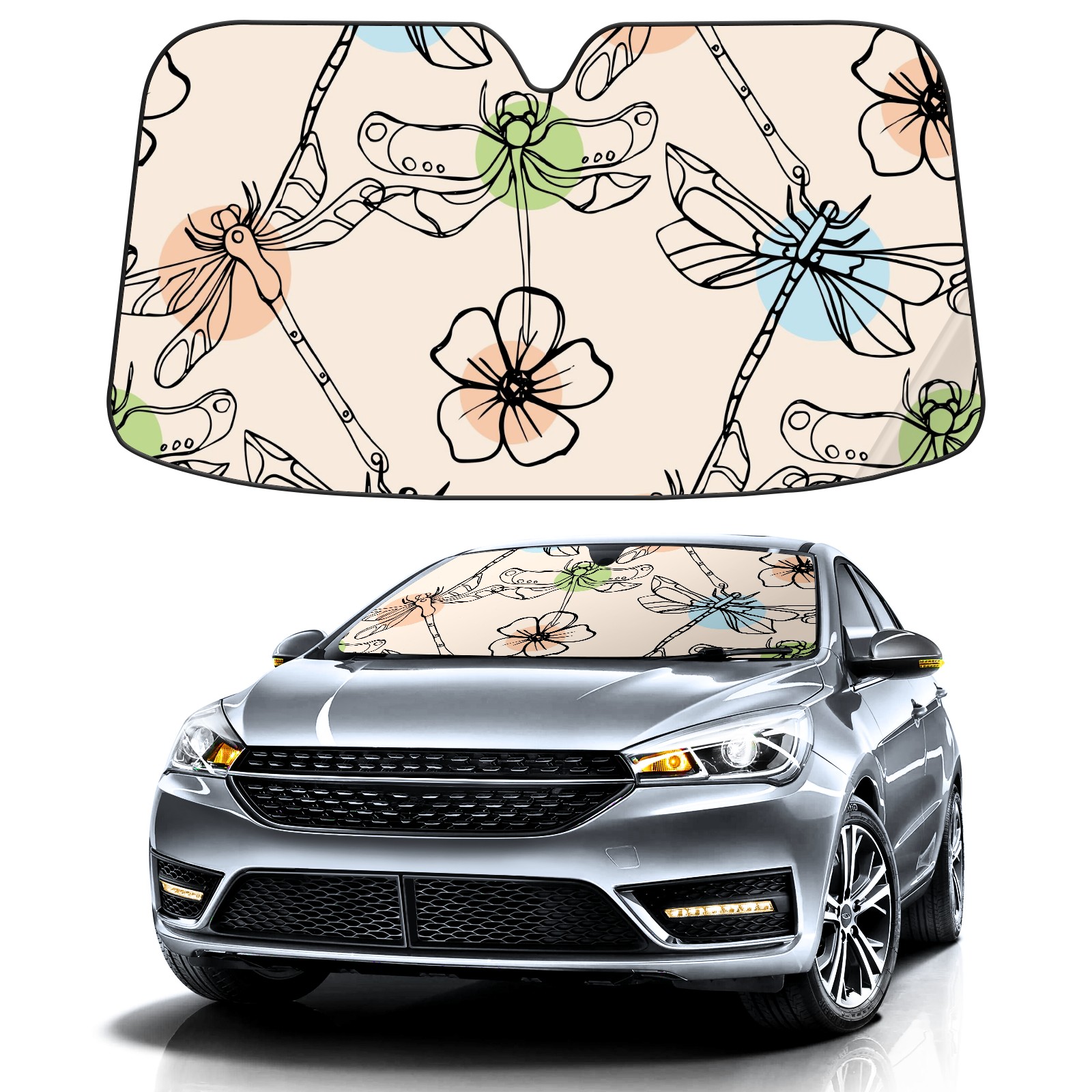 Car Windshield Sun Shade For Front Window Dragonfly And Polka Dot Foldable Vehicle Windshield Car Sun Visor Covers Automotive Window Protector Car Camping Privacy Sun Blocker