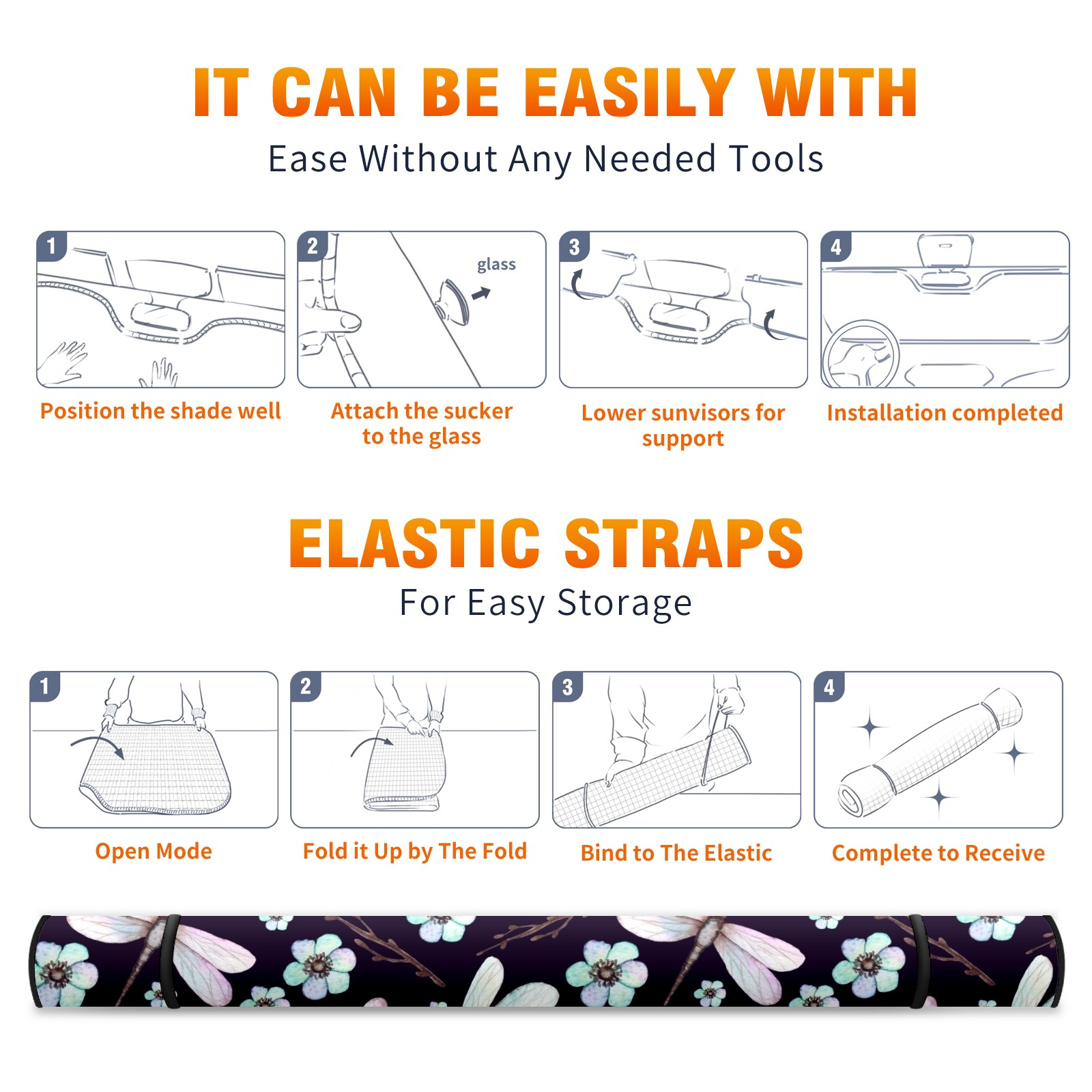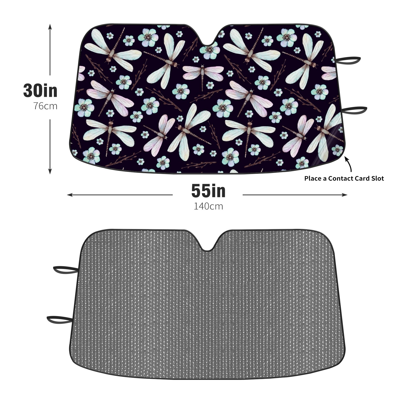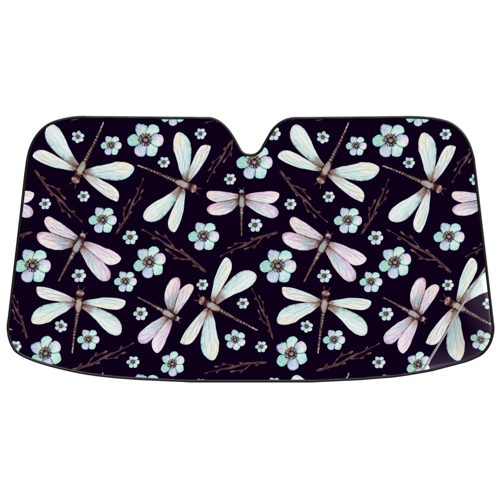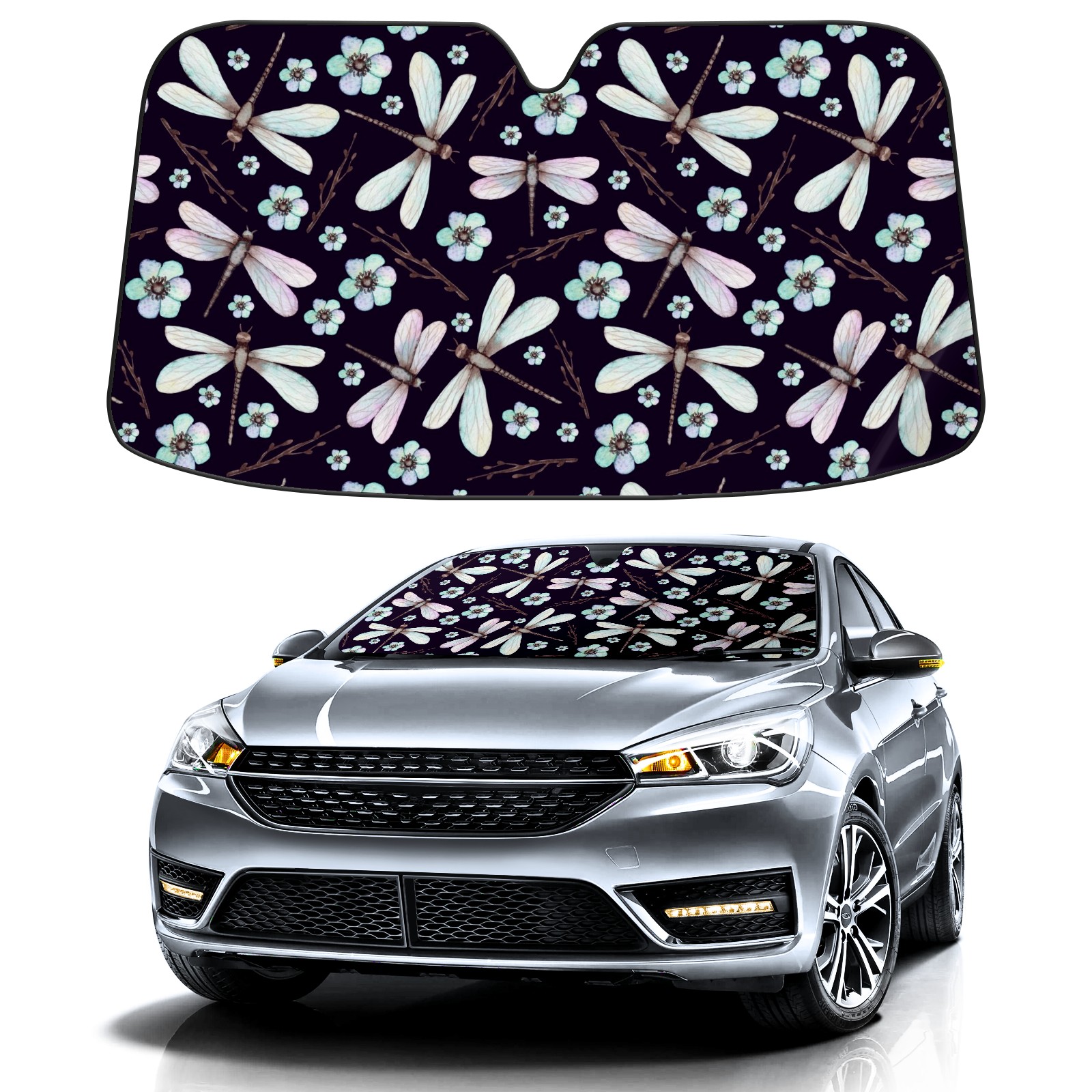 Car Windshield Sun Shade For Front Window Dragonfly And Blue Flowers On Dark Background Foldable Vehicle Windshield Car Sun Visor Covers Automotive Window Protector Car Camping Privacy Sun Blocker