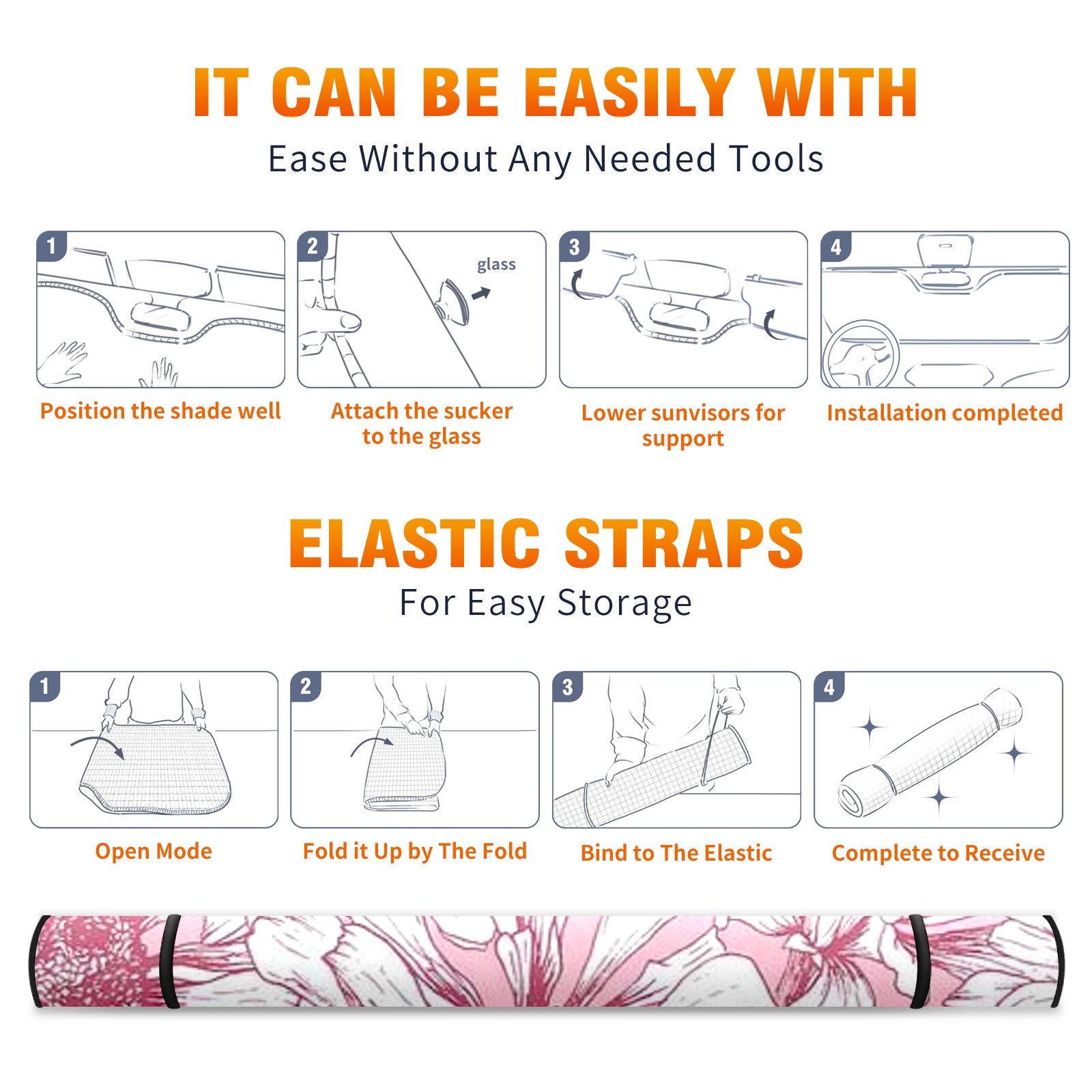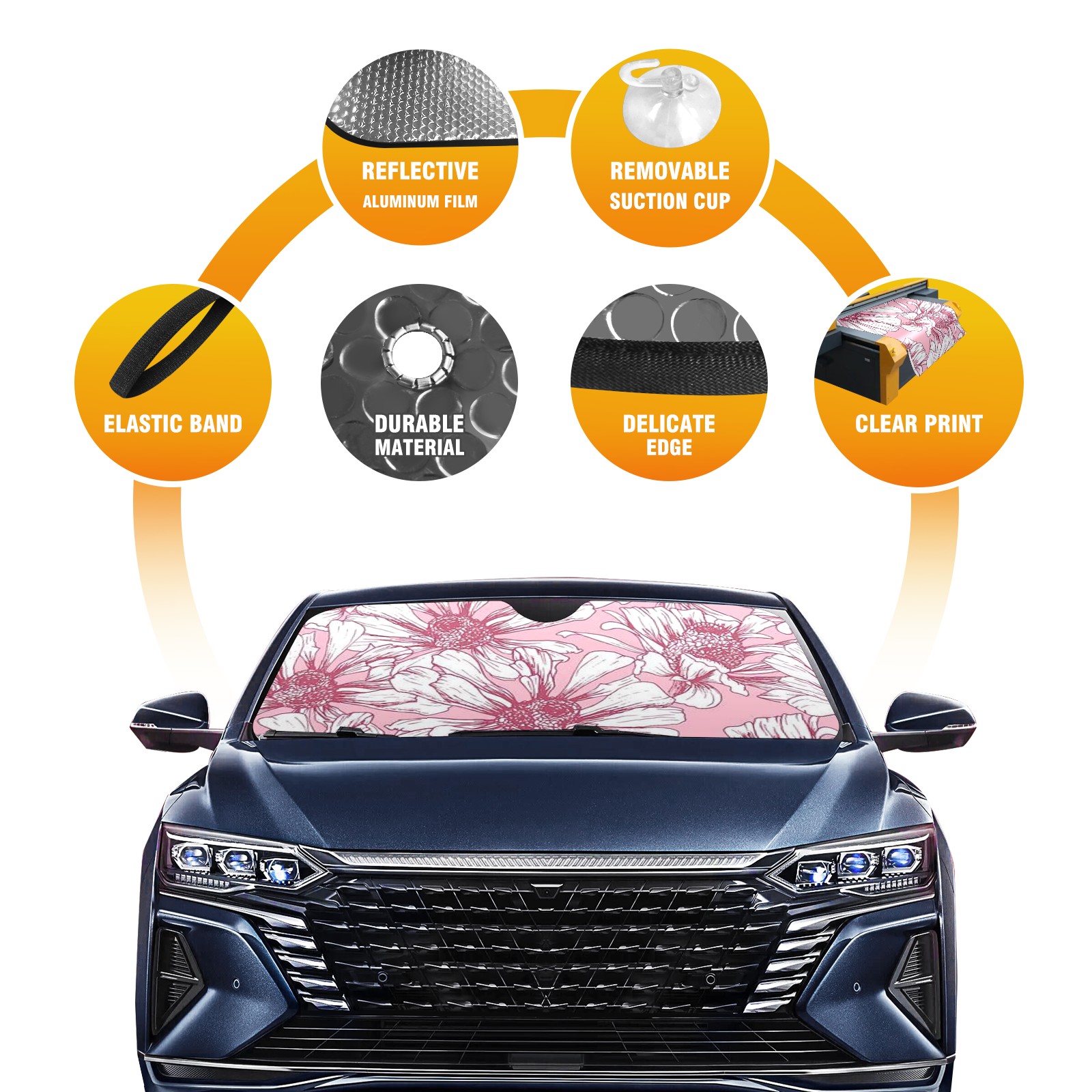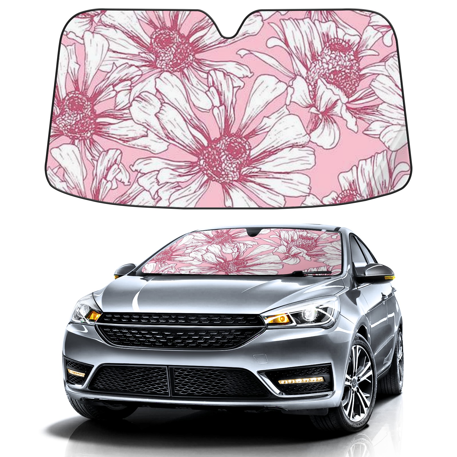 Car Windshield Sun Shade For Front Window Flower Print Foldable Vehicle Windshield Car Sun Visor Covers Automotive Window Protector Car Camping Privacy Sun Blocker