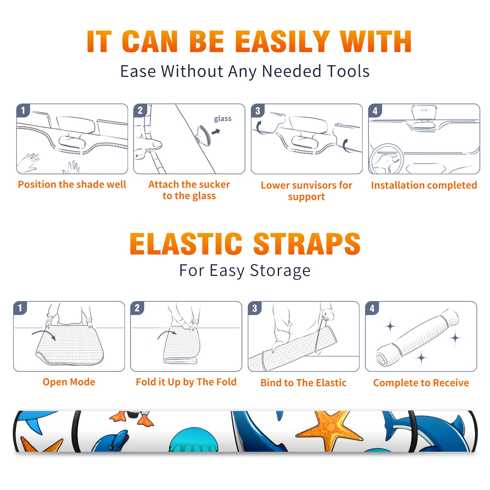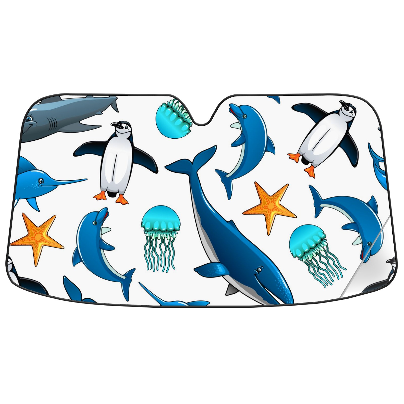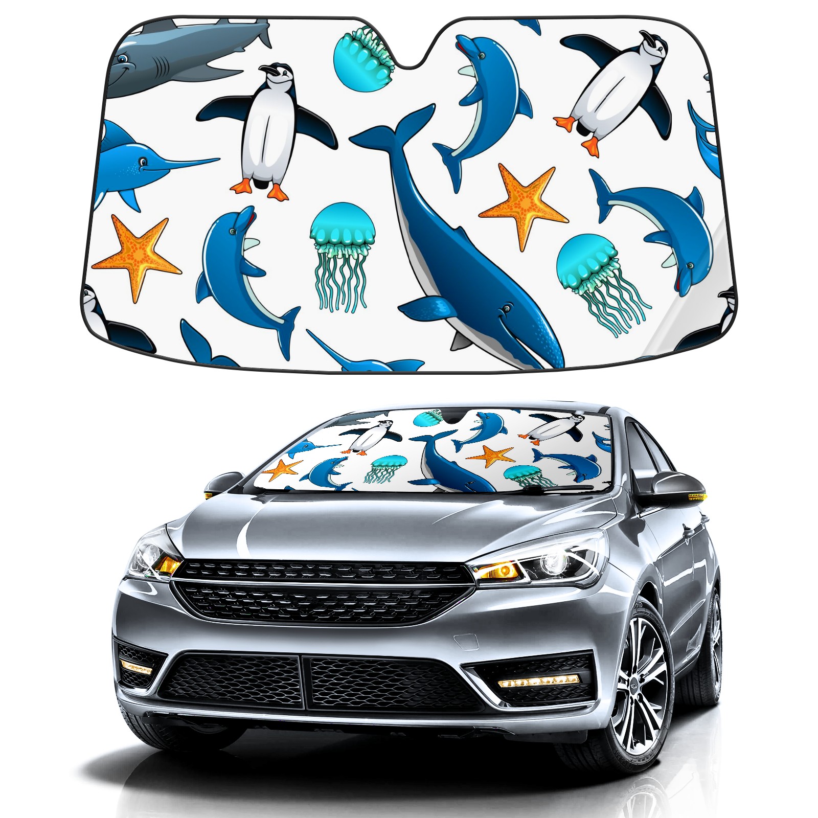 Car Windshield Sun Shade For Front Window Dolphin Penguin Shark Whale Starfish Foldable Vehicle Windshield Car Sun Visor Covers Automotive Window Protector Car Camping Privacy Sun Blocker
