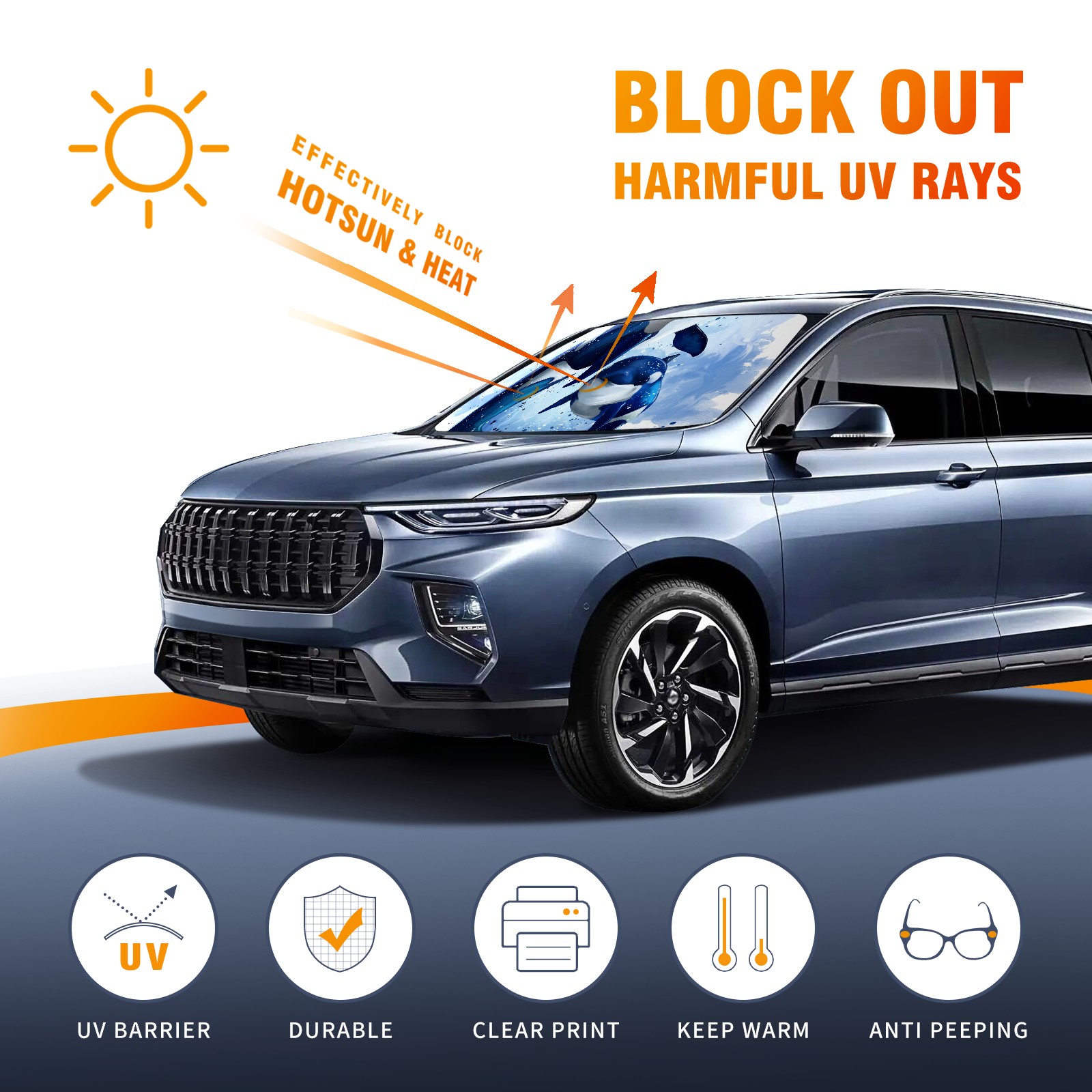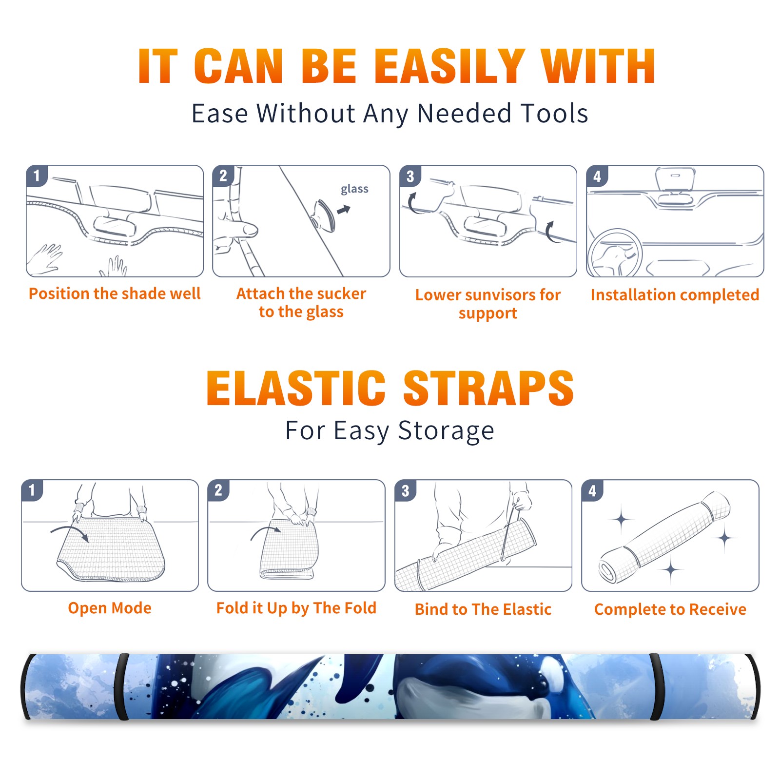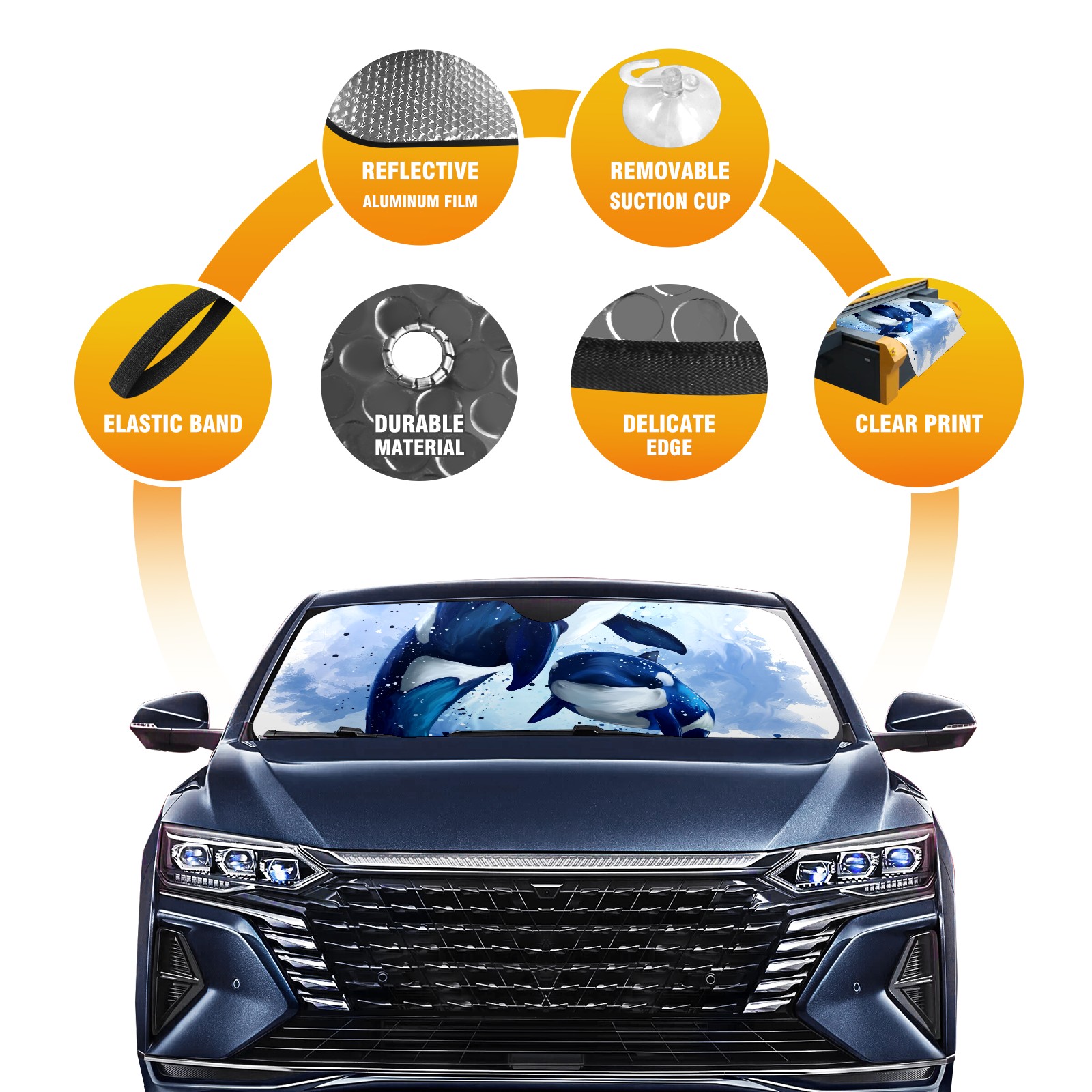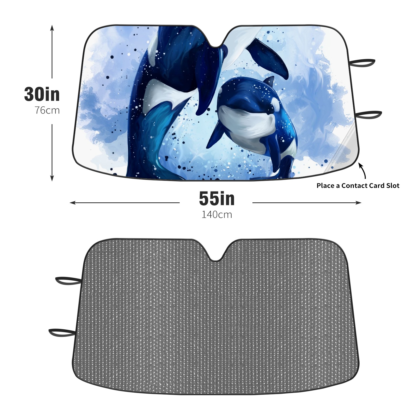 Car Windshield Sun Shade For Front Window Cute Killer Whale Watercolor Foldable Vehicle Windshield Car Sun Visor Covers Automotive Window Protector Car Camping Privacy Sun Blocker