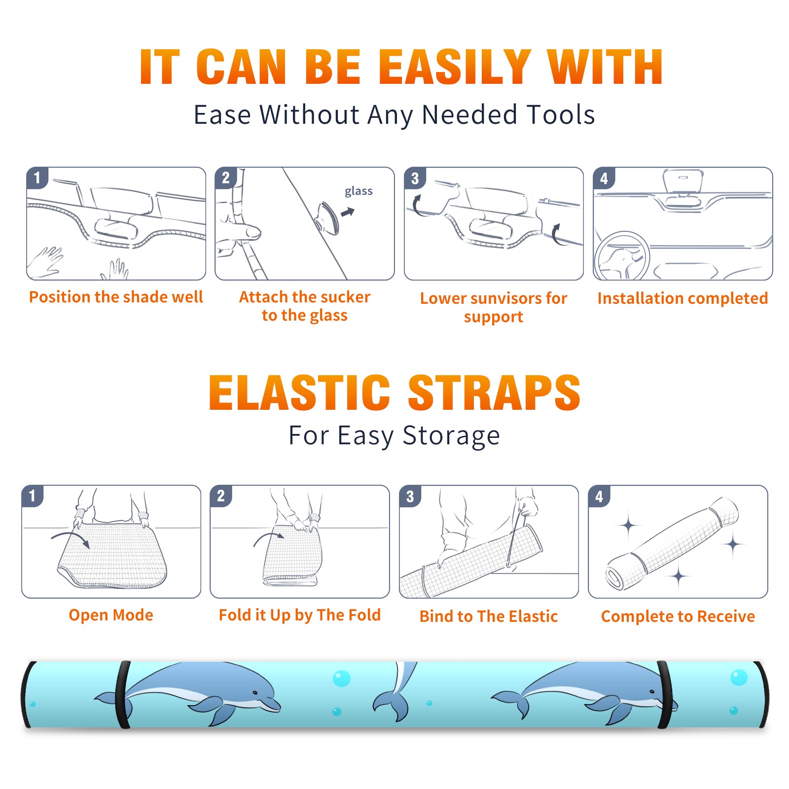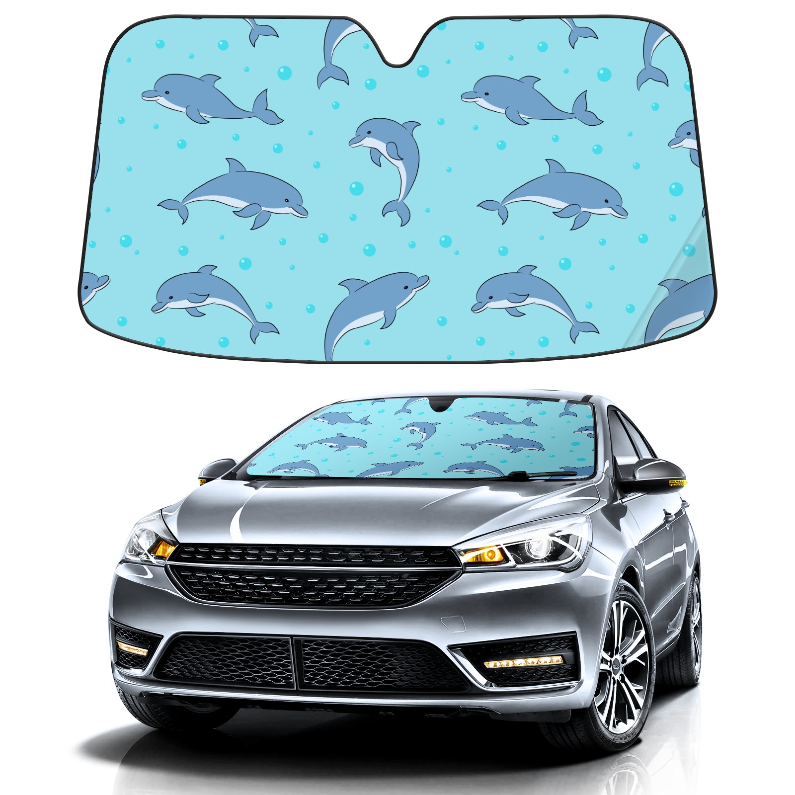 Car Windshield Sun Shade For Front Window Dolphin Bubbles Foldable Vehicle Windshield Car Sun Visor Covers Automotive Window Protector Car Camping Privacy Sun Blocker