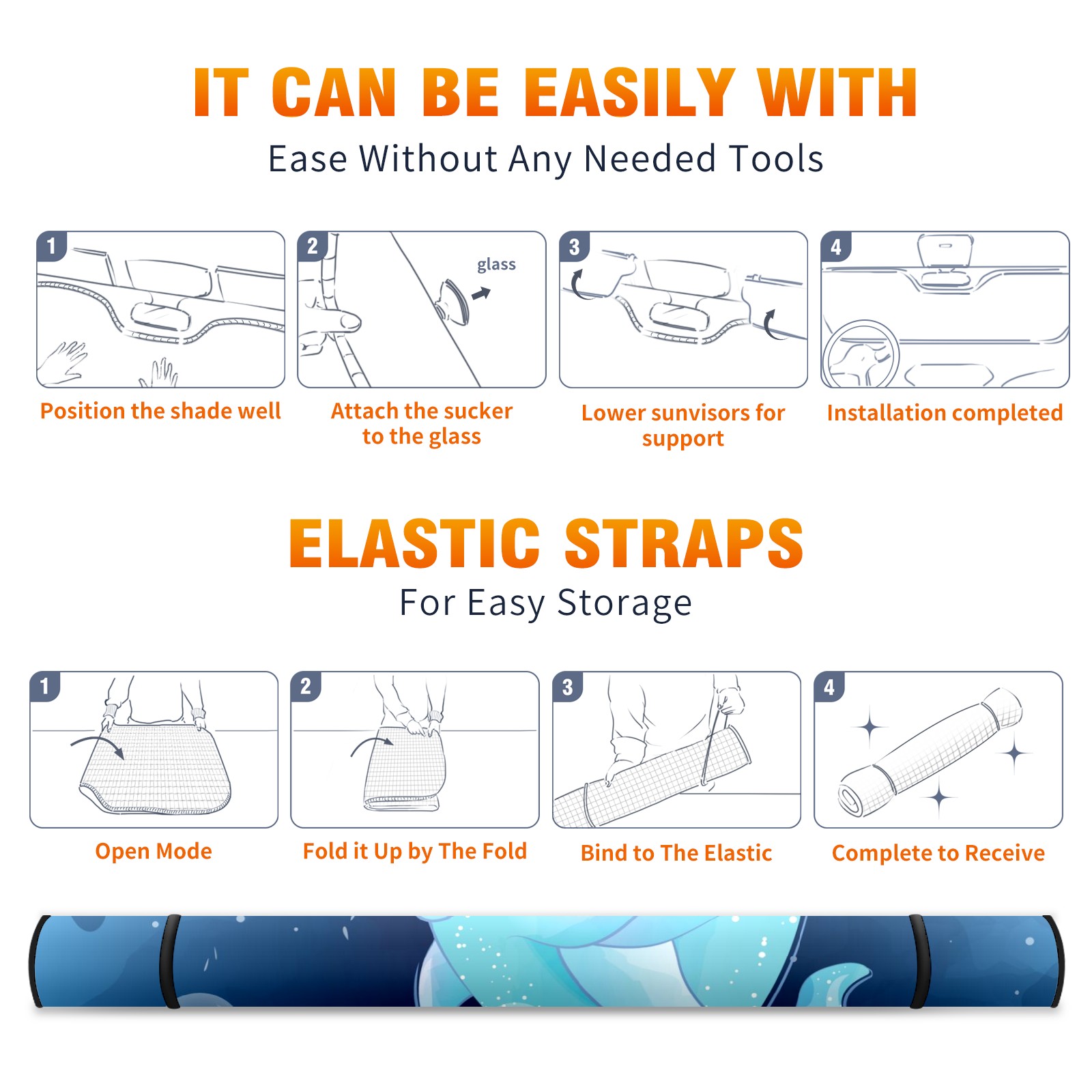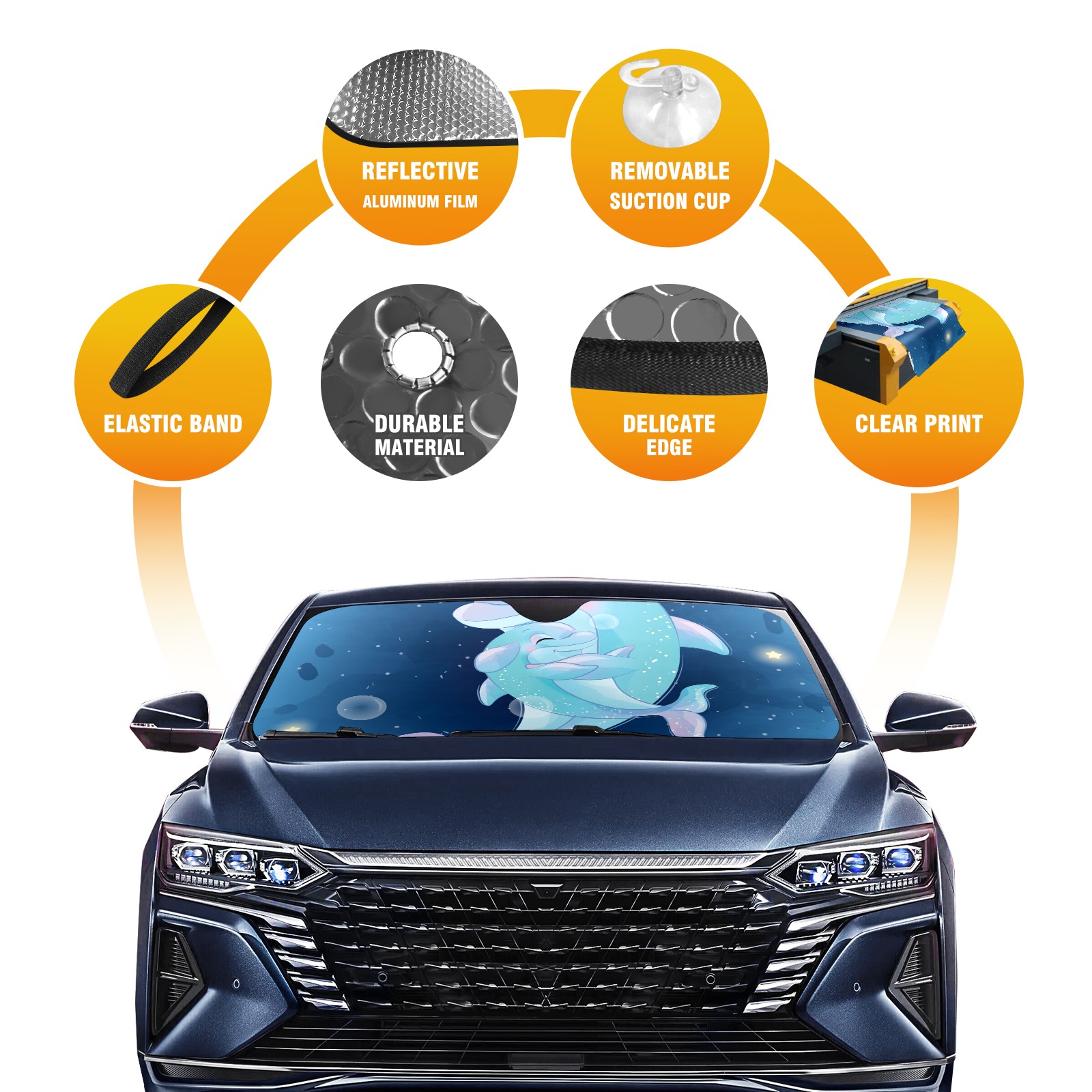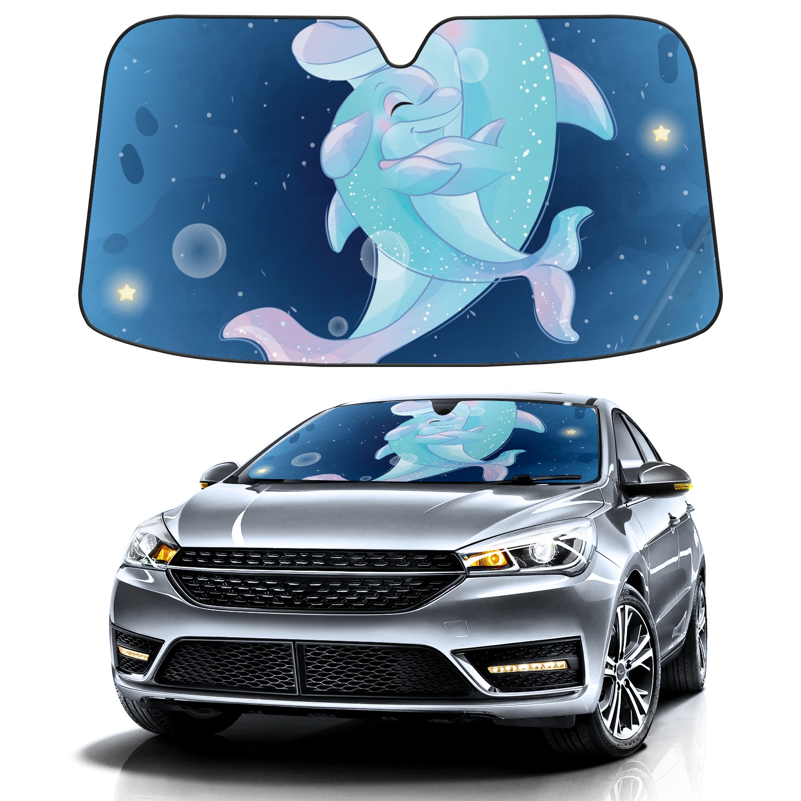 Car Windshield Sun Shade For Front Window Cute Dolphin Mother And Baby Foldable Vehicle Windshield Car Sun Visor Covers Automotive Window Protector Car Camping Privacy Sun Blocker