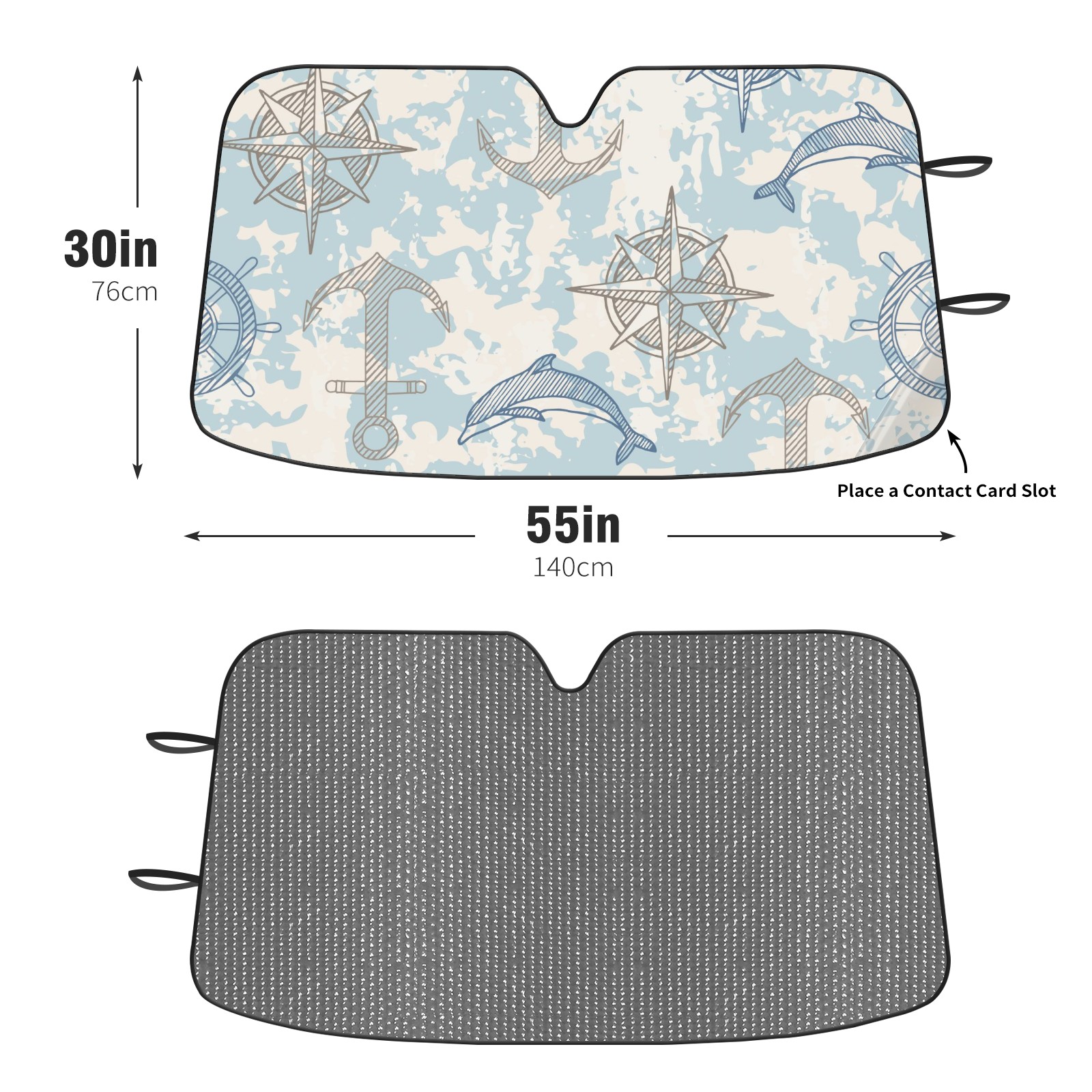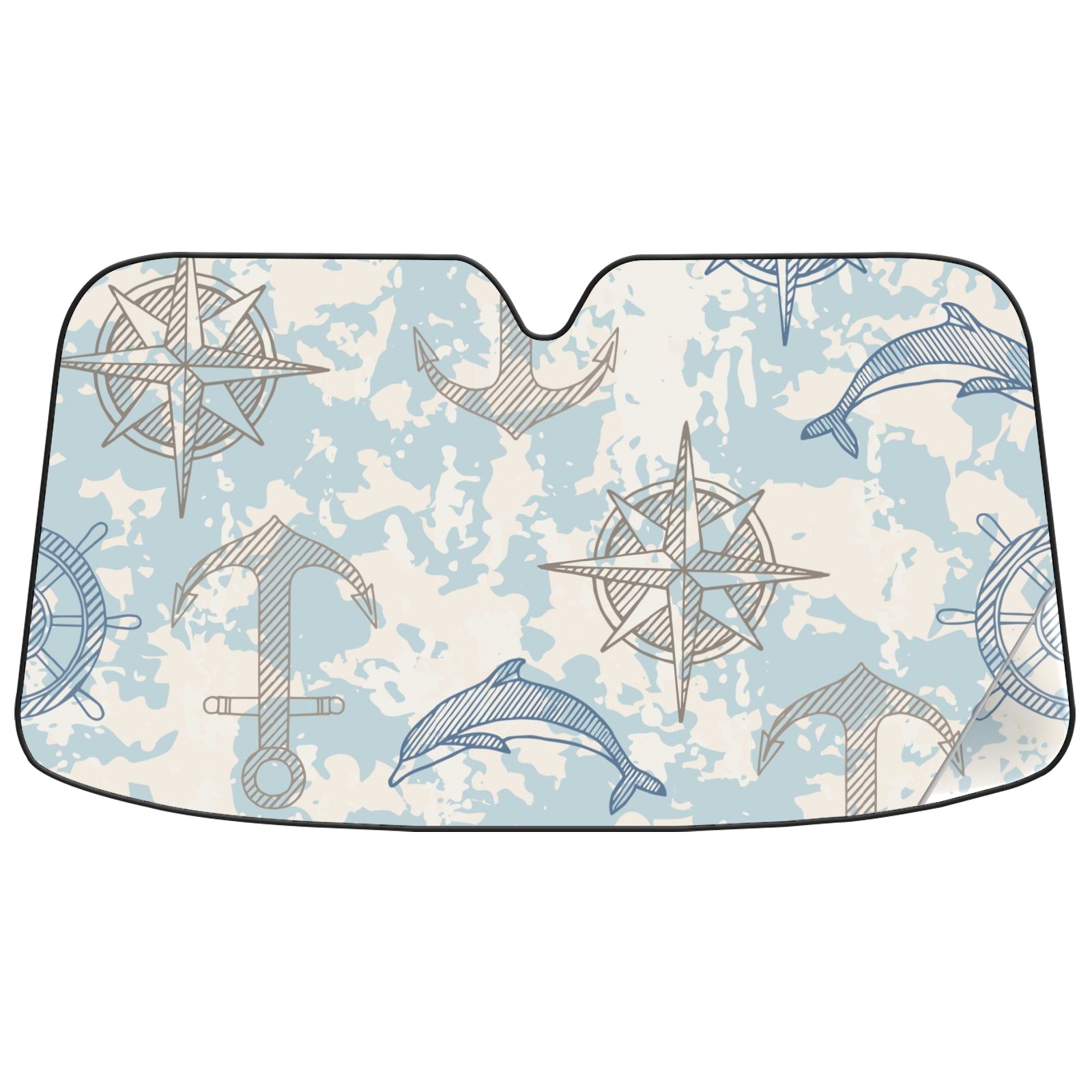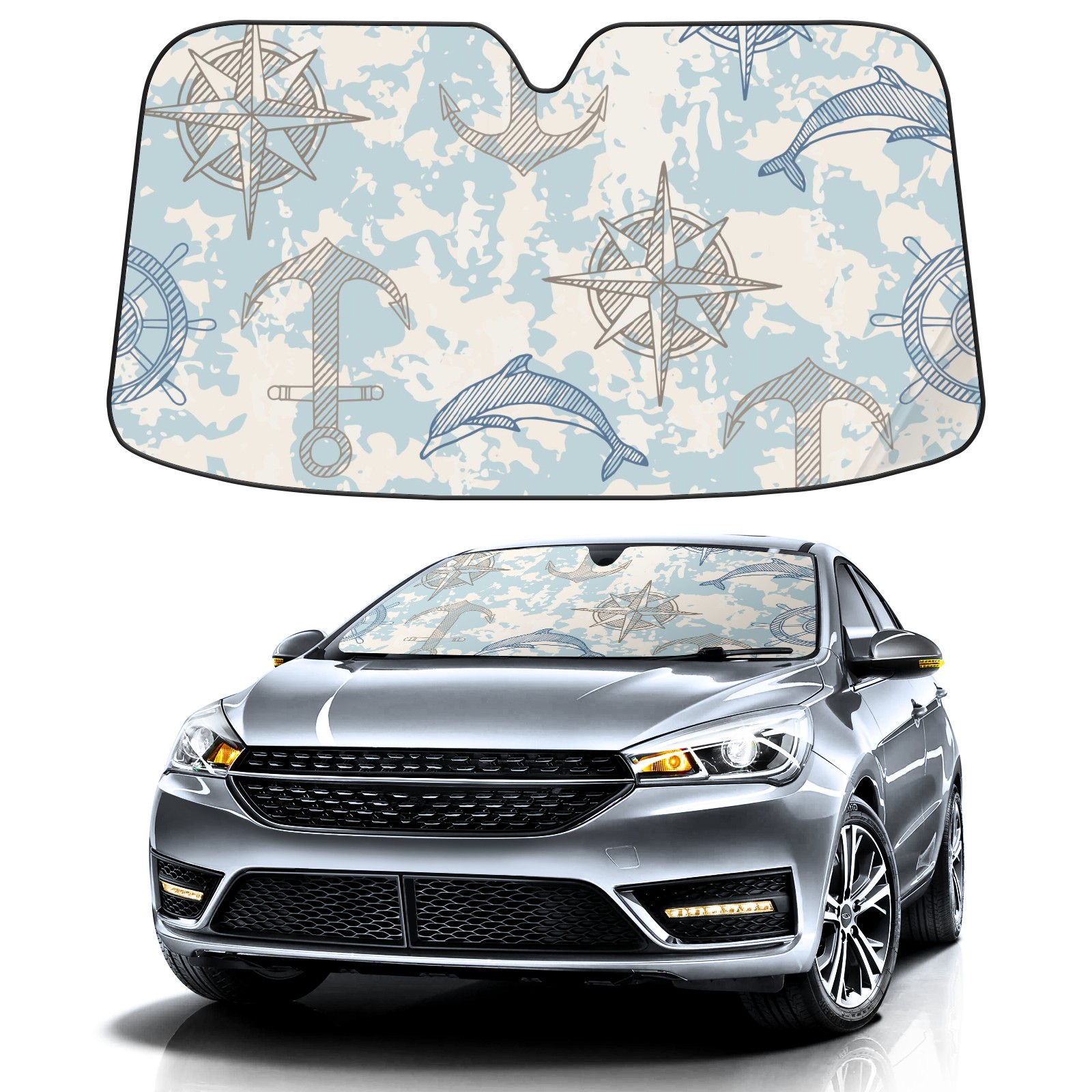 Car Windshield Sun Shade For Front Window Anchors Dolphins Hand Drawn Foldable Vehicle Windshield Car Sun Visor Covers Automotive Window Protector Car Camping Privacy Sun Blocker