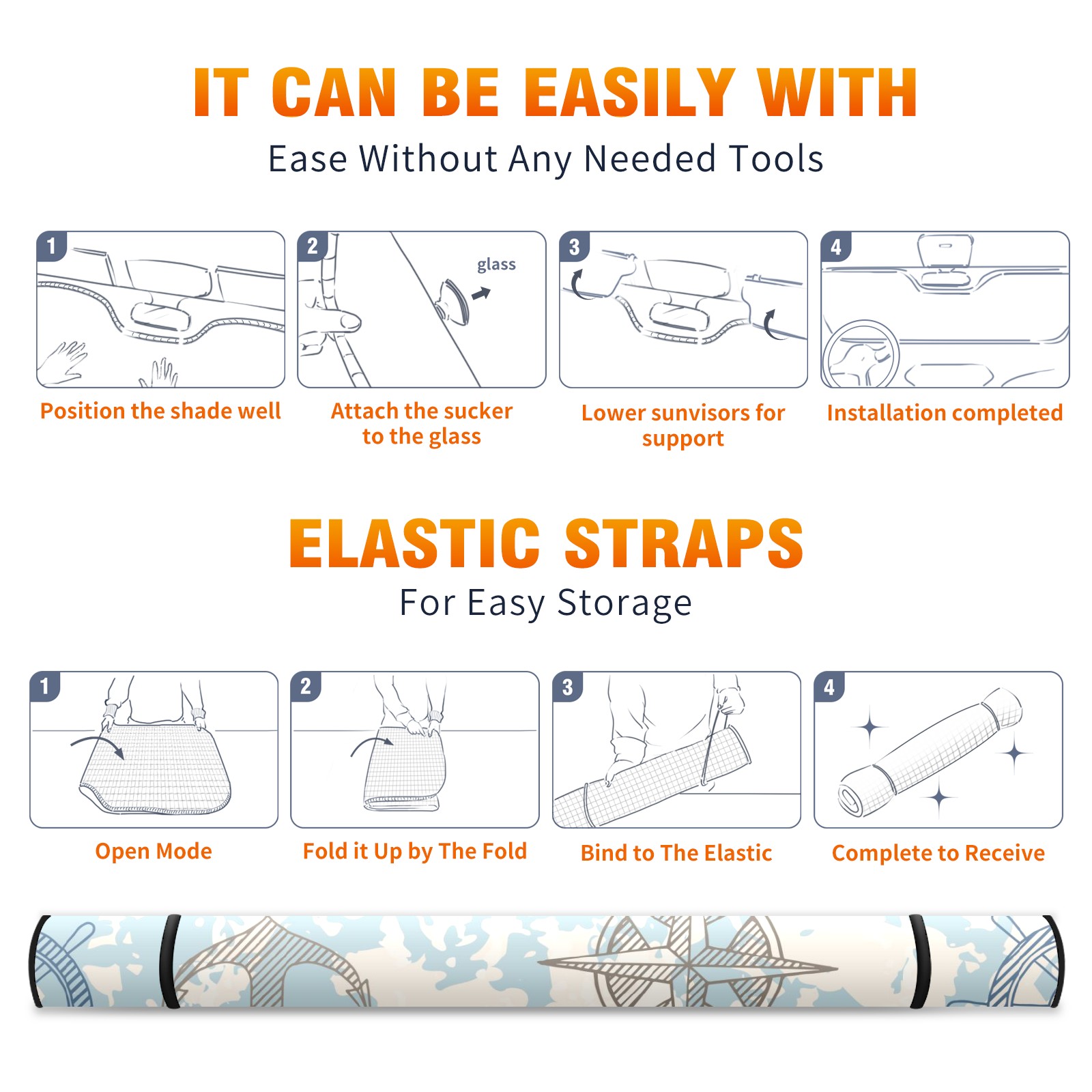 • Diameter /Size 63"L x 33.5"W Made from excellent materials which makes it sturdy and protects the car from the sun. Easy to use and pack. Makes the interior of the car cooler.You can easily stash the sunshade in the storage bag or store long term.It open and closes easy. Also the leather storage bag is durable and easy to put the umbrella back into.This windshield sunshade provides complete coverage and keeps your car interior cool under direct sun. It is easy to open and position under the windshield and around the rear-view mirror. Makes Your Car Easy To Identify, Perfect For Finding Your Car In Crowded Parking Lots And Garages.Great Choice: It Is A Great Gift For Dad, Boyfriend, Brother, Brother And Uncle, Friends, Classmates, Family And So On. Notice: Due To Difference Computer Monitors, The Color Maybe Slightly Different From Picture. As Different Measurement Methods, Measurement Data Will Float Within 2%.I Hope You Understand. If You Have Any Question About The Item Please Do Not Hesitate To Contact Us Immediately And We Will Give You A Satisfactory Reply Within 24 Hours.