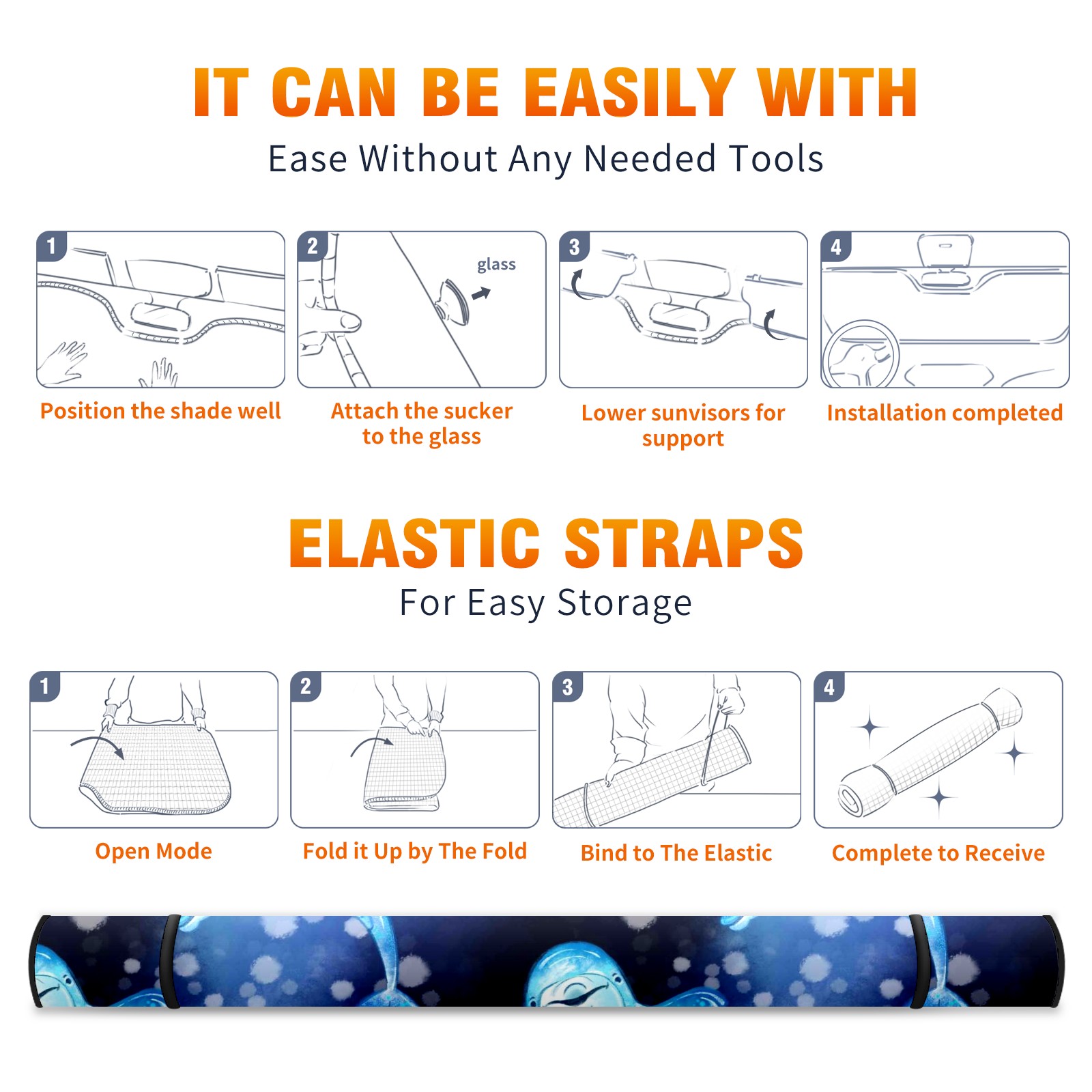 • Diameter /Size 63"L x 33.5"W Made from excellent materials which makes it sturdy and protects the car from the sun. Easy to use and pack. Makes the interior of the car cooler.You can easily stash the sunshade in the storage bag or store long term.It open and closes easy. Also the leather storage bag is durable and easy to put the umbrella back into.This windshield sunshade provides complete coverage and keeps your car interior cool under direct sun. It is easy to open and position under the windshield and around the rear-view mirror. Makes Your Car Easy To Identify, Perfect For Finding Your Car In Crowded Parking Lots And Garages.Great Choice: It Is A Great Gift For Dad, Boyfriend, Brother, Brother And Uncle, Friends, Classmates, Family And So On. Notice: Due To Difference Computer Monitors, The Color Maybe Slightly Different From Picture. As Different Measurement Methods, Measurement Data Will Float Within 2%.I Hope You Understand. If You Have Any Question About The Item Please Do Not Hesitate To Contact Us Immediately And We Will Give You A Satisfactory Reply Within 24 Hours.