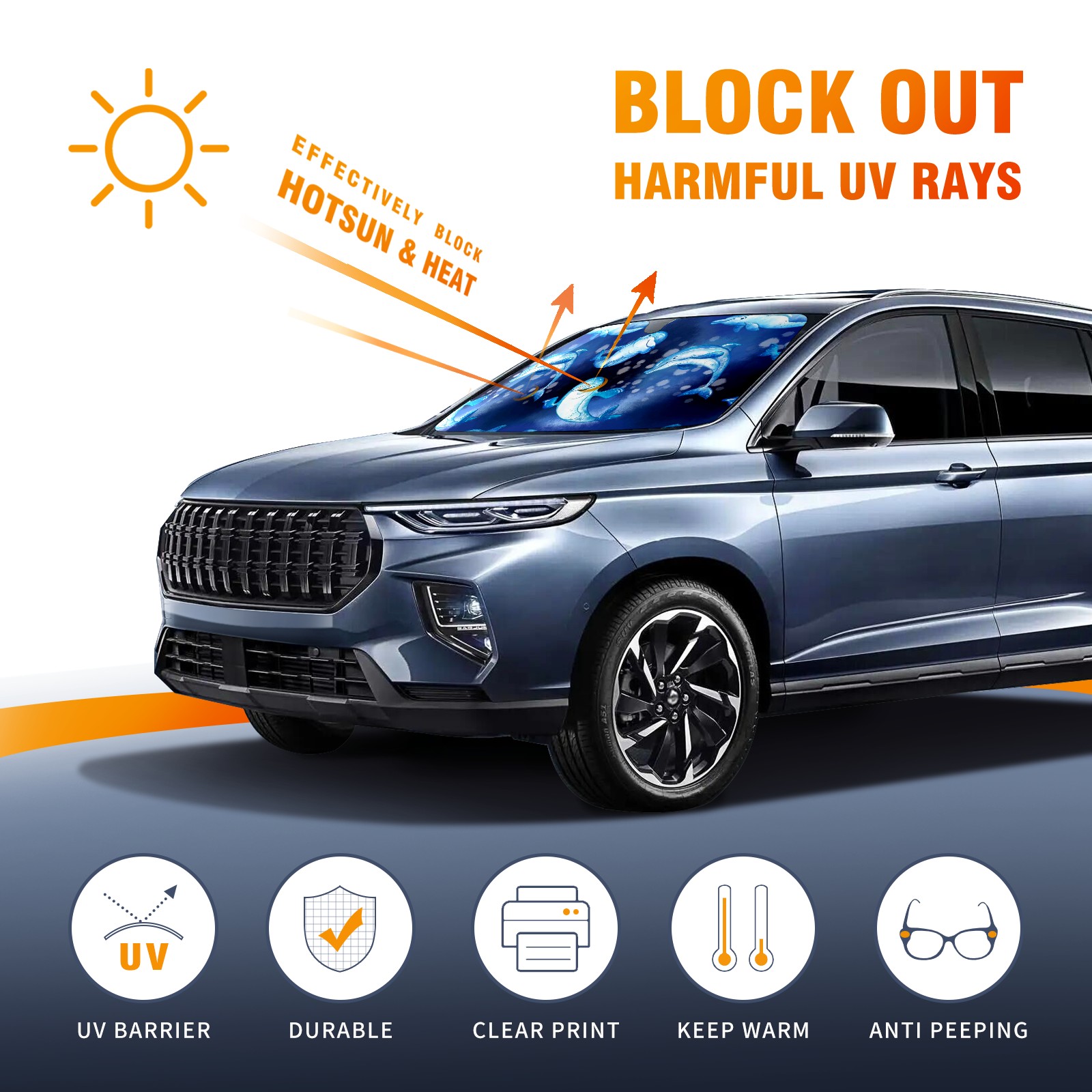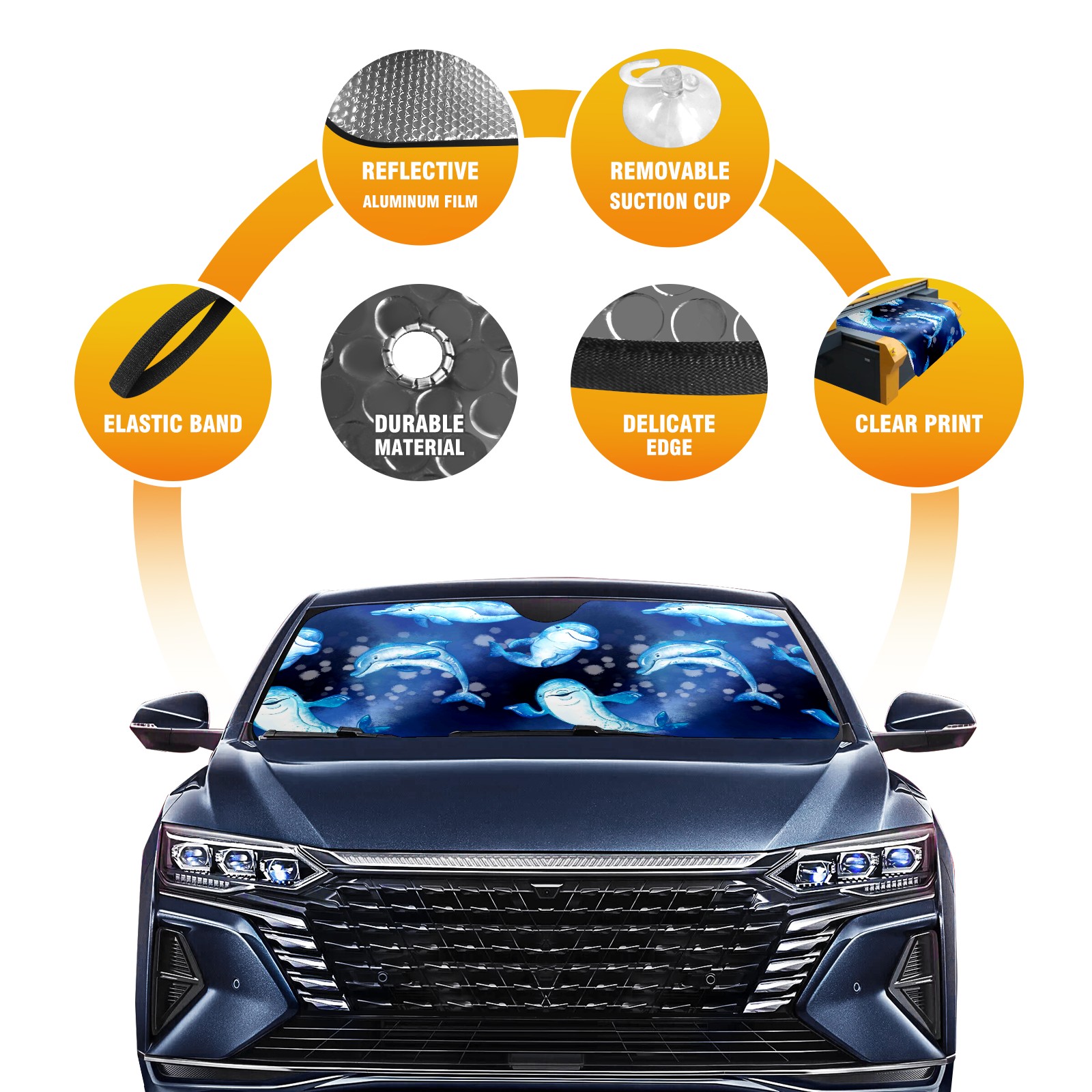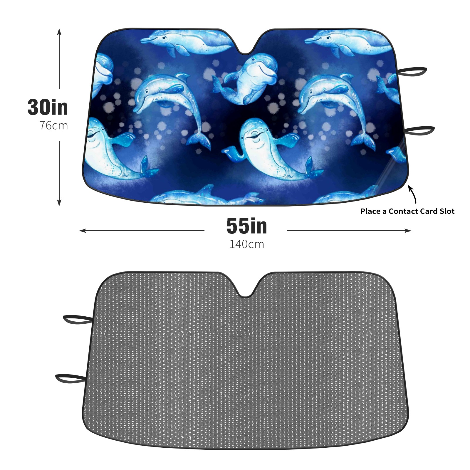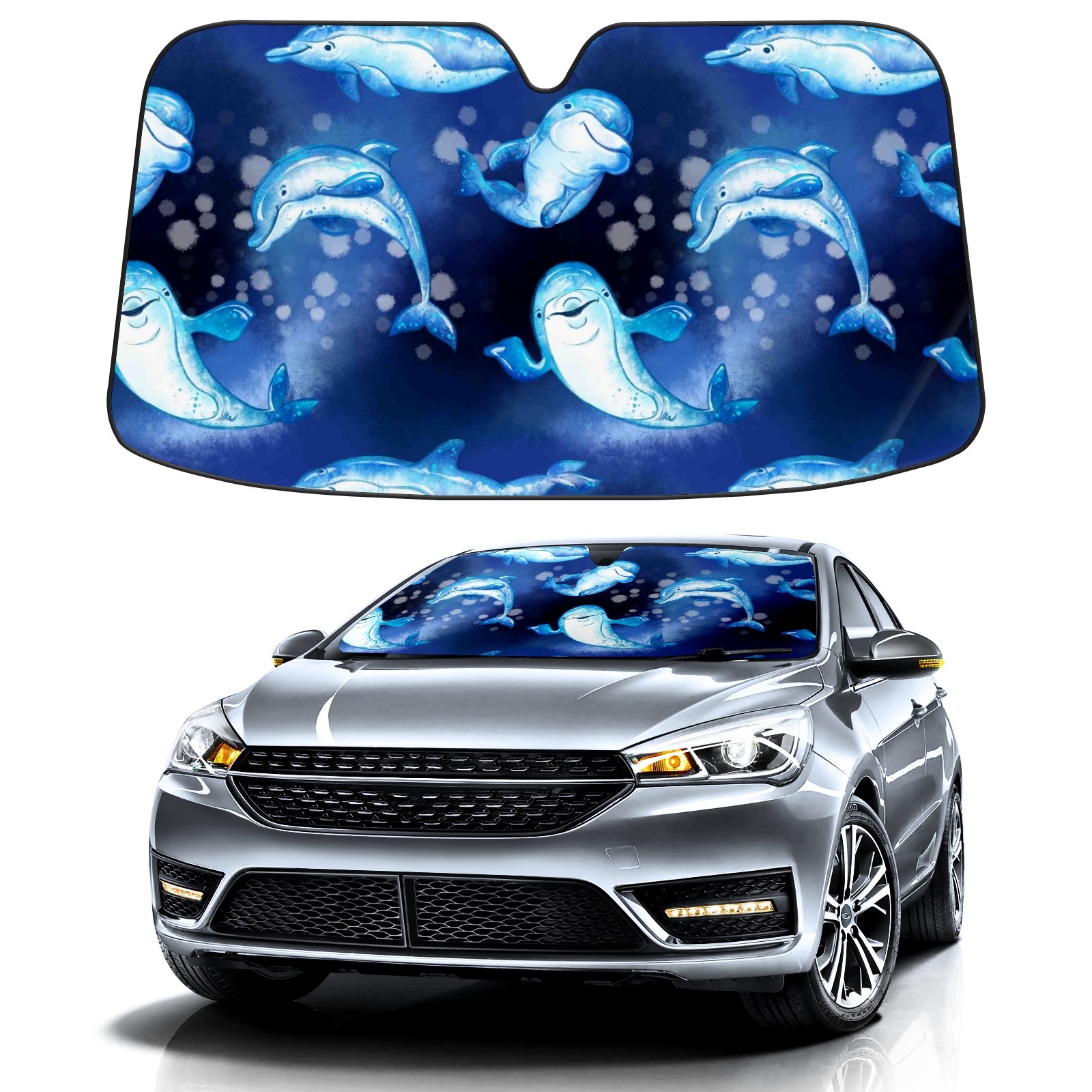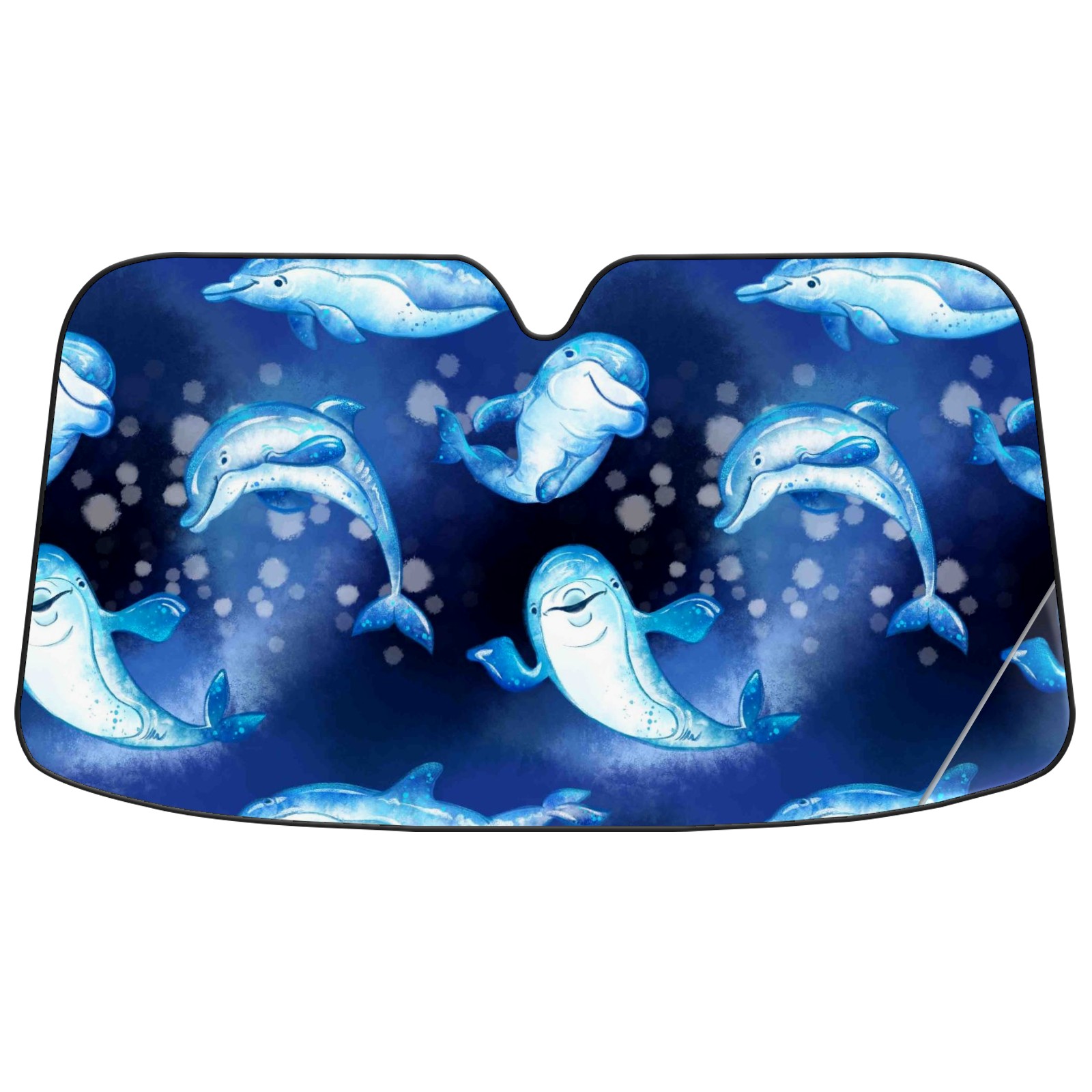 Car Windshield Sun Shade For Front Window Blue Dolphin Sea Foldable Vehicle Windshield Car Sun Visor Covers Automotive Window Protector Car Camping Privacy Sun Blocker