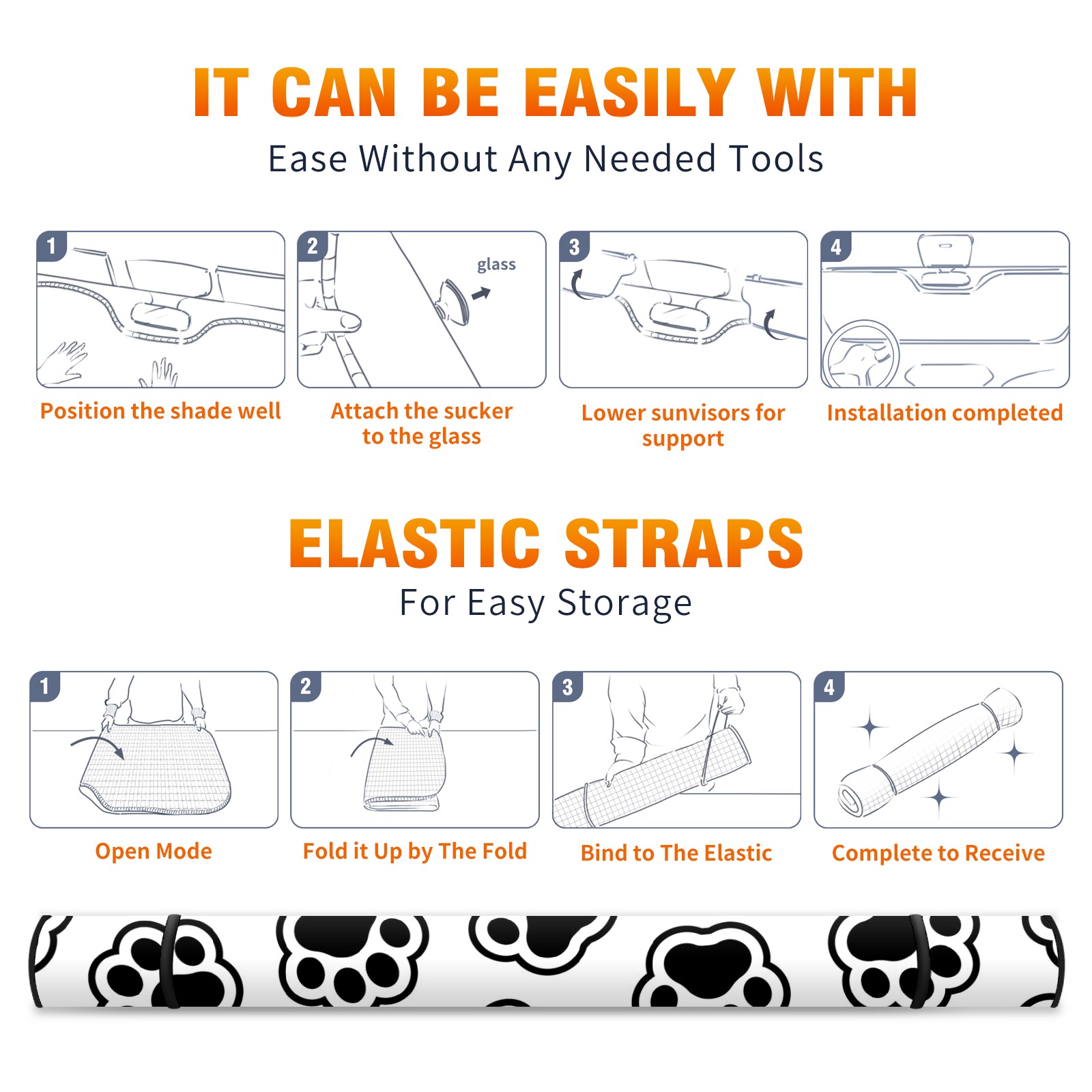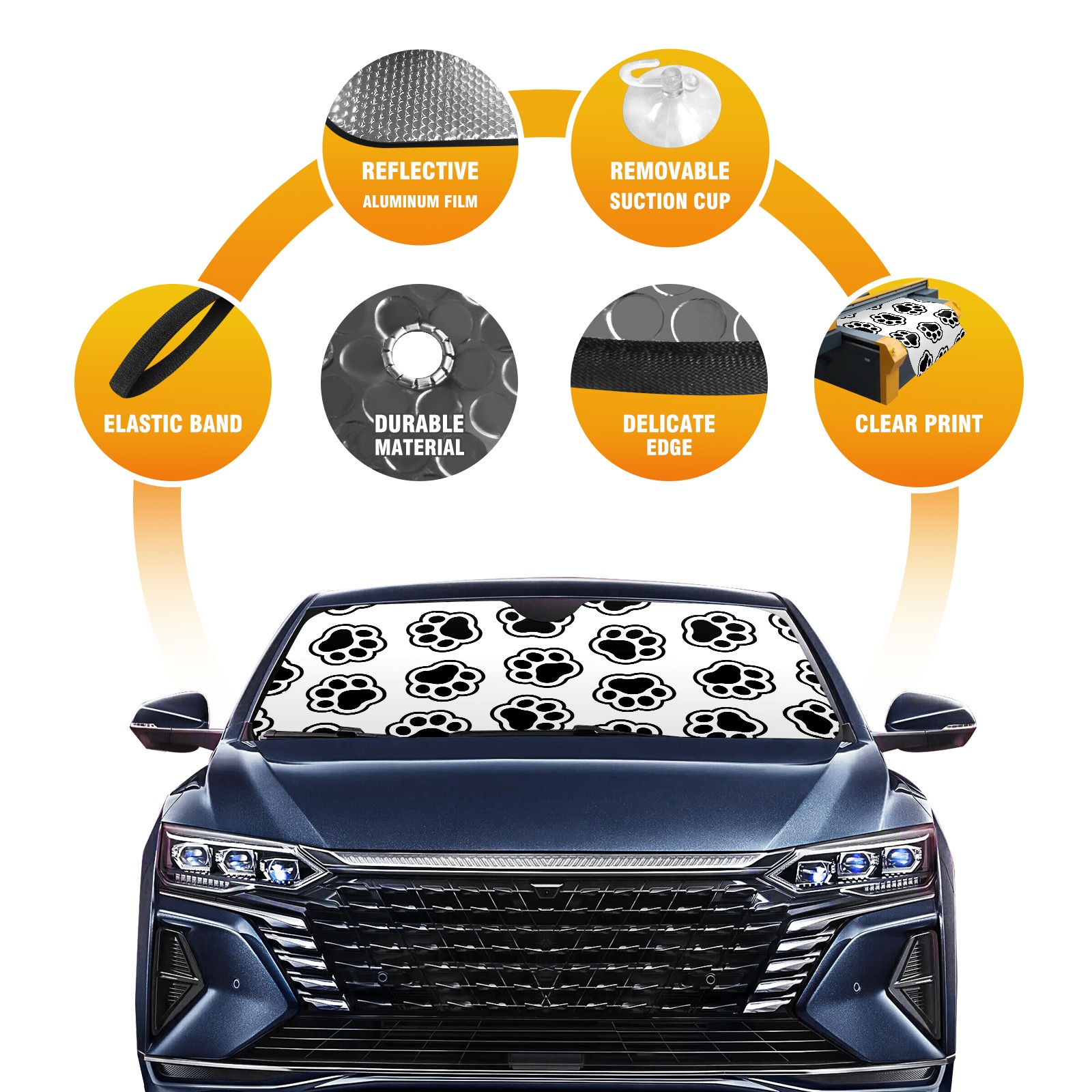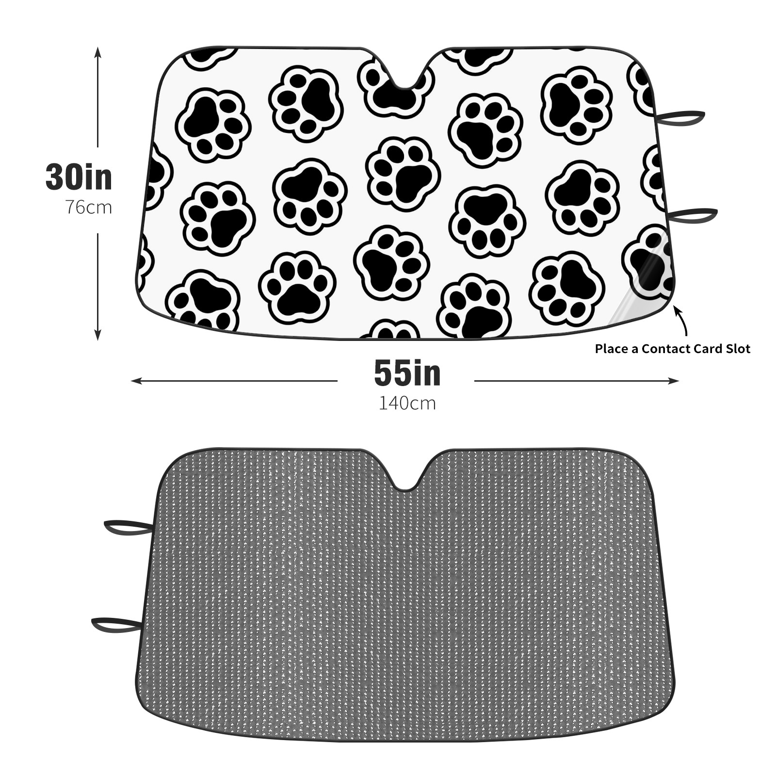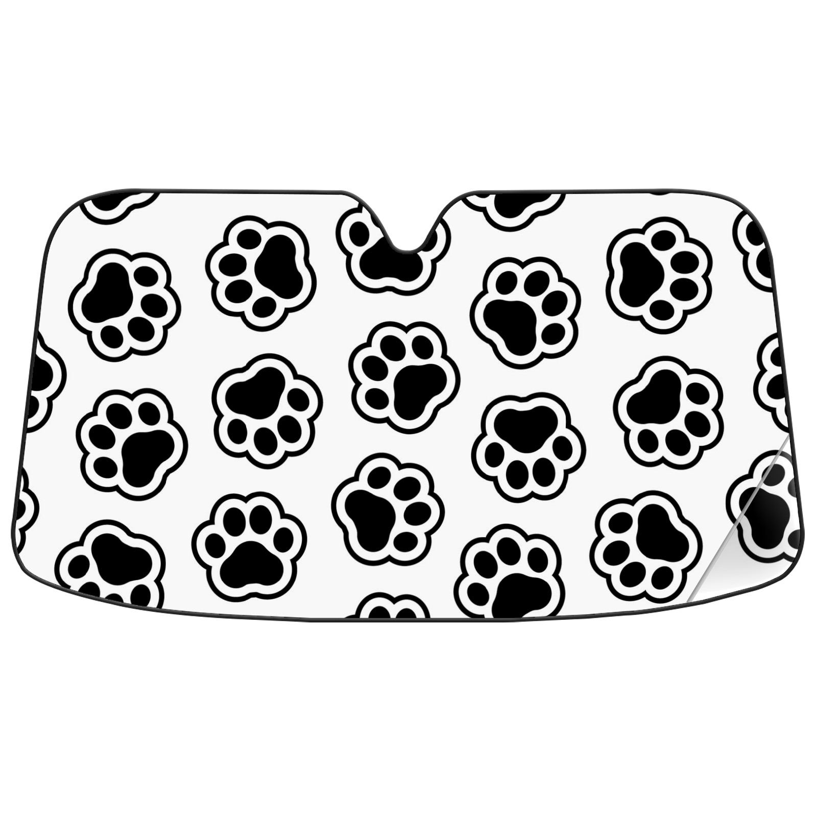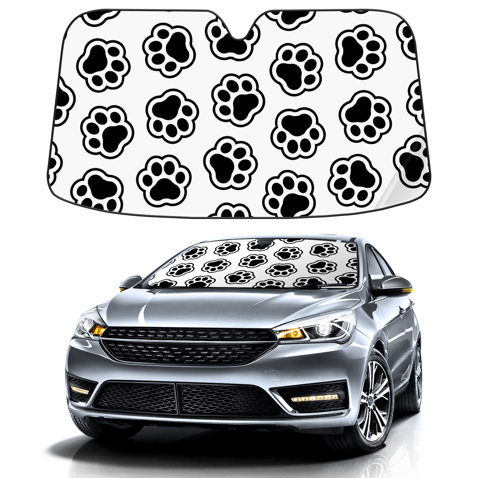 Car Windshield Sun Shade For Front Window Black And White Dog Paw Print Foldable Vehicle Windshield Car Sun Visor Covers Automotive Window Protector Car Camping Privacy Sun Blocker