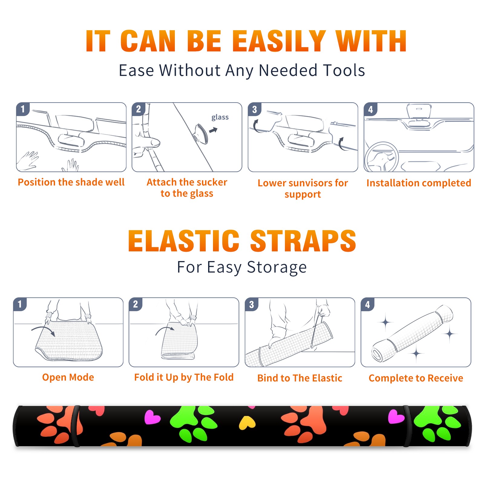 Car Windshield Sun Shade For Front Window Cartoon Dog Cat Paw Print Foldable Vehicle Windshield Car Sun Visor Covers Automotive Window Protector Car Camping Privacy Sun Blocker
