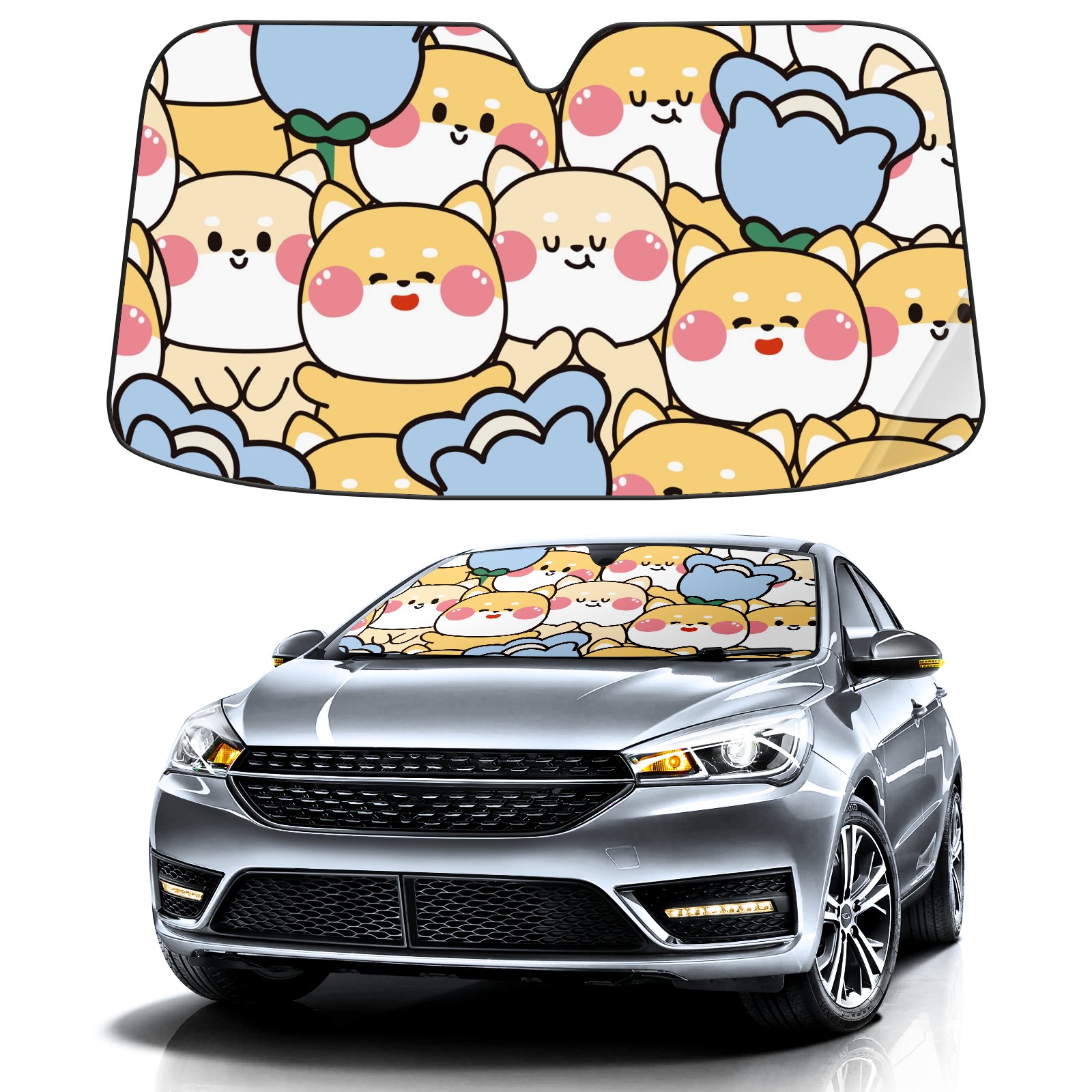 Car Windshield Sun Shade For Front Window Kawaii Dog Flower Foldable Vehicle Windshield Car Sun Visor Covers Automotive Window Protector Car Camping Privacy Sun Blocker