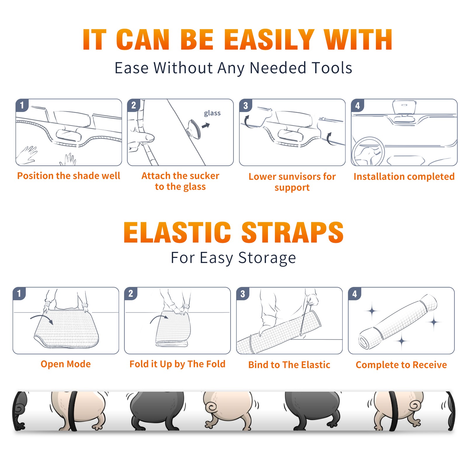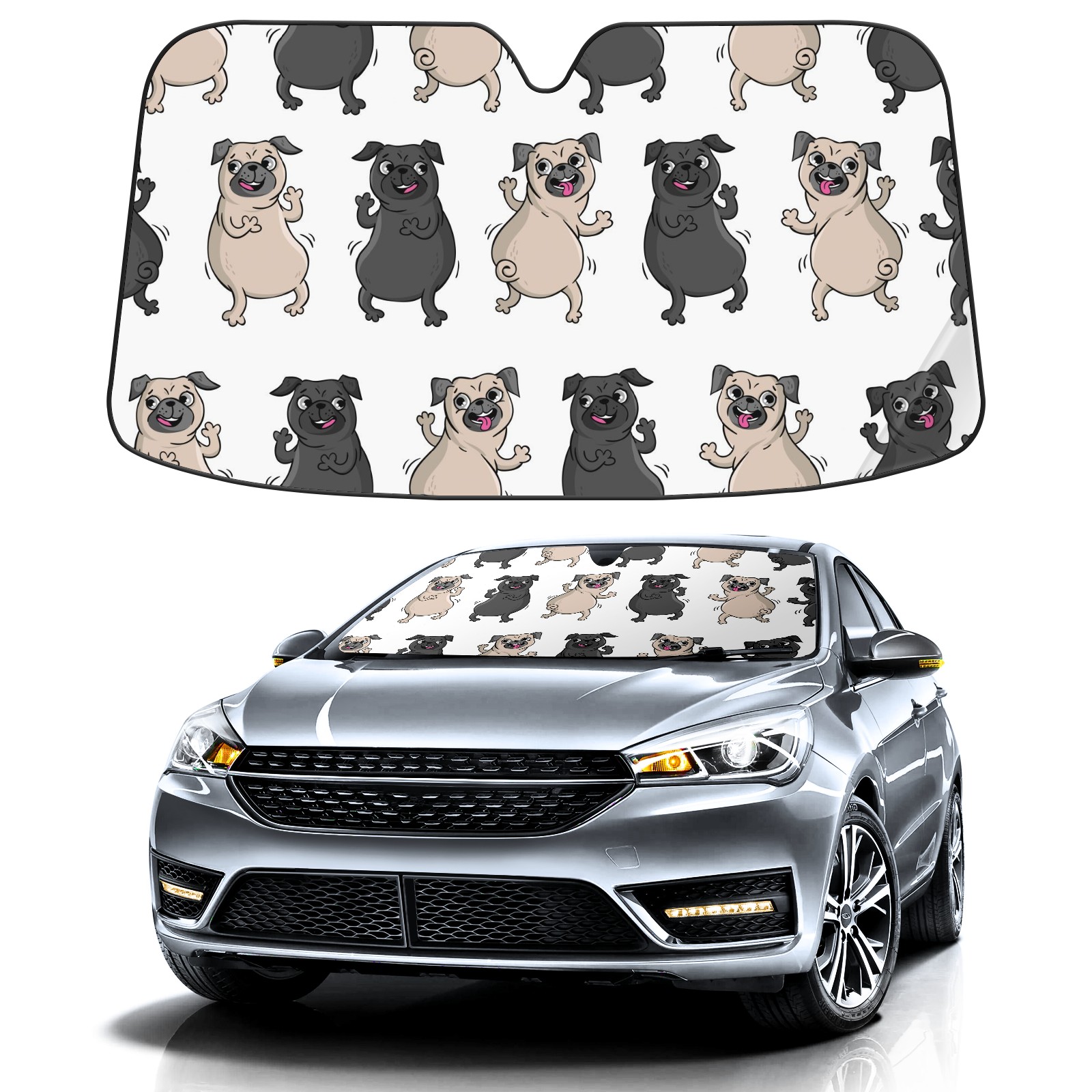 Car Windshield Sun Shade For Front Window Funny Dogs Dancing Pugs Foldable Vehicle Windshield Car Sun Visor Covers Automotive Window Protector Car Camping Privacy Sun Blocker