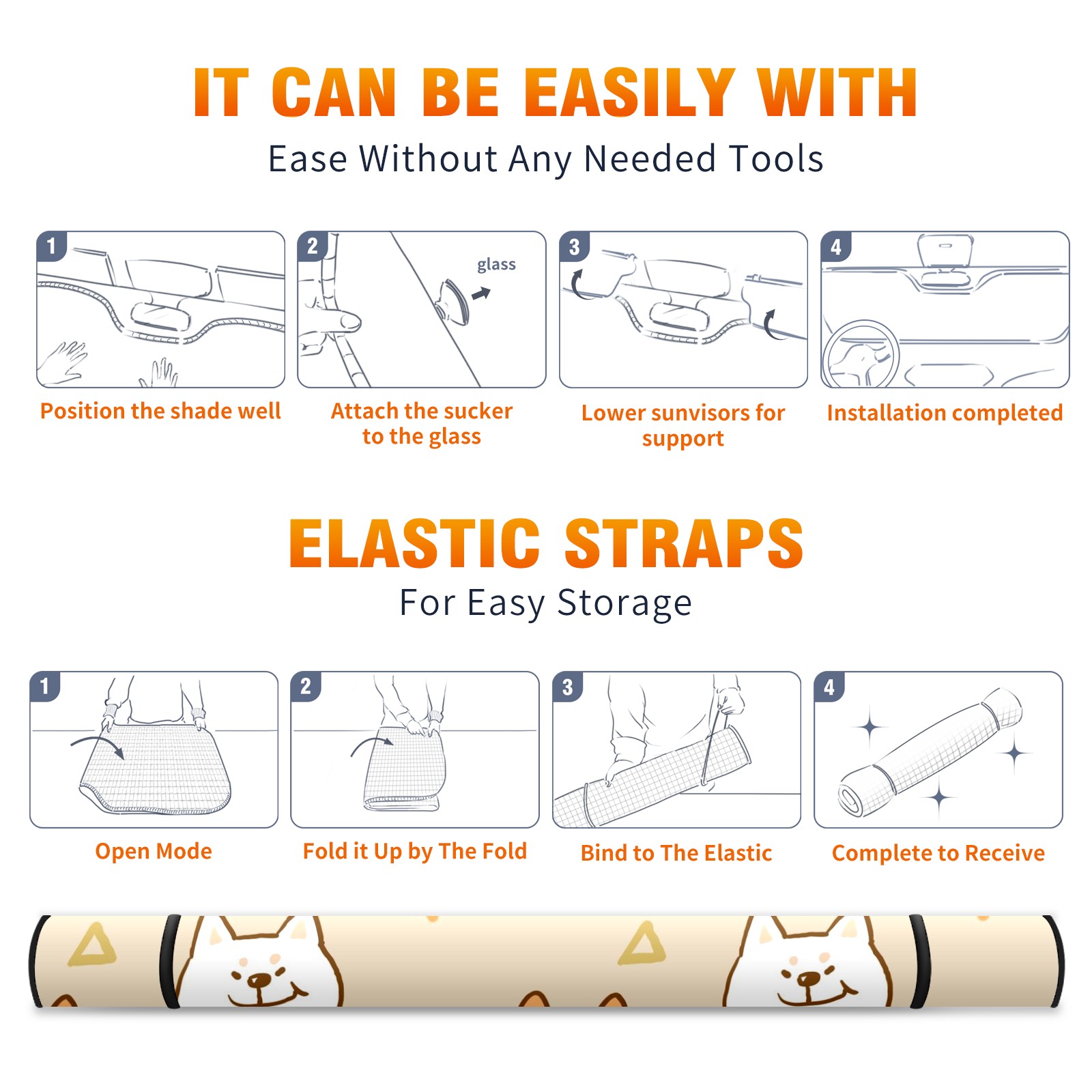 Car Windshield Sun Shade For Front Window Cute Shiba Inu Dog On Brown Background Foldable Vehicle Windshield Car Sun Visor Covers Automotive Window Protector Car Camping Privacy Sun Blocker