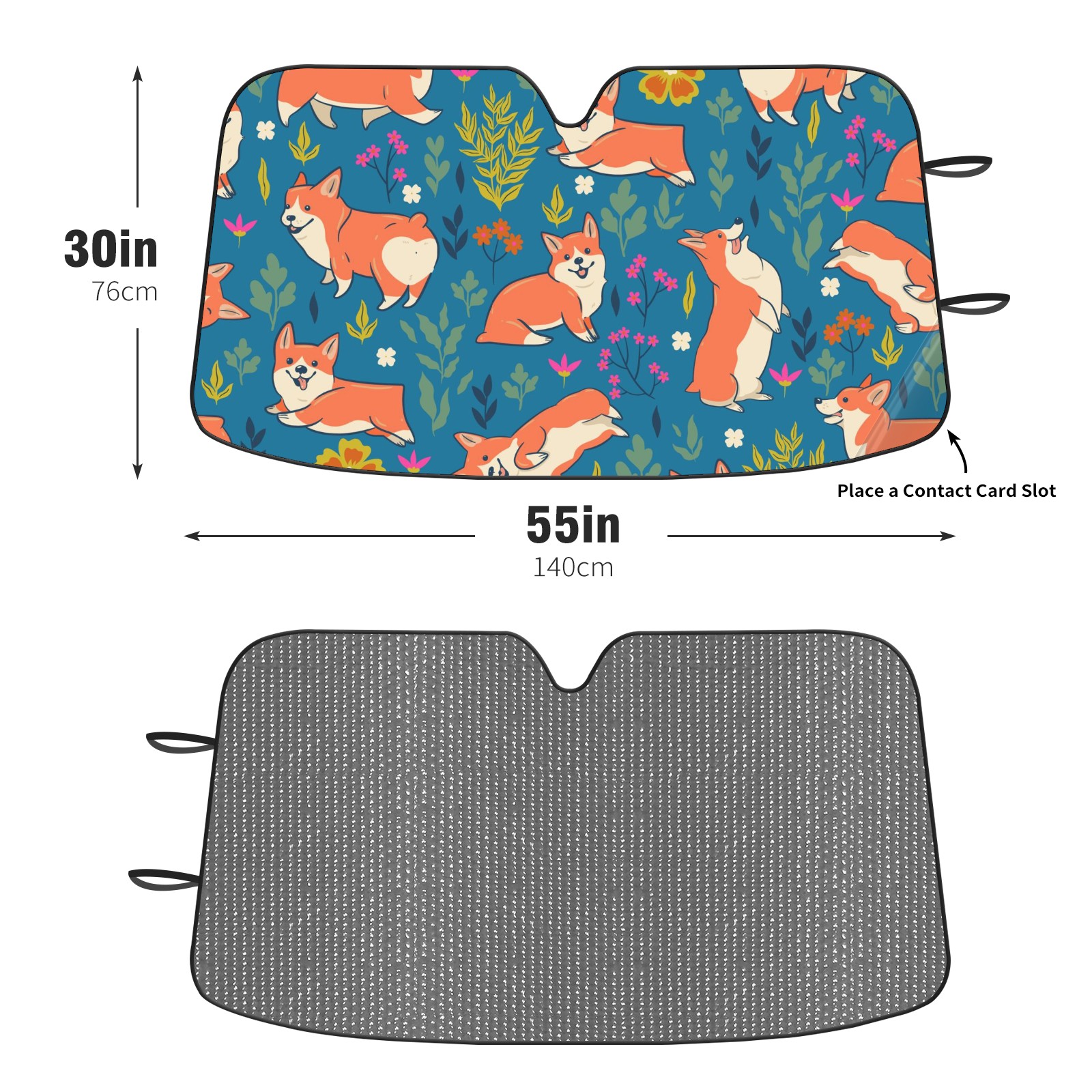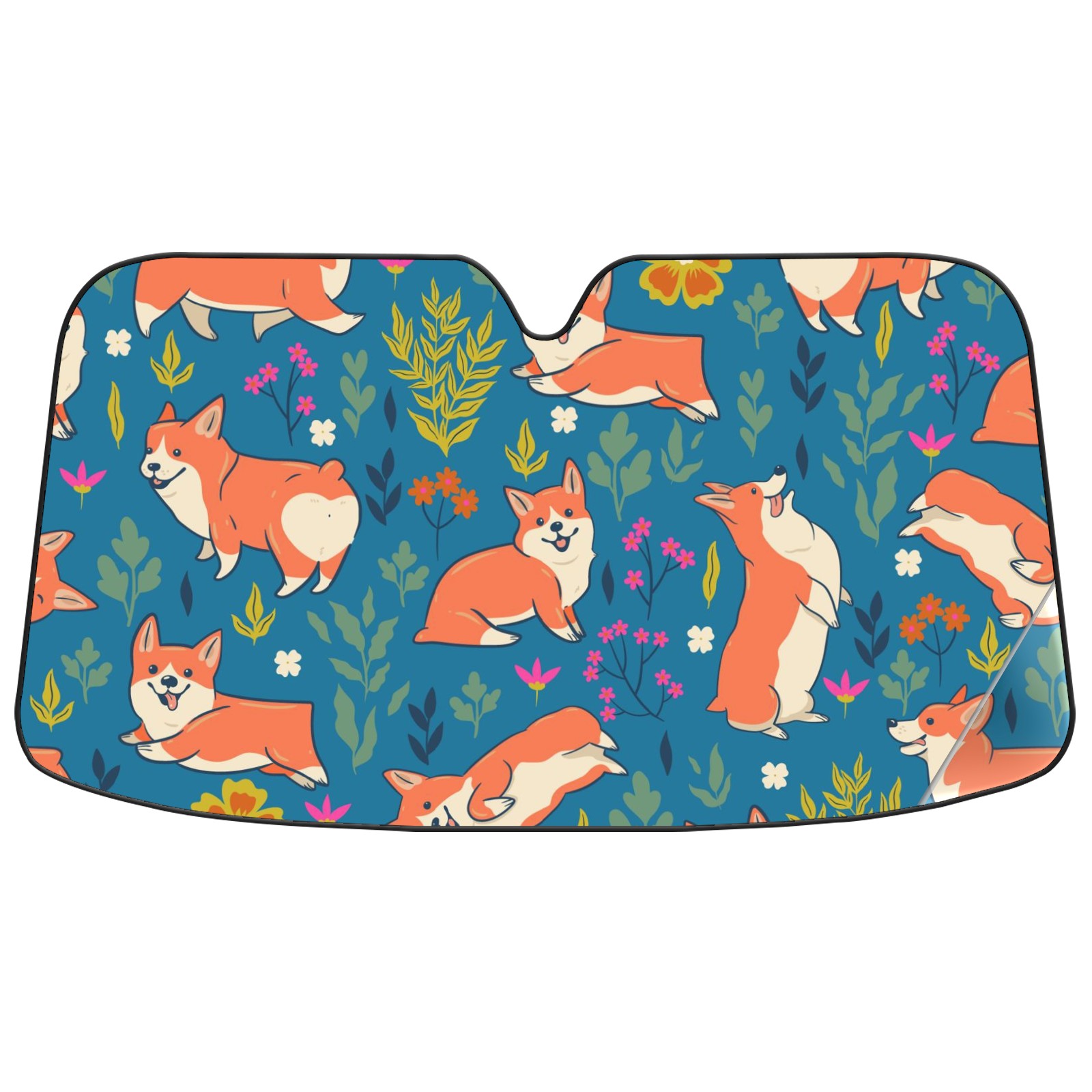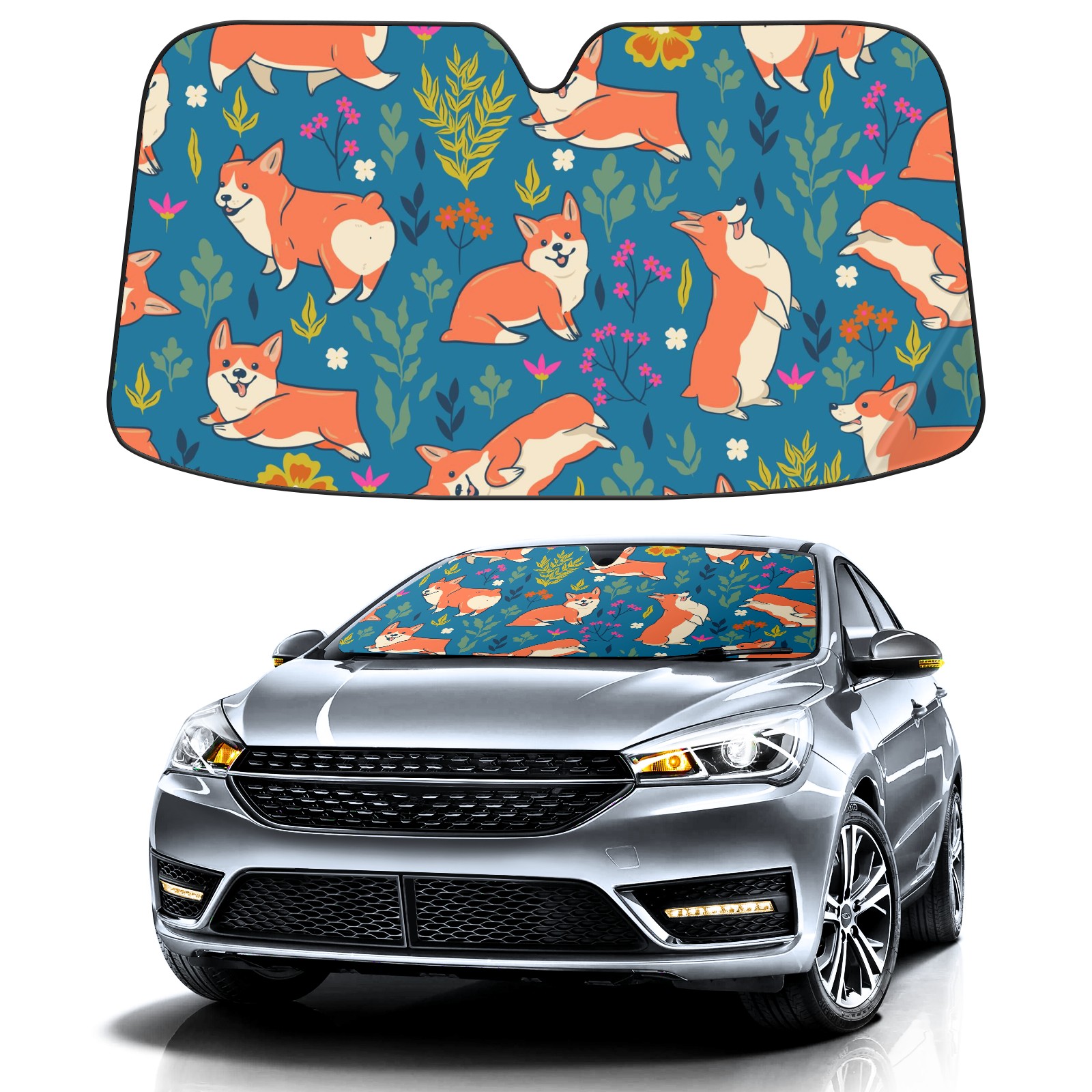 Car Windshield Sun Shade For Front Window Cute Corgi Dog And Flower Foldable Vehicle Windshield Car Sun Visor Covers Automotive Window Protector Car Camping Privacy Sun Blocker