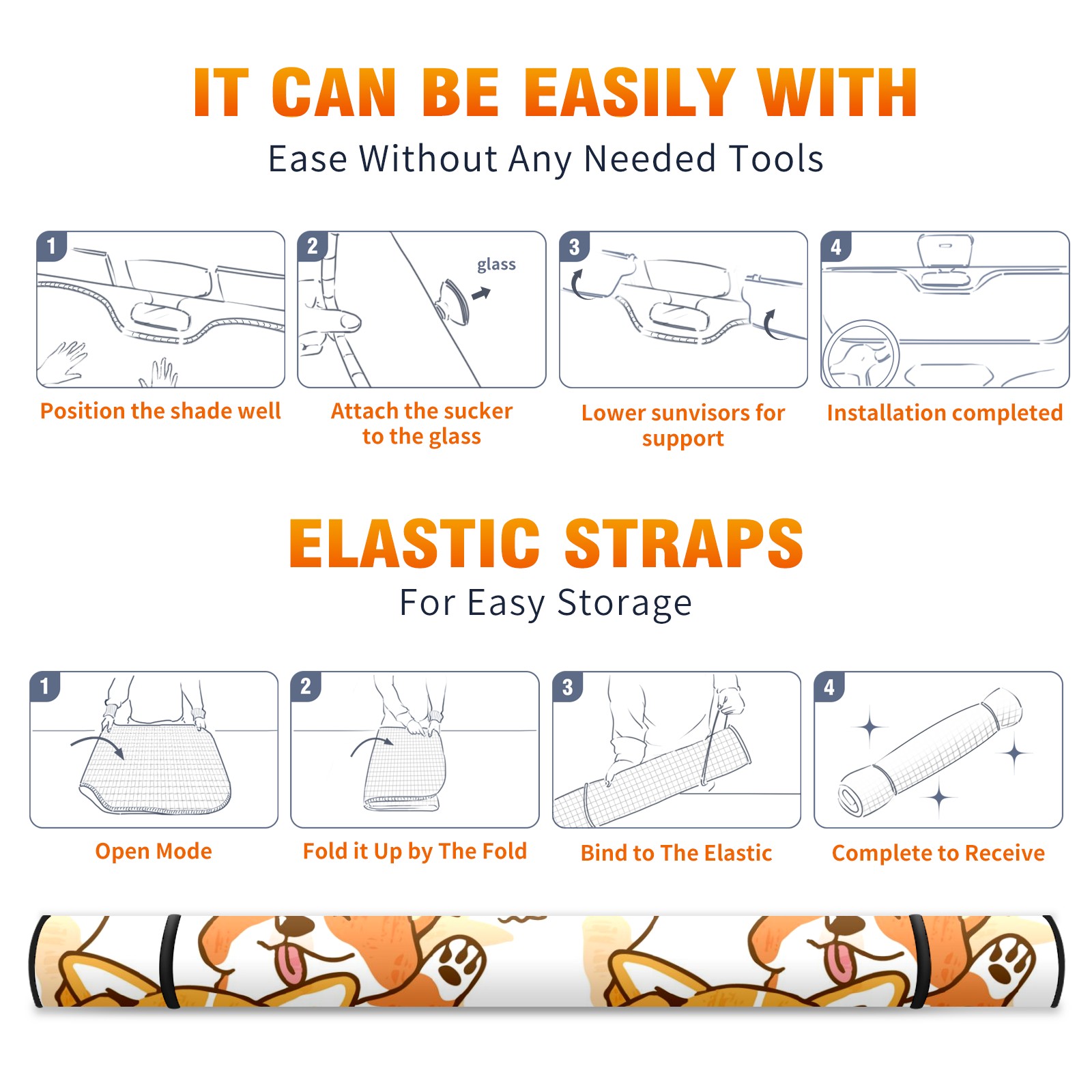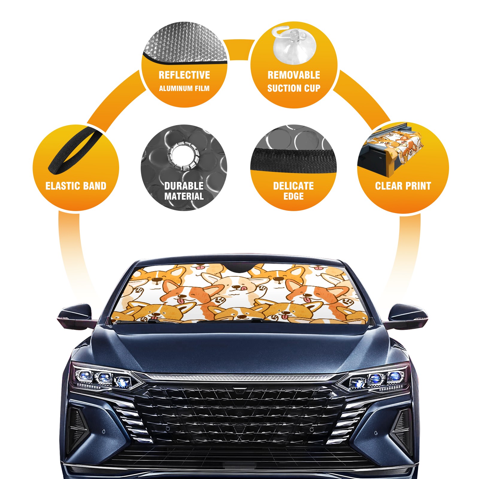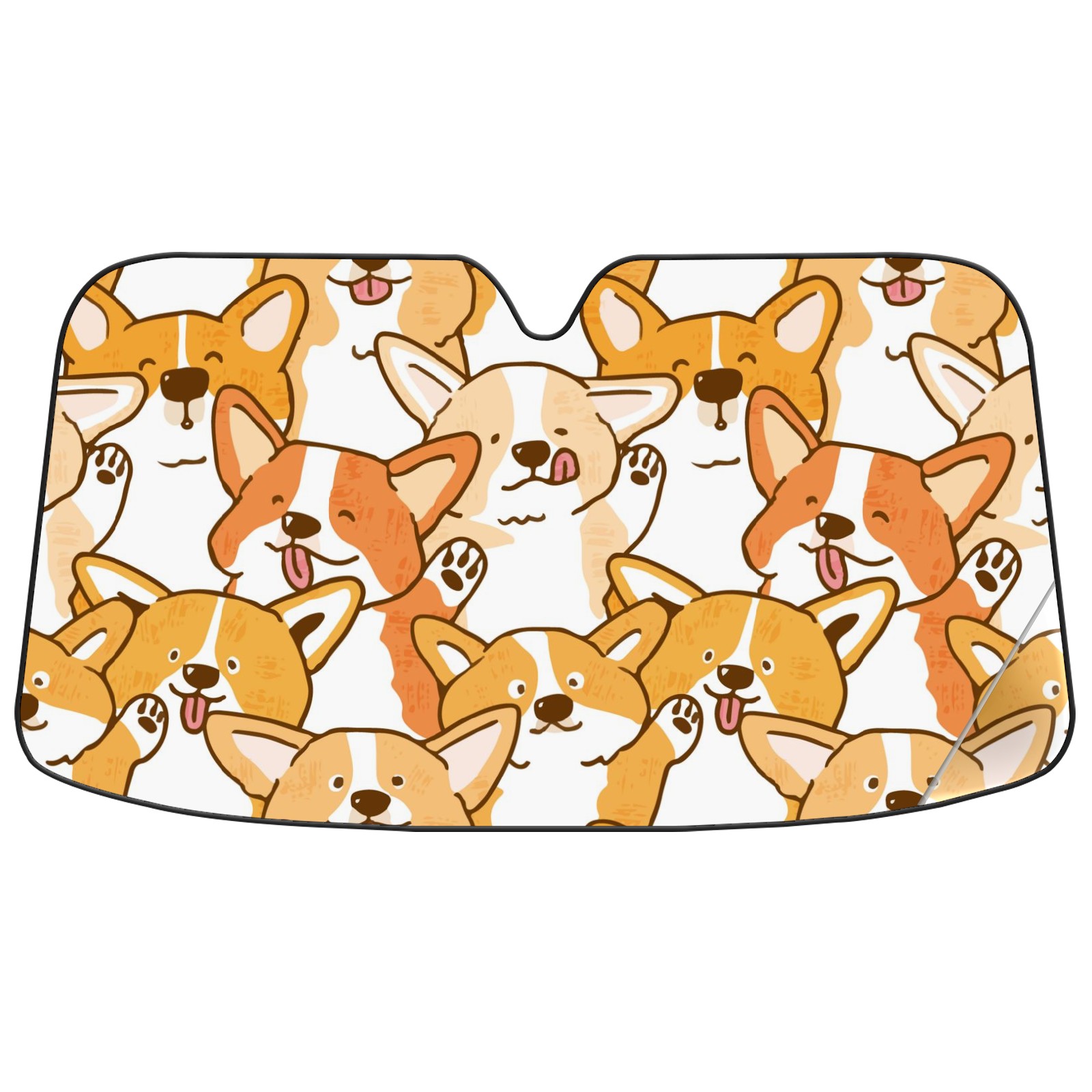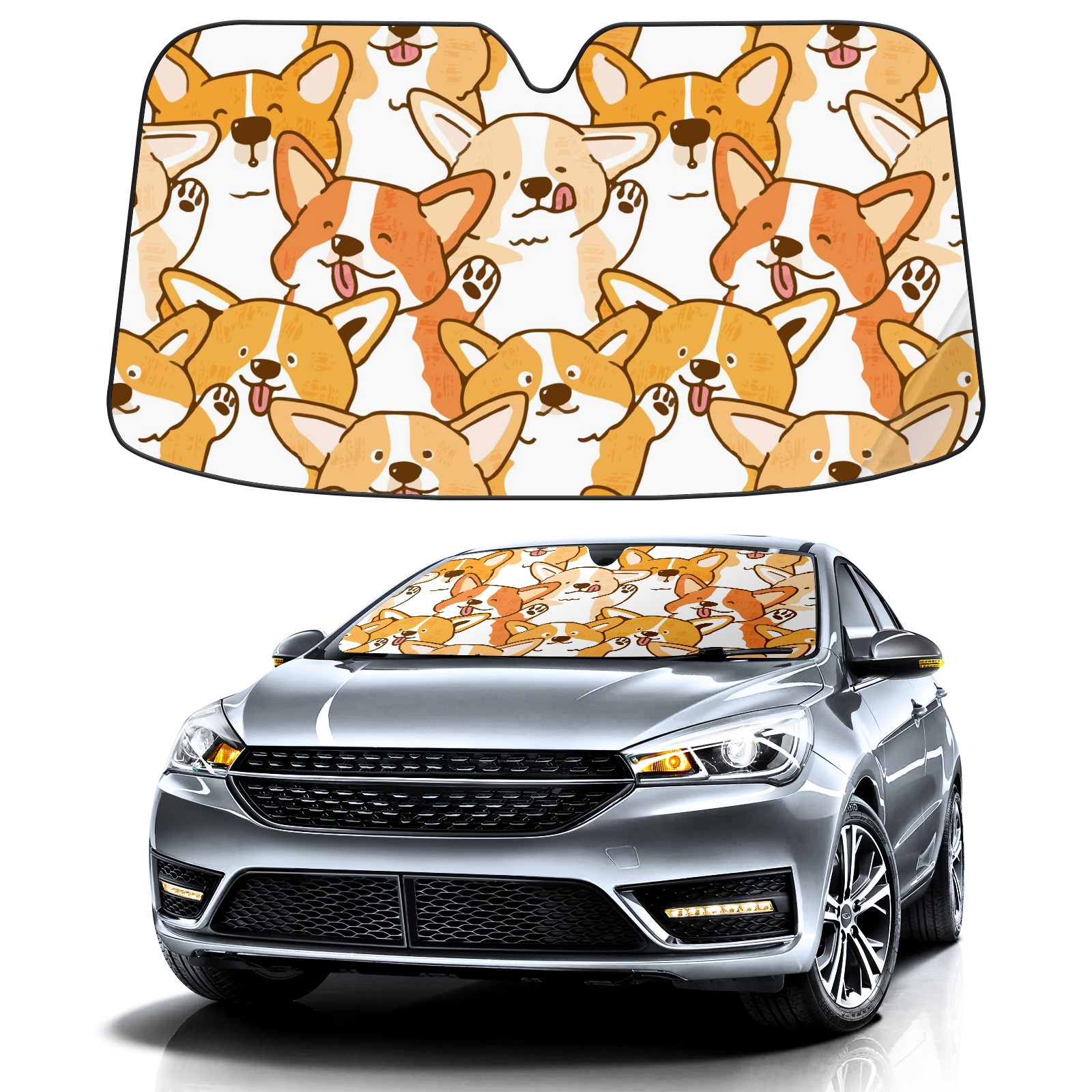 Car Windshield Sun Shade For Front Window Cute Cartoon Corgi Dog Face Foldable Vehicle Windshield Car Sun Visor Covers Automotive Window Protector Car Camping Privacy Sun Blocker