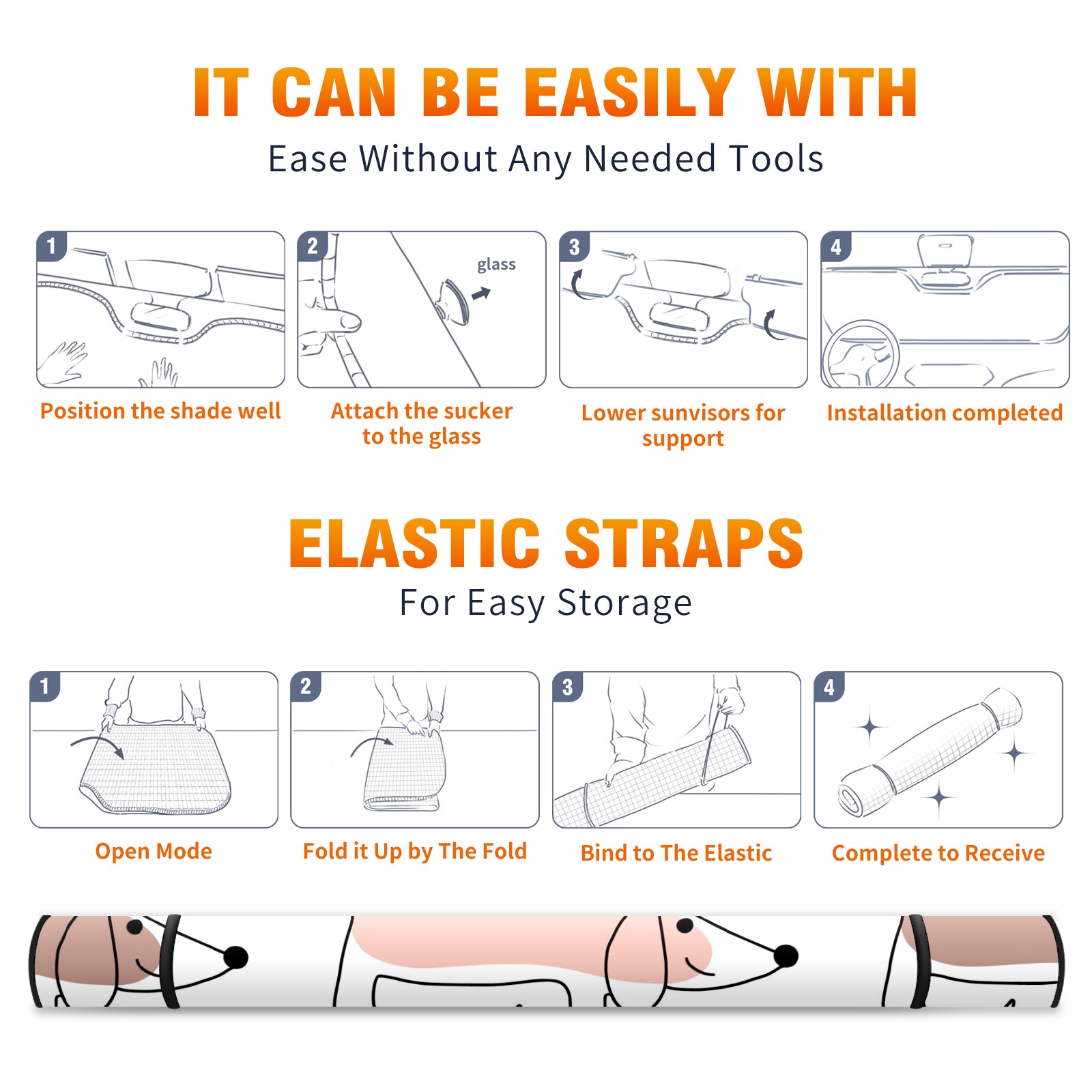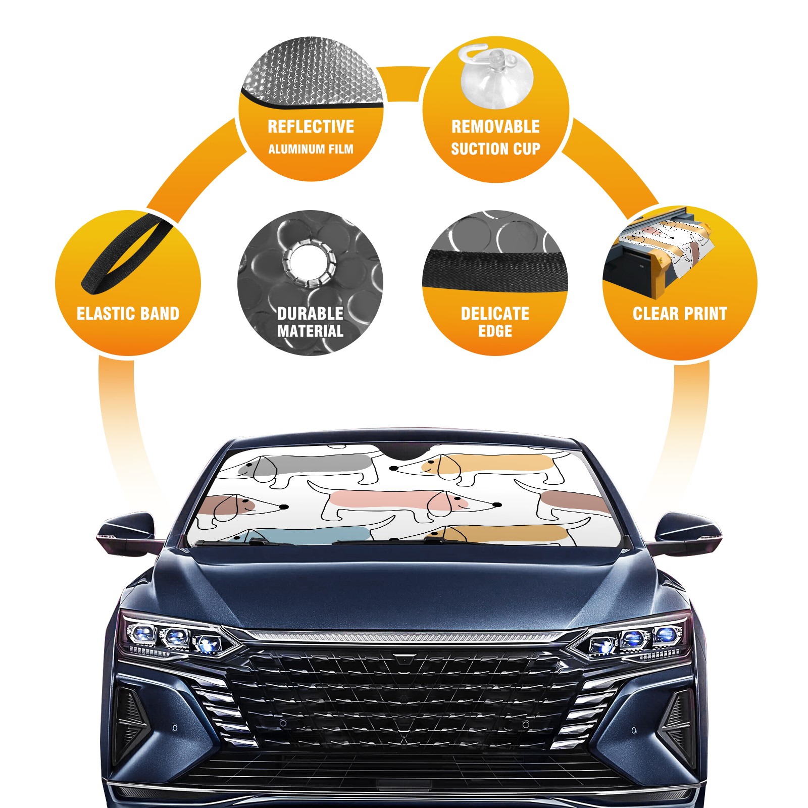 Car Windshield Sun Shade For Front Window Cute Abstract Dachshund Dog Foldable Vehicle Windshield Car Sun Visor Covers Automotive Window Protector Car Camping Privacy Sun Blocker