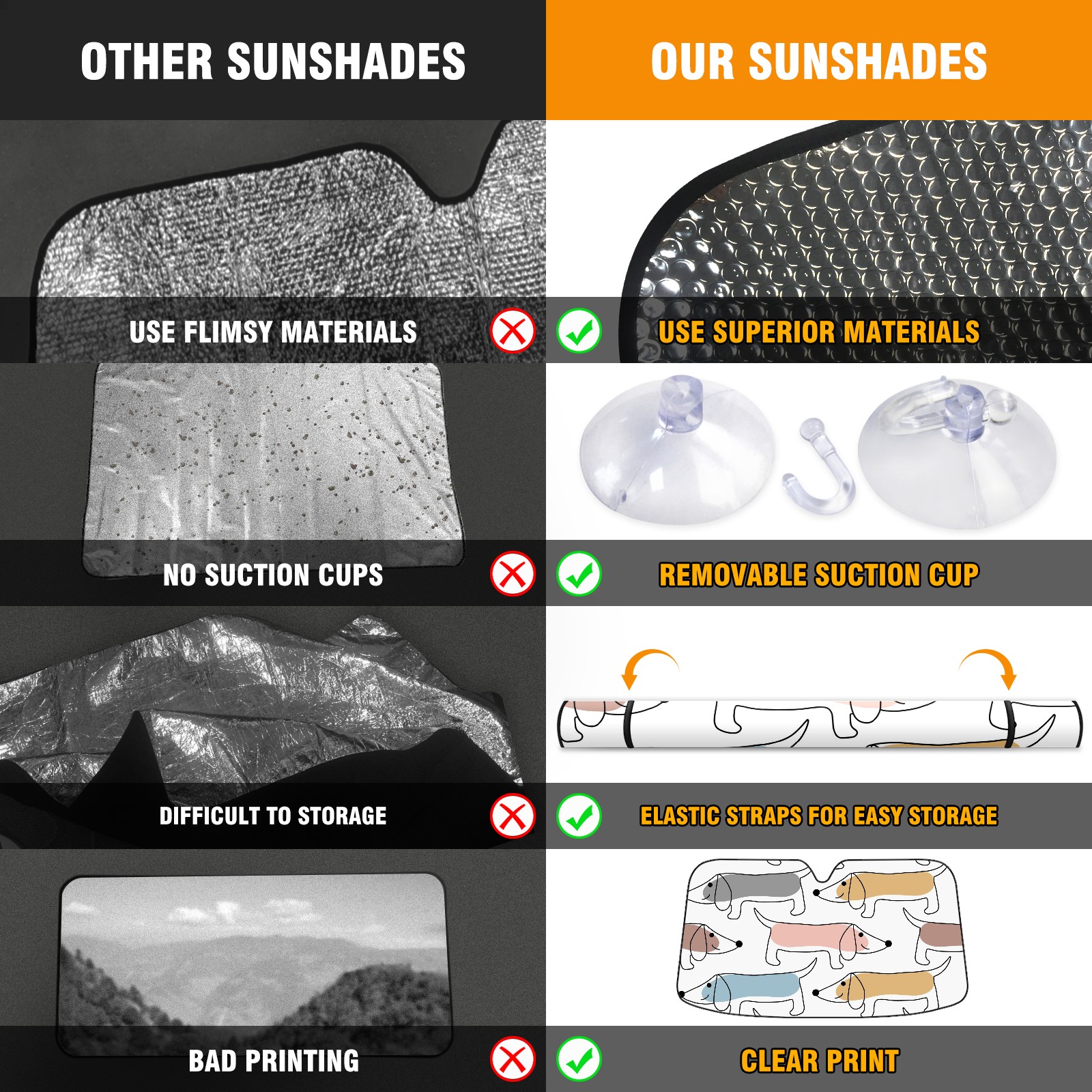 • Diameter /Size 63"L x 33.5"W Made from excellent materials which makes it sturdy and protects the car from the sun. Easy to use and pack. Makes the interior of the car cooler.You can easily stash the sunshade in the storage bag or store long term.It open and closes easy. Also the leather storage bag is durable and easy to put the umbrella back into.This windshield sunshade provides complete coverage and keeps your car interior cool under direct sun. It is easy to open and position under the windshield and around the rear-view mirror. Makes Your Car Easy To Identify, Perfect For Finding Your Car In Crowded Parking Lots And Garages.Great Choice: It Is A Great Gift For Dad, Boyfriend, Brother, Brother And Uncle, Friends, Classmates, Family And So On. Notice: Due To Difference Computer Monitors, The Color Maybe Slightly Different From Picture. As Different Measurement Methods, Measurement Data Will Float Within 2%.I Hope You Understand. If You Have Any Question About The Item Please Do Not Hesitate To Contact Us Immediately And We Will Give You A Satisfactory Reply Within 24 Hours.