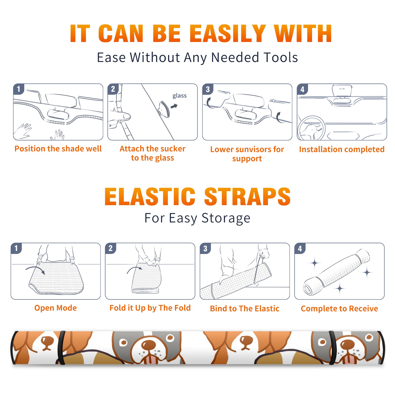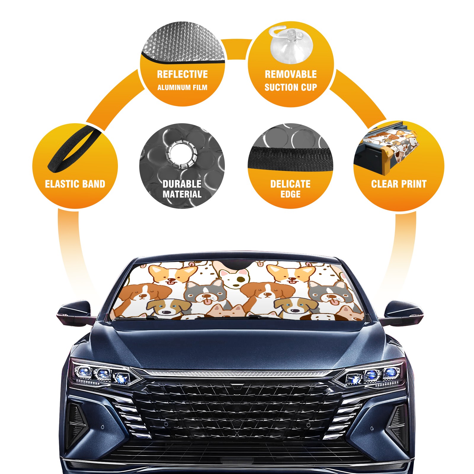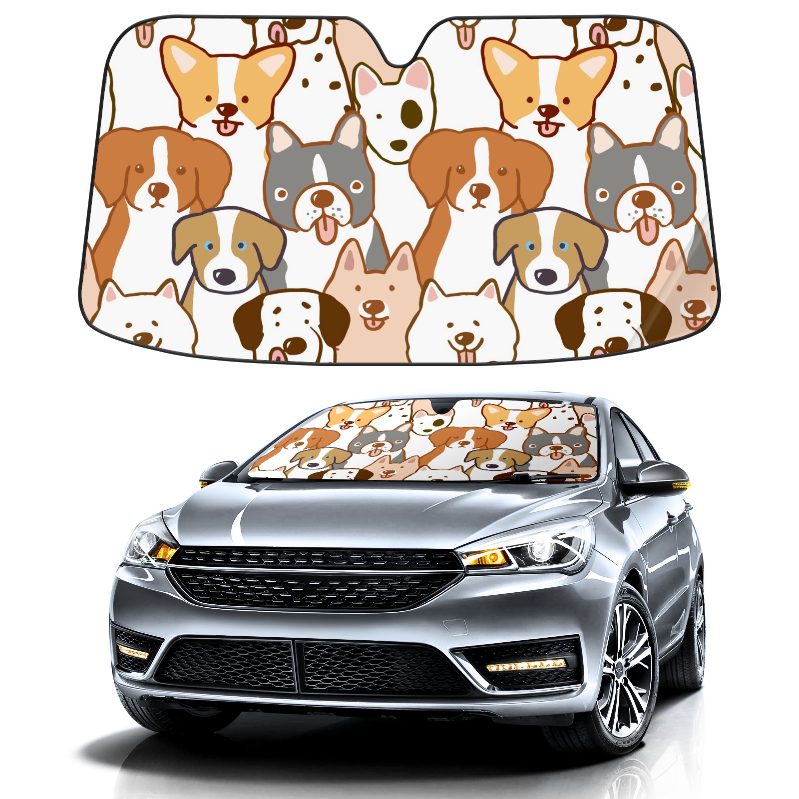 Car Windshield Sun Shade For Front Window Cute Abstract Cartoon Dog Foldable Vehicle Windshield Car Sun Visor Covers Automotive Window Protector Car Camping Privacy Sun Blocker