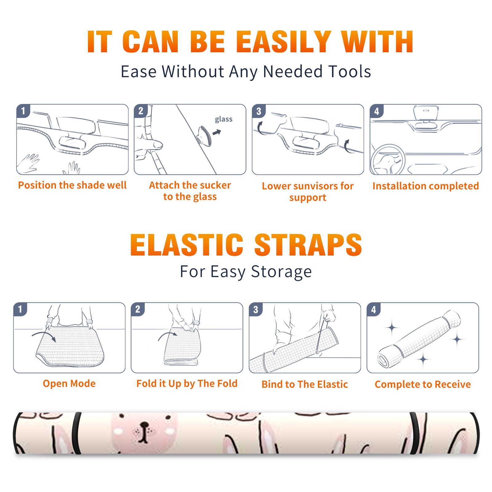 Car Windshield Sun Shade For Front Window Rabbit Foldable Vehicle Windshield Car Sun Visor Covers Automotive Window Protector Car Camping Privacy Sun Blocker