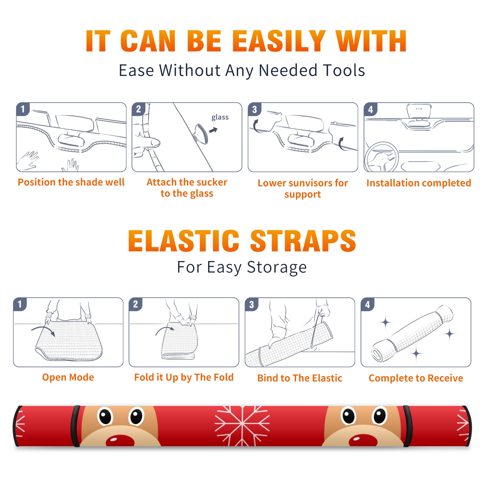 Car Windshield Sun Shade For Front Window Deer And Snowflakes Foldable Vehicle Windshield Car Sun Visor Covers Automotive Window Protector Car Camping Privacy Sun Blocker