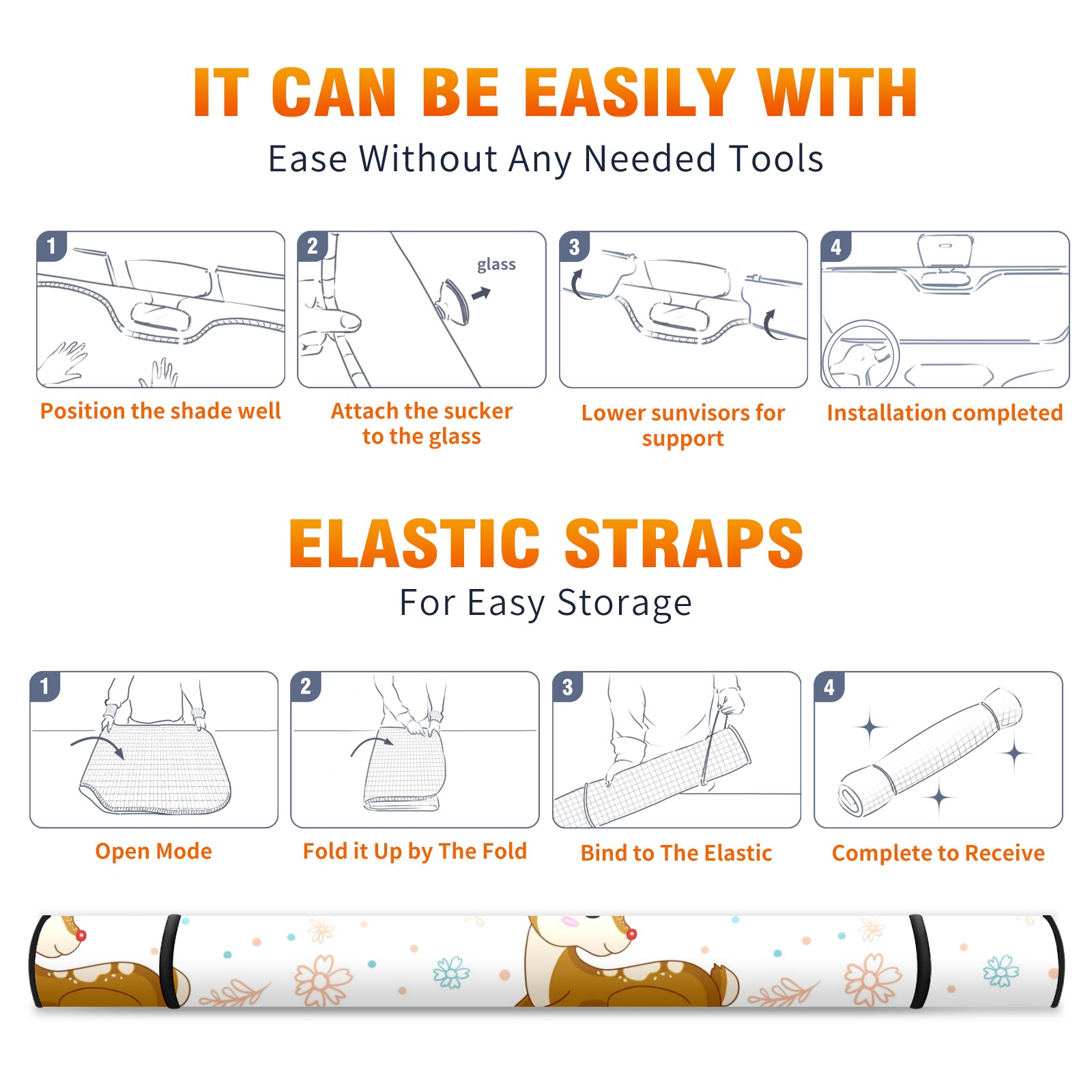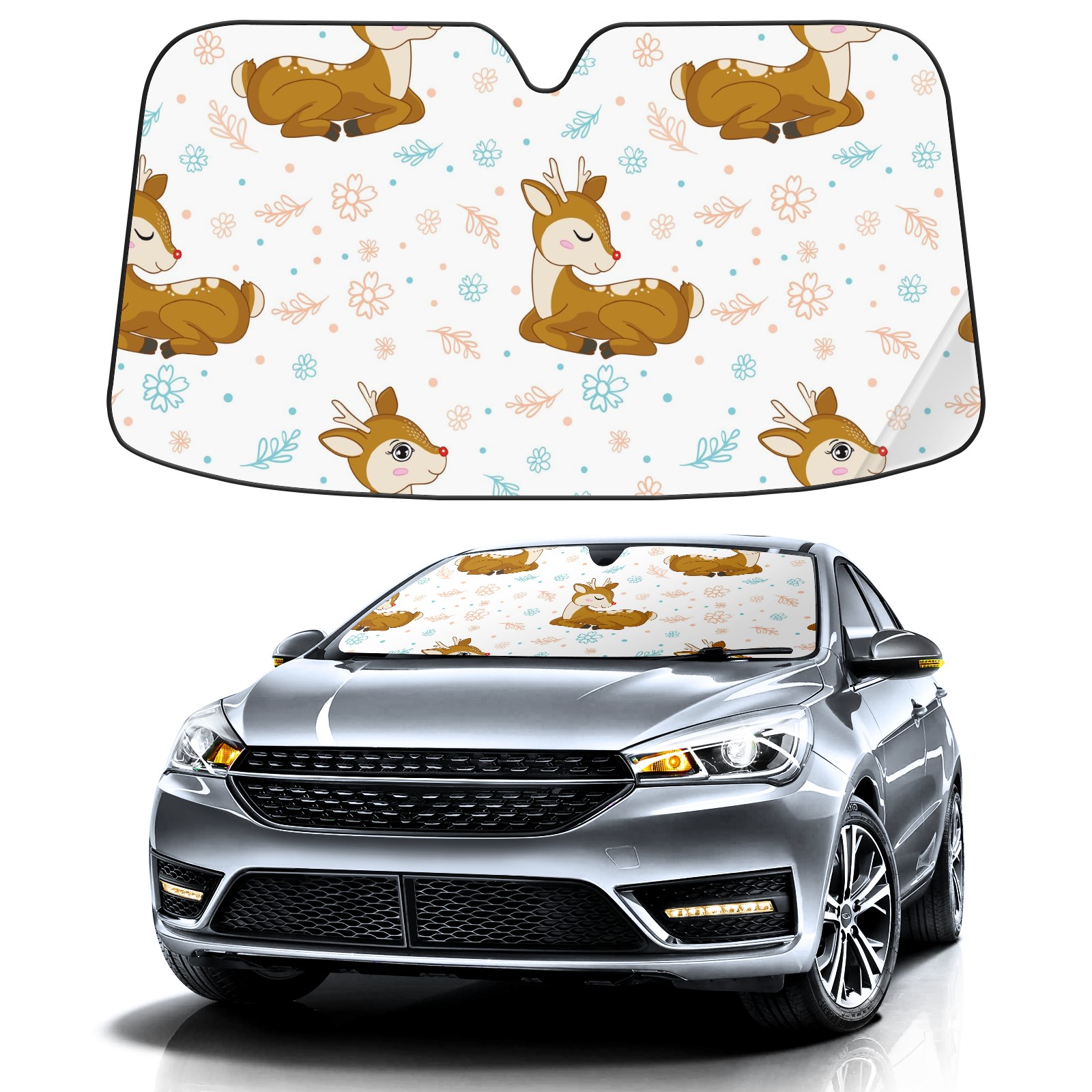 Car Windshield Sun Shade For Front Window Cute Deer Leaves Flower Foldable Vehicle Windshield Car Sun Visor Covers Automotive Window Protector Car Camping Privacy Sun Blocker