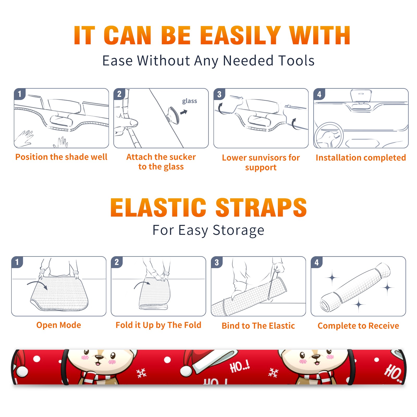 Car Windshield Sun Shade For Front Window Cute Christmas Deer Foldable Vehicle Windshield Car Sun Visor Covers Automotive Window Protector Car Camping Privacy Sun Blocker