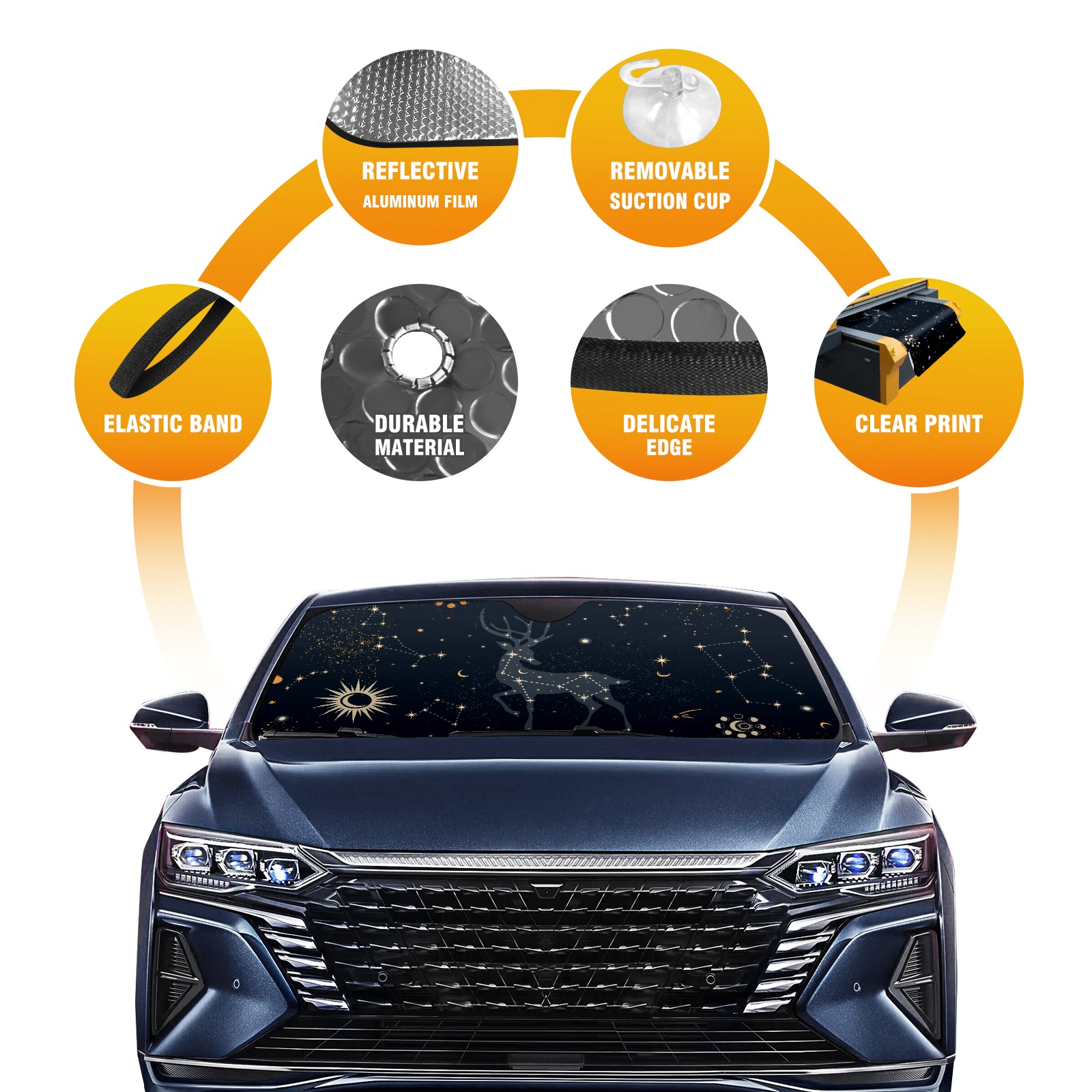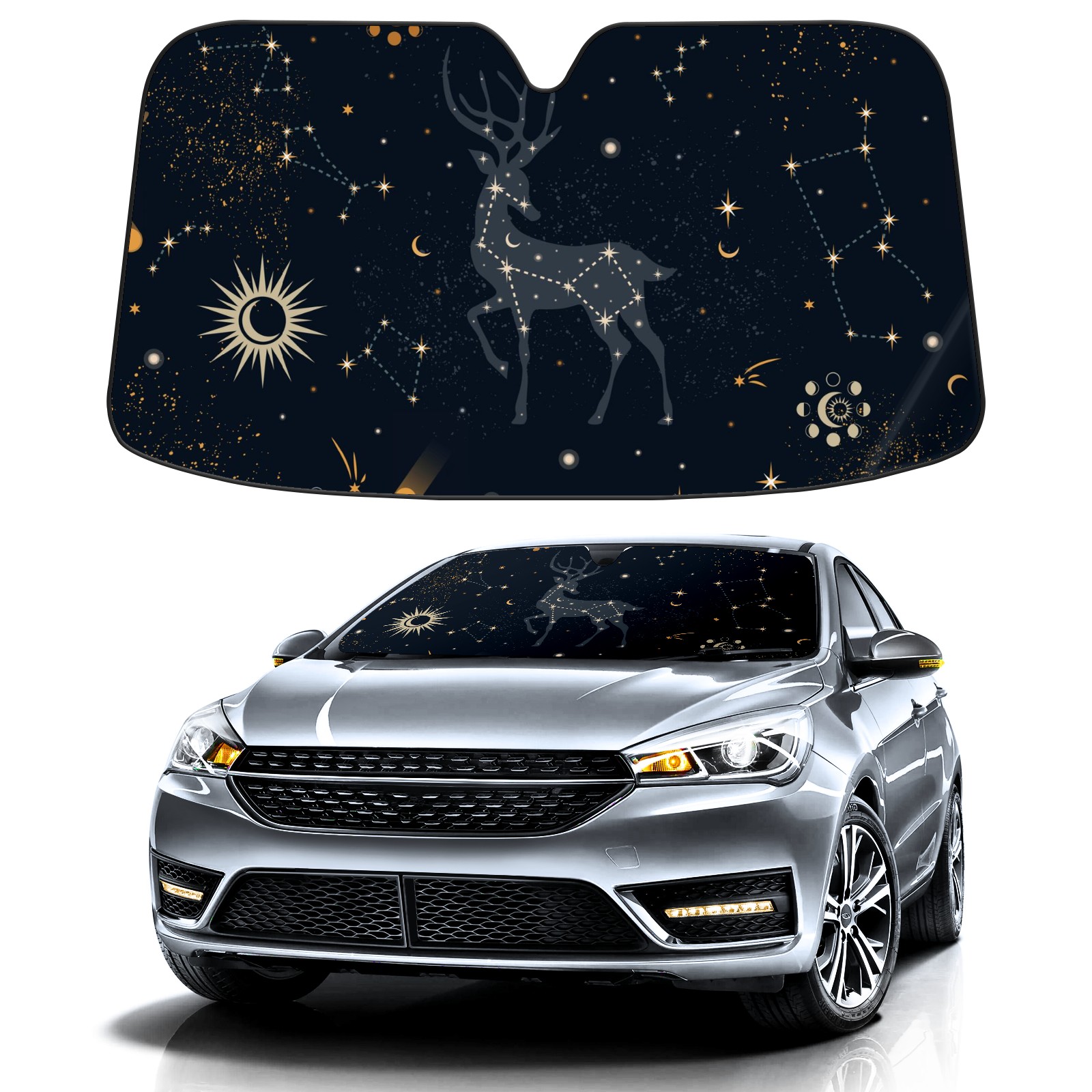 Car Windshield Sun Shade For Front Window Cosmic Deer Moon Star Foldable Vehicle Windshield Car Sun Visor Covers Automotive Window Protector Car Camping Privacy Sun Blocker