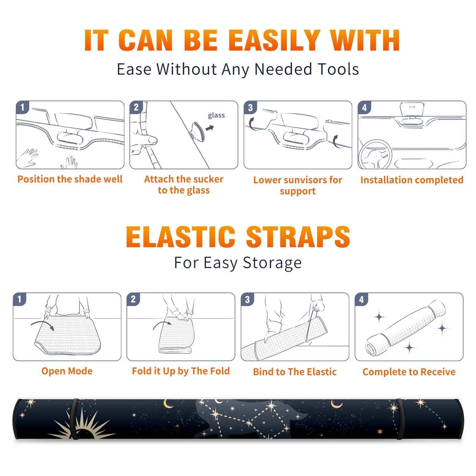 • Diameter /Size 63"L x 33.5"W Made from excellent materials which makes it sturdy and protects the car from the sun. Easy to use and pack. Makes the interior of the car cooler.You can easily stash the sunshade in the storage bag or store long term.It open and closes easy. Also the leather storage bag is durable and easy to put the umbrella back into.This windshield sunshade provides complete coverage and keeps your car interior cool under direct sun. It is easy to open and position under the windshield and around the rear-view mirror. Makes Your Car Easy To Identify, Perfect For Finding Your Car In Crowded Parking Lots And Garages.Great Choice: It Is A Great Gift For Dad, Boyfriend, Brother, Brother And Uncle, Friends, Classmates, Family And So On. Notice: Due To Difference Computer Monitors, The Color Maybe Slightly Different From Picture. As Different Measurement Methods, Measurement Data Will Float Within 2%.I Hope You Understand. If You Have Any Question About The Item Please Do Not Hesitate To Contact Us Immediately And We Will Give You A Satisfactory Reply Within 24 Hours.