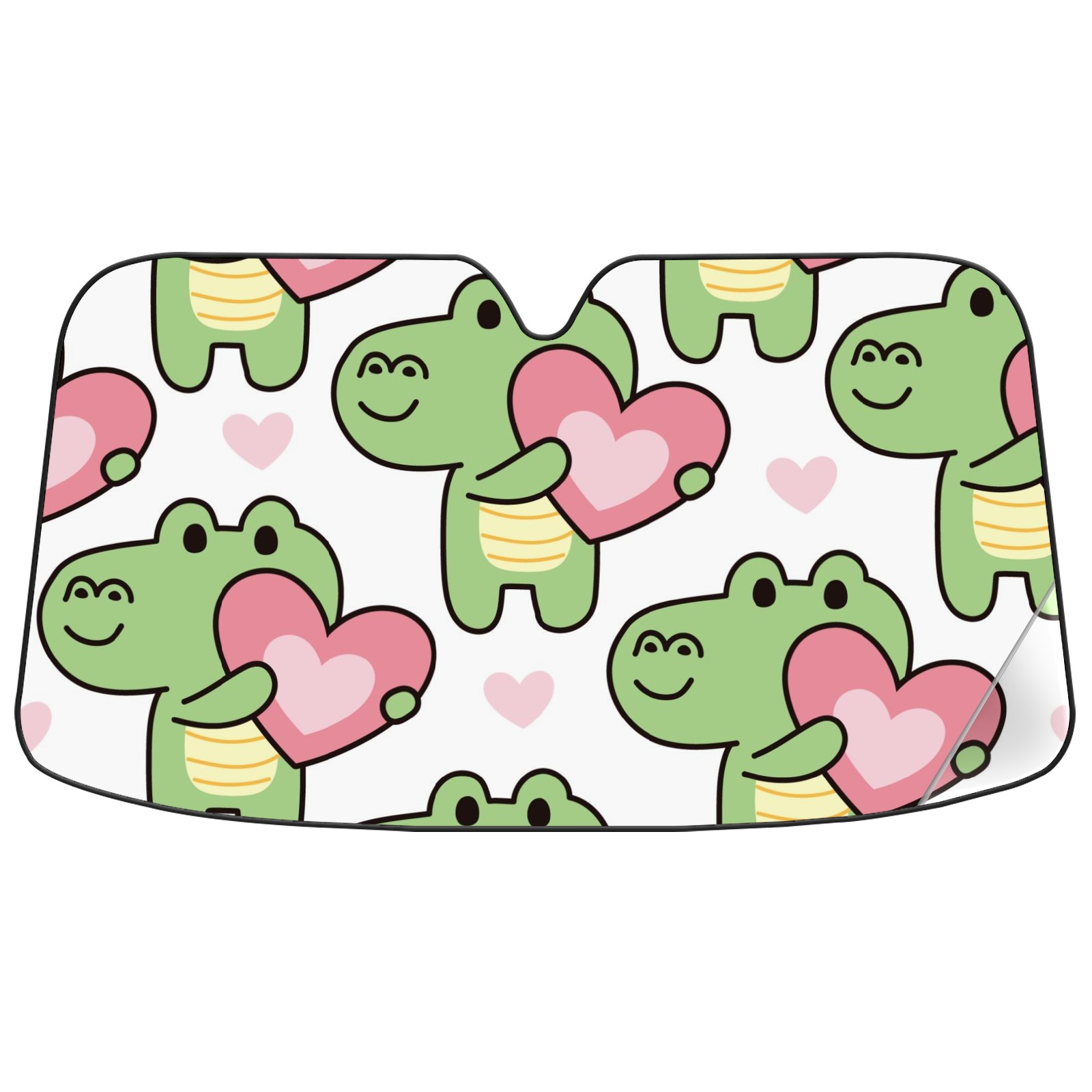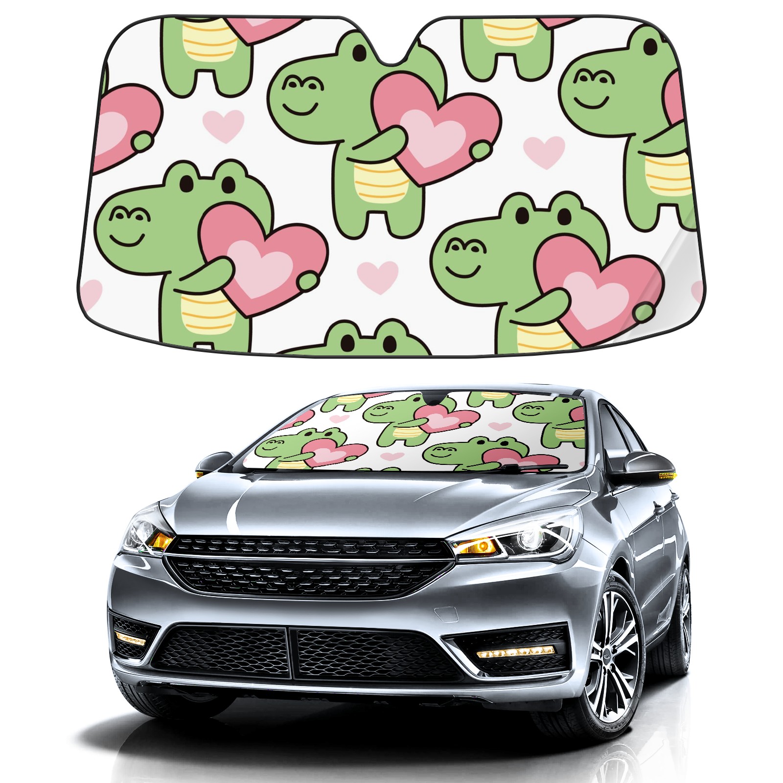 Car Windshield Sun Shade For Front Window Cute Crocodile Hold Heart Foldable Vehicle Windshield Car Sun Visor Covers Automotive Window Protector Car Camping Privacy Sun Blocker