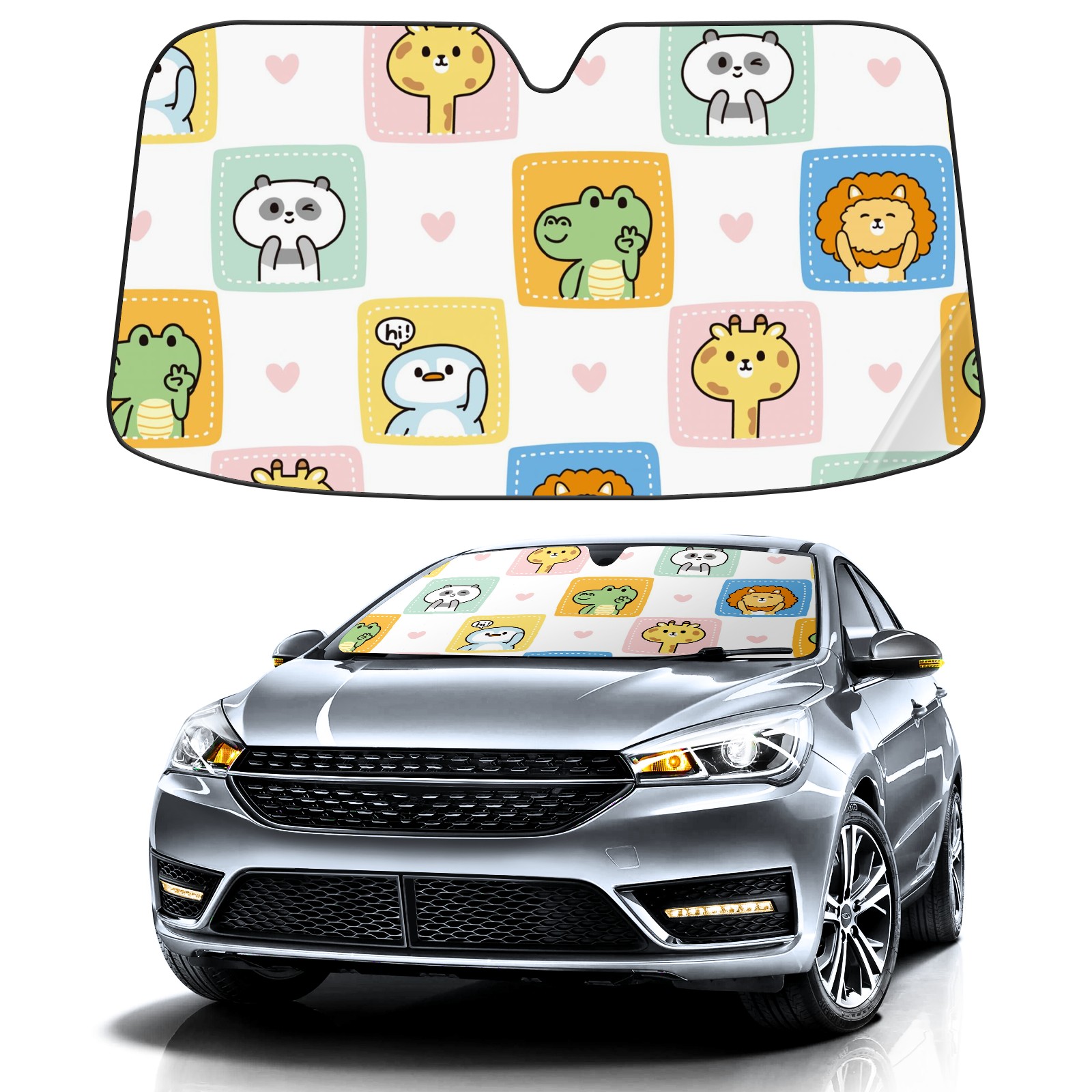 Car Windshield Sun Shade For Front Window Cute Animal Lion Panda Bear Crocodile Foldable Vehicle Windshield Car Sun Visor Covers Automotive Window Protector Car Camping Privacy Sun Blocker