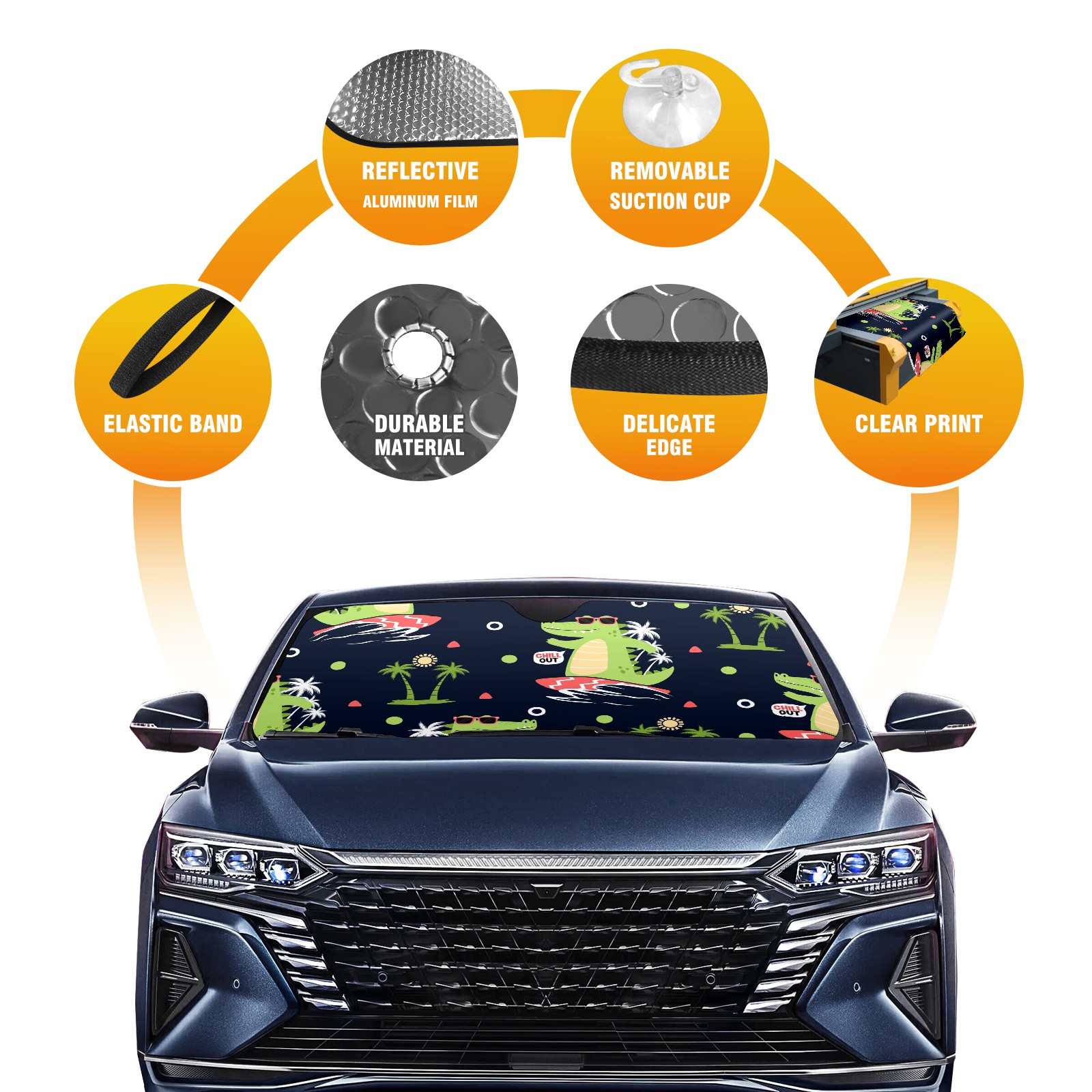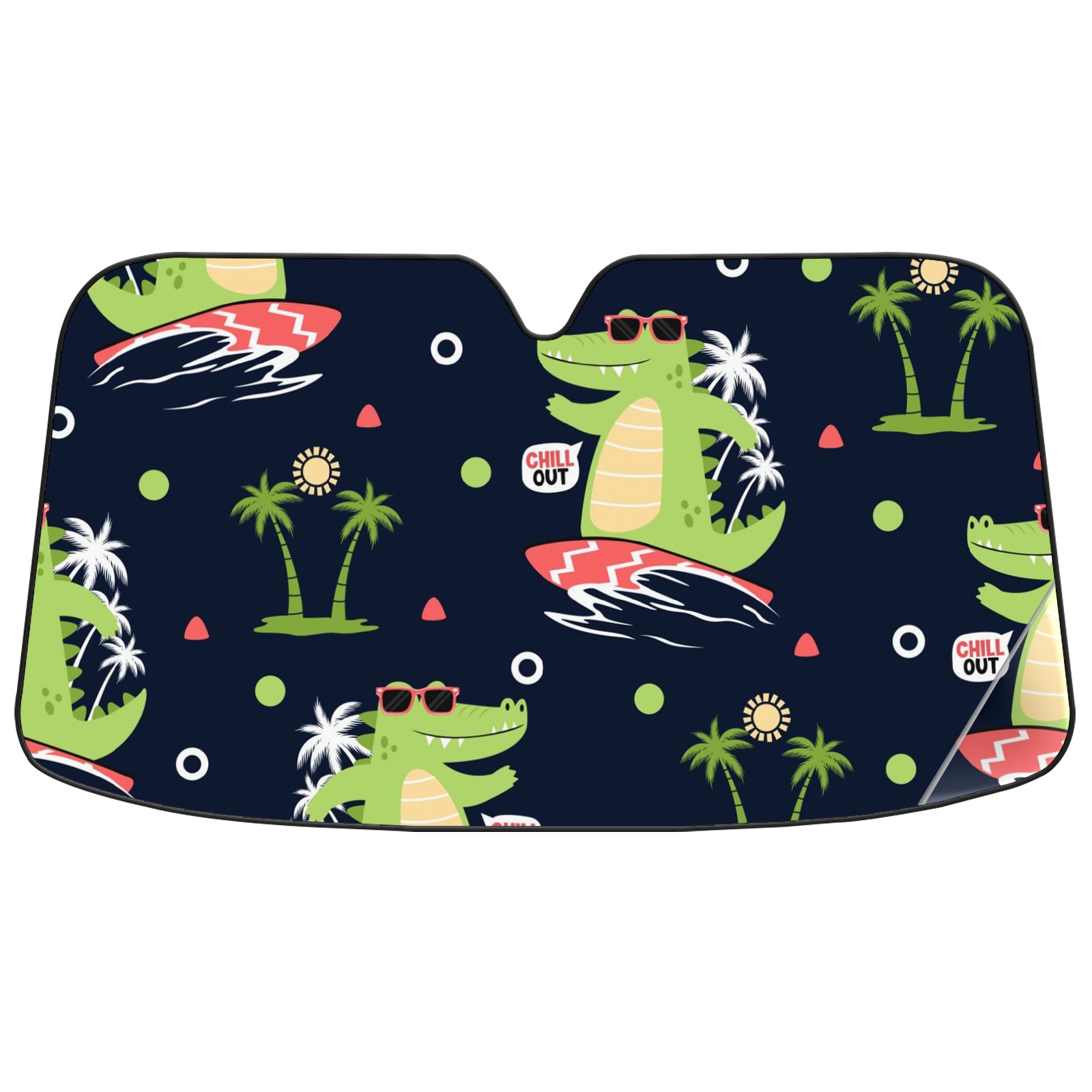 Car Windshield Sun Shade For Front Window Crocodile Surfer Cartoon Foldable Vehicle Windshield Car Sun Visor Covers Automotive Window Protector Car Camping Privacy Sun Blocker