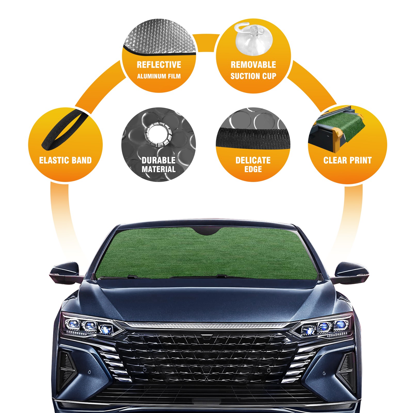 • Diameter /Size 63"L x 33.5"W Made from excellent materials which makes it sturdy and protects the car from the sun. Easy to use and pack. Makes the interior of the car cooler.You can easily stash the sunshade in the storage bag or store long term.It open and closes easy. Also the leather storage bag is durable and easy to put the umbrella back into.This windshield sunshade provides complete coverage and keeps your car interior cool under direct sun. It is easy to open and position under the windshield and around the rear-view mirror. Makes Your Car Easy To Identify, Perfect For Finding Your Car In Crowded Parking Lots And Garages.Great Choice: It Is A Great Gift For Dad, Boyfriend, Brother, Brother And Uncle, Friends, Classmates, Family And So On. Notice: Due To Difference Computer Monitors, The Color Maybe Slightly Different From Picture. As Different Measurement Methods, Measurement Data Will Float Within 2%.I Hope You Understand. If You Have Any Question About The Item Please Do Not Hesitate To Contact Us Immediately And We Will Give You A Satisfactory Reply Within 24 Hours.